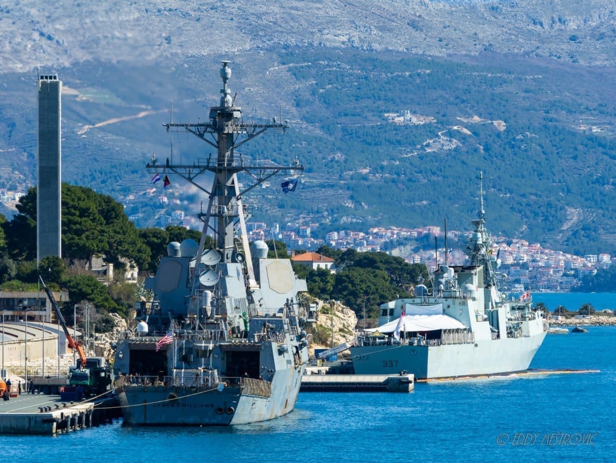 USS James E. Williams DDG-95, razarač Arleigh Burke-klase razarač, iz mornarice SAD-a, HNLMS De Zeven Provinciën F802, De Zeven Provinciën-klasa protuzračna i komandna fregata, Kraljevske nizozemske mornarice kao i HS Psara, MEKO 200 klasa fregata Grčke mornarice usidreni su u splitskoj trajektnoj luci.