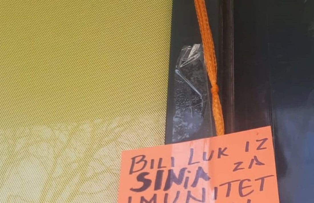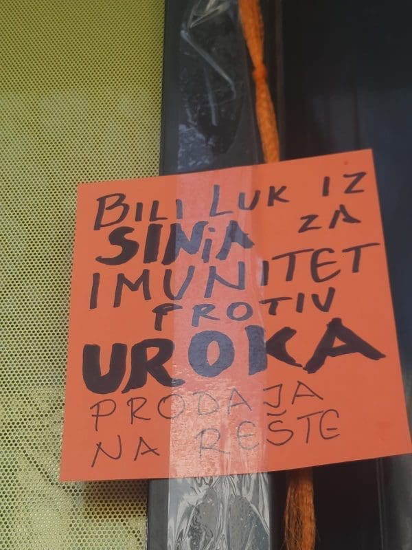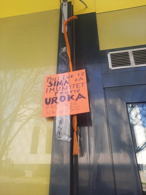 "Bili luk iz Sinja za imunitet protiv uroka, prodaje se na rešte", natpis je koji stoji ispred trgovine voća i povrća u Gundulićevoj ulici.
