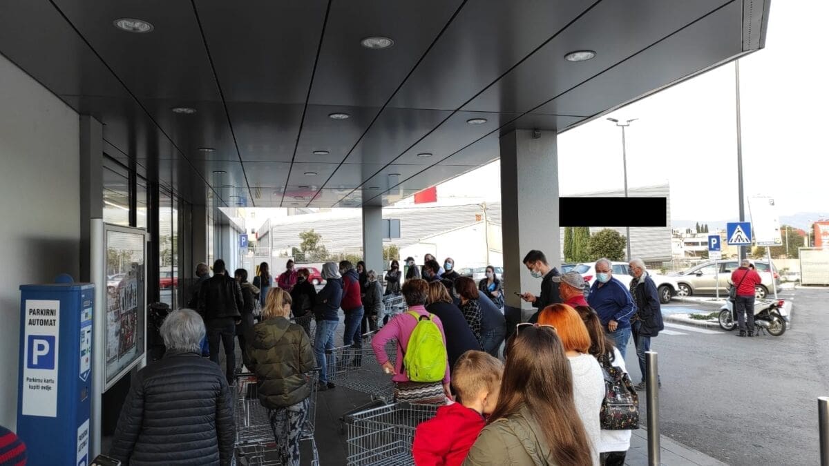 Na isto nisu imuni ni trgovački lanci. Naši čitatelji javljaju da su danas veliki redovi vladali pred nekoliko trgovačkih lanaca, a ovaj prizor snimljen je na području Lore.