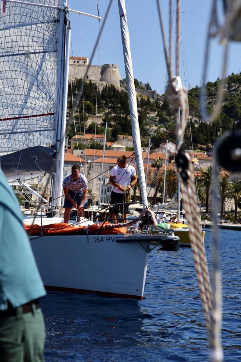 Zato je jedrenje natrag u Hvar bilo puno atraktivnije jer se maestral podignuo do respektabilnih dvadesetak čvorova, ali jedrilo se niz vjetar i ispunjavanje adrenalinom je bilo na vrlo visokoj razini. Stvarno izvrsna kombinacija za nekog zaraziti jedrenjem... lagani uvod, razbijanje strahova, dobivanje samopouzdanja i onda adrenalinski juriš! Prosječno vrijeme jedrenja do Visa bilo je tri sata, ali zato je najsporijem u povratku trebalo samo dva sata.