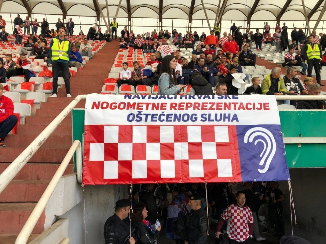 Navijači hrvatske nogometne reprezentacije oštećenog sluha danas su bili na Poljudu. Pratili su utakmicu s Rusijom i bodrili Vatrene.