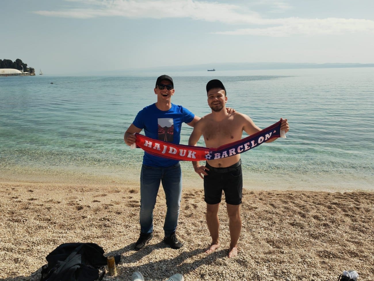 Na splitskoj plaži Obojena susreli smo mlade crnogorske navijače koji su u Split stigli iz Dubrovnika, gdje borave kao Erasmus studenti, s jednim ciljem – osjetiti euforiju Poljuda.