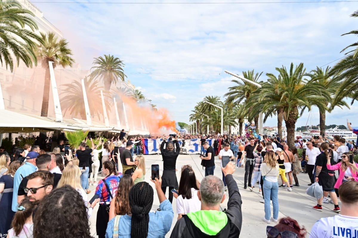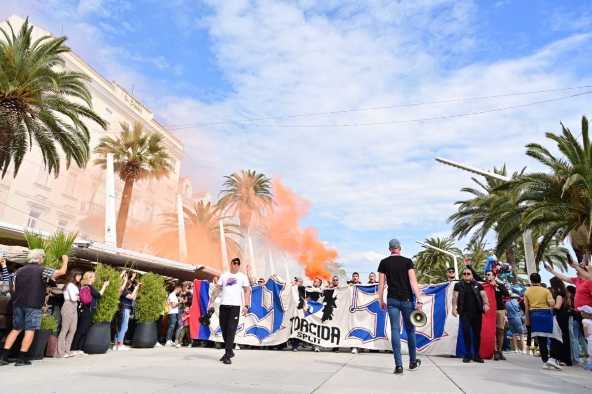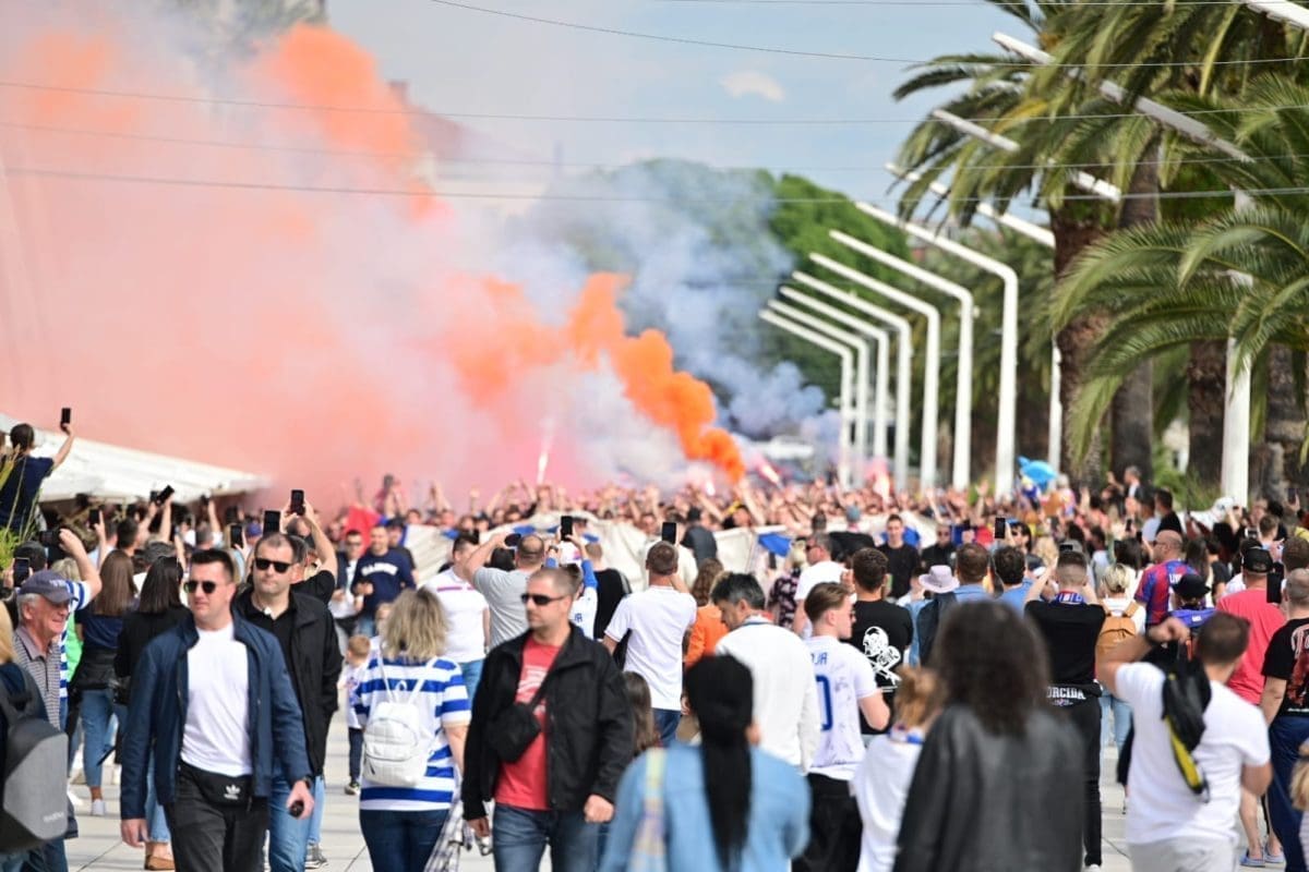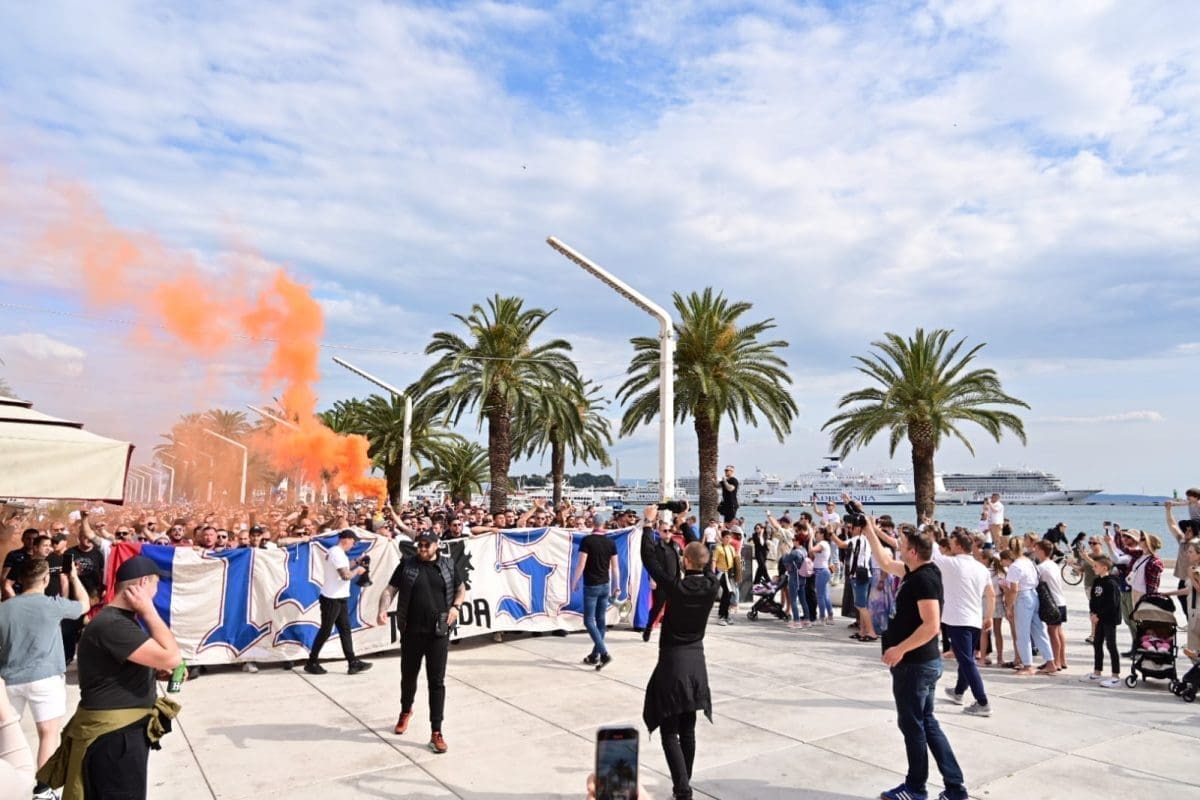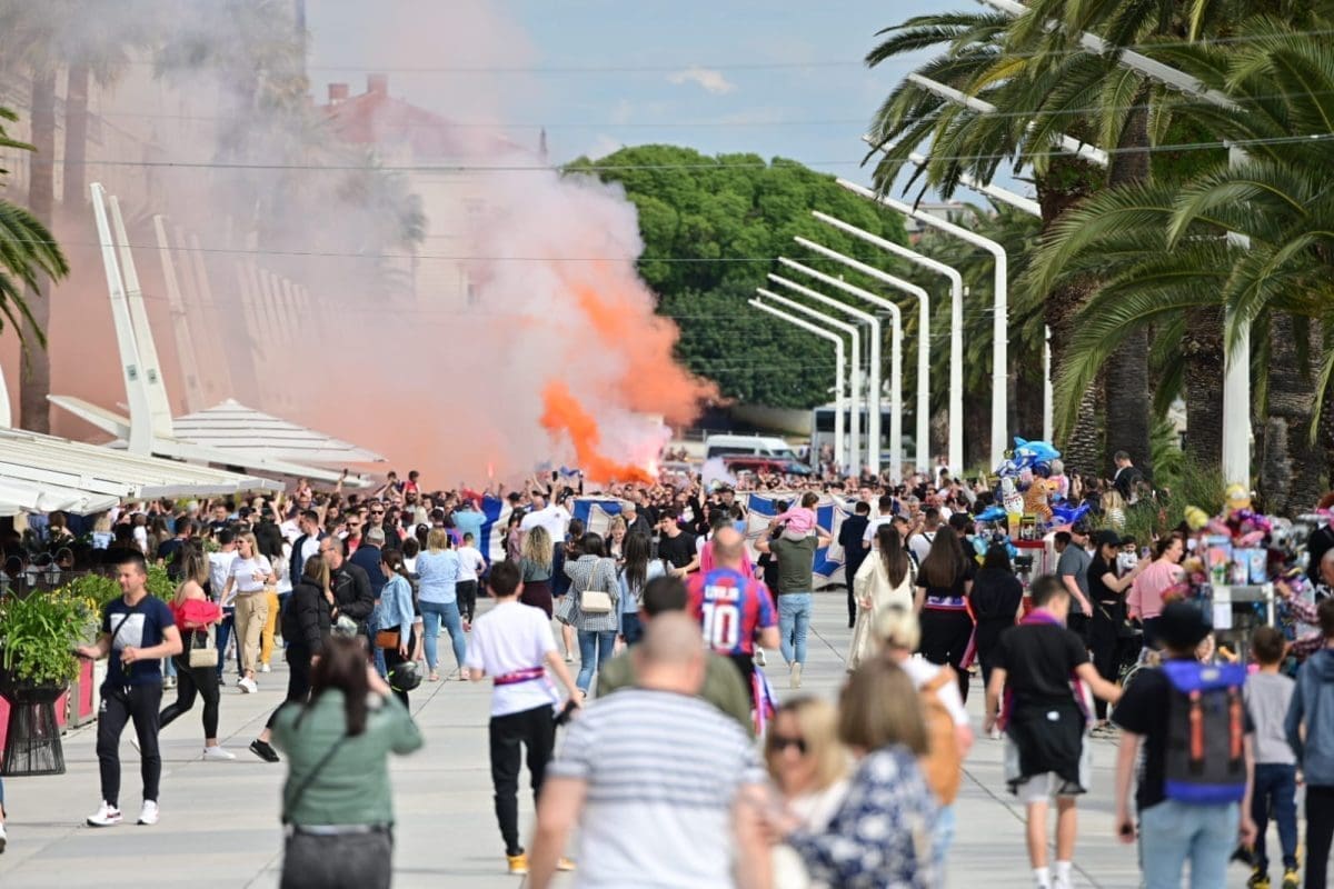 Nakon Rive navijači su krenuli ulicama centra Splita. Na Narodnom trgu (Pjaci) okupilo se tisuće navijača.