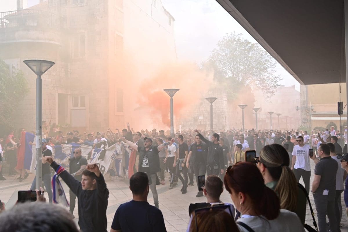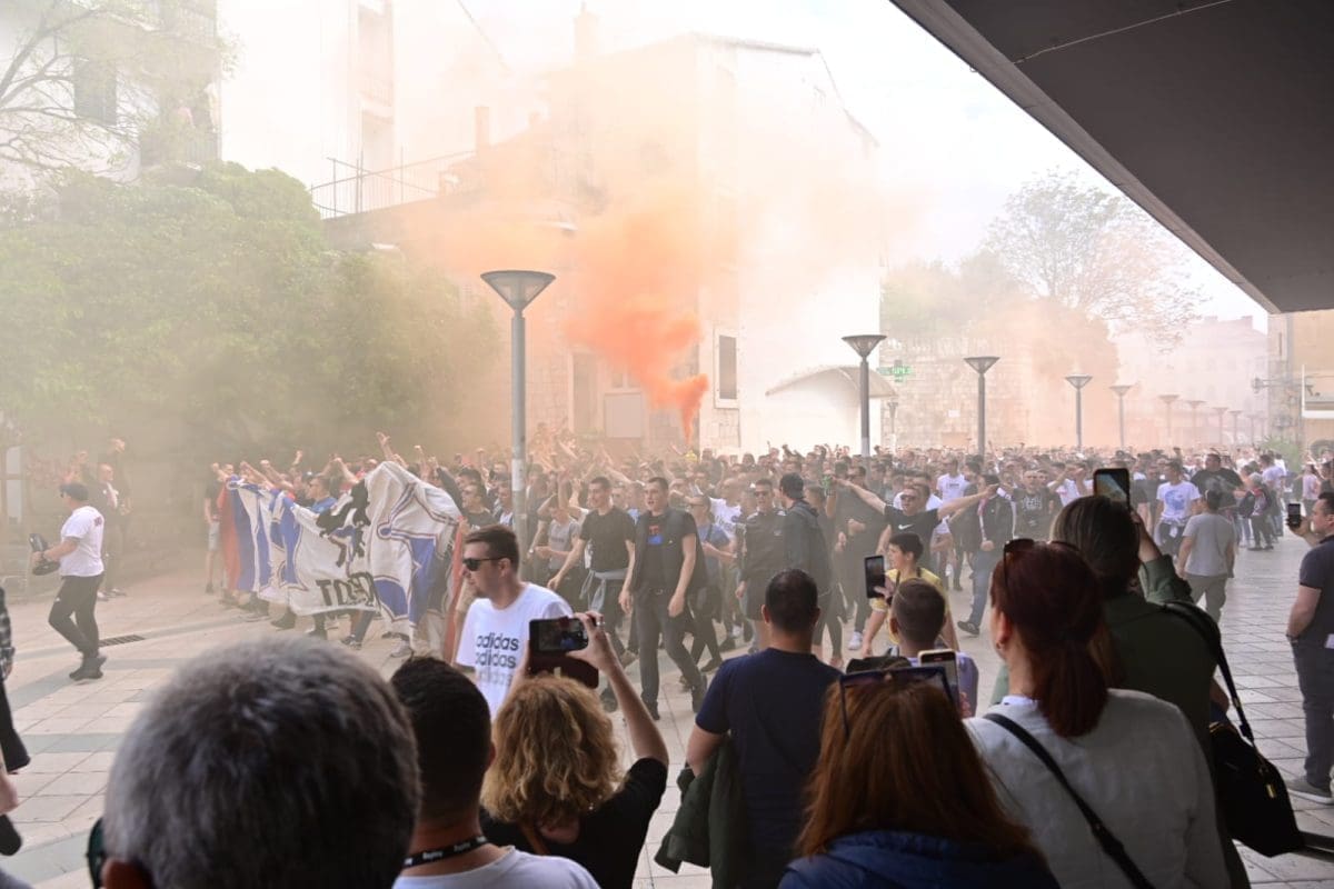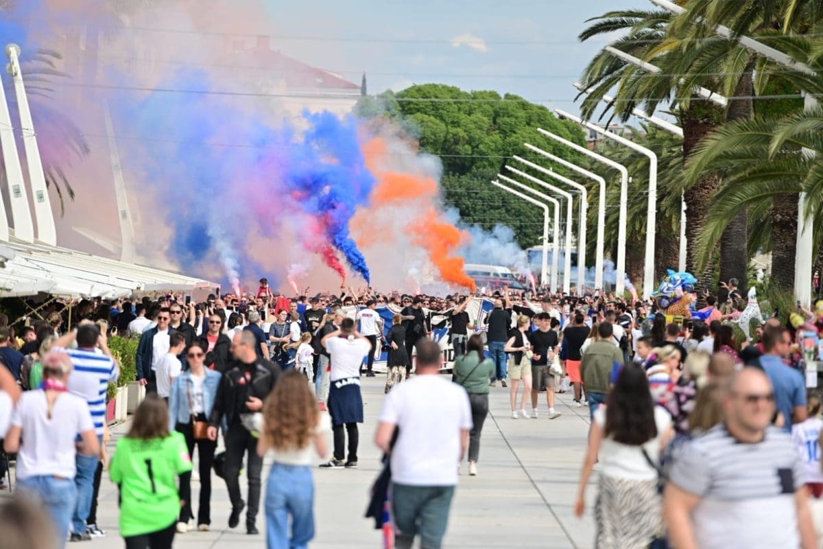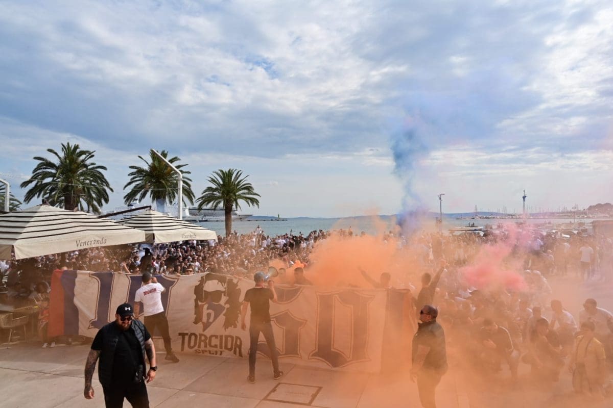 Nakon Rive navijači su krenuli ulicama centra Splita. Na Narodnom trgu (Pjaci) okupilo se tisuće navijača.