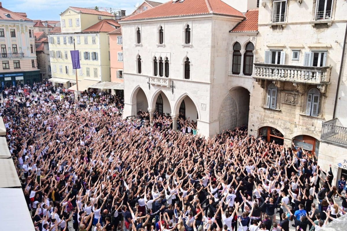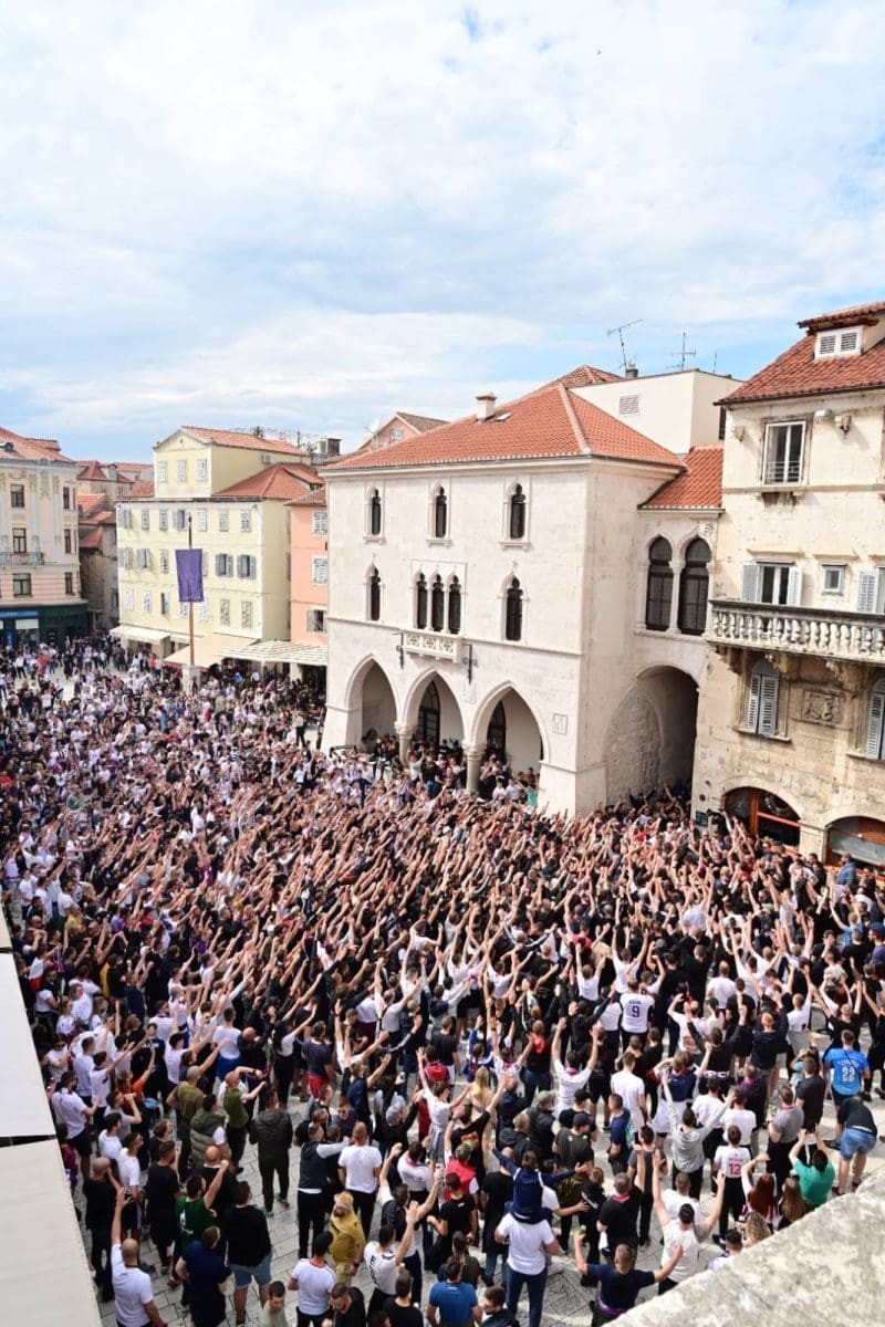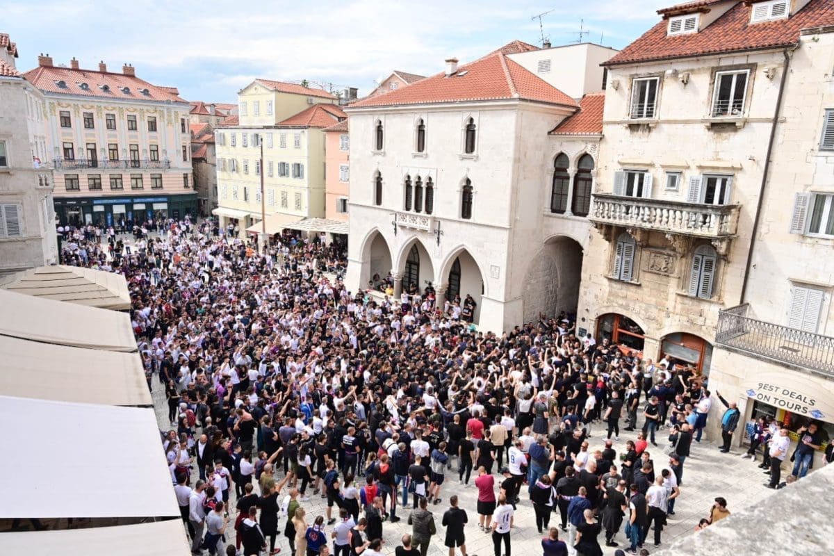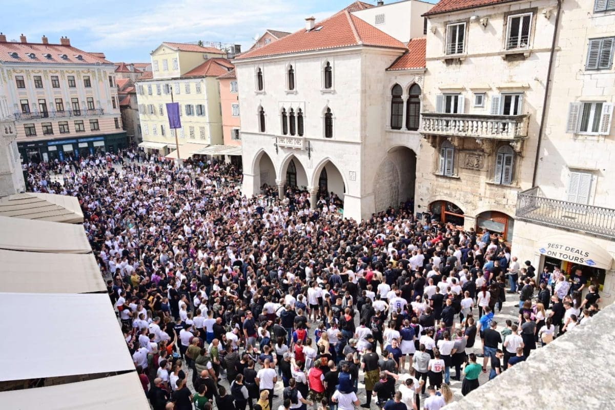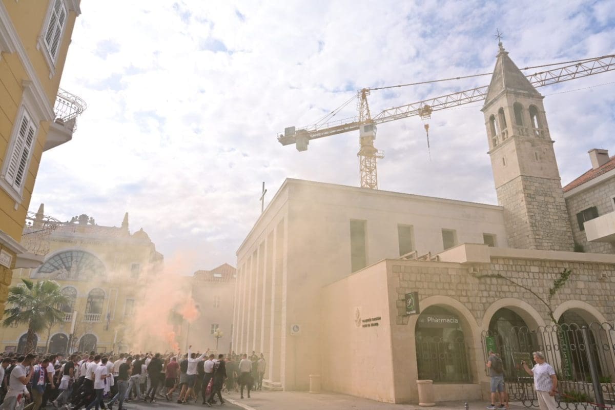 Nakon Rive navijači su krenuli ulicama centra Splita. Na Narodnom trgu (Pjaci) okupilo se tisuće navijača.