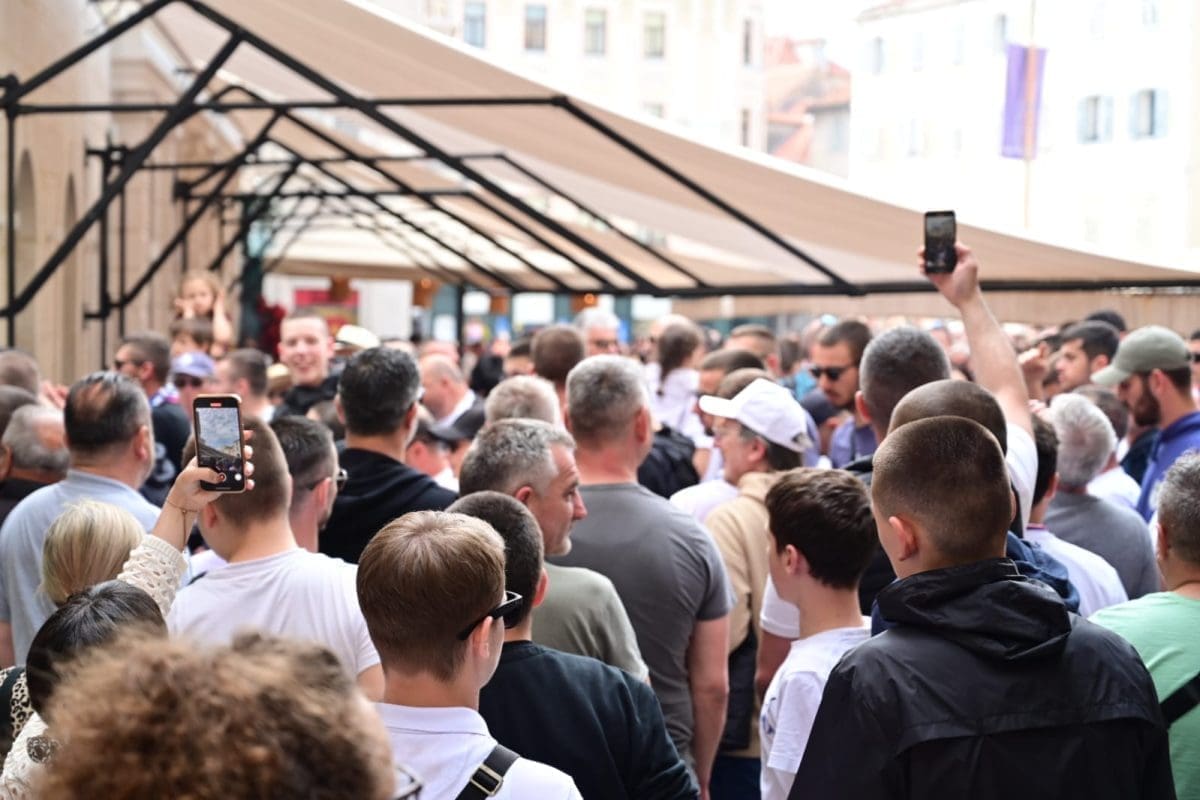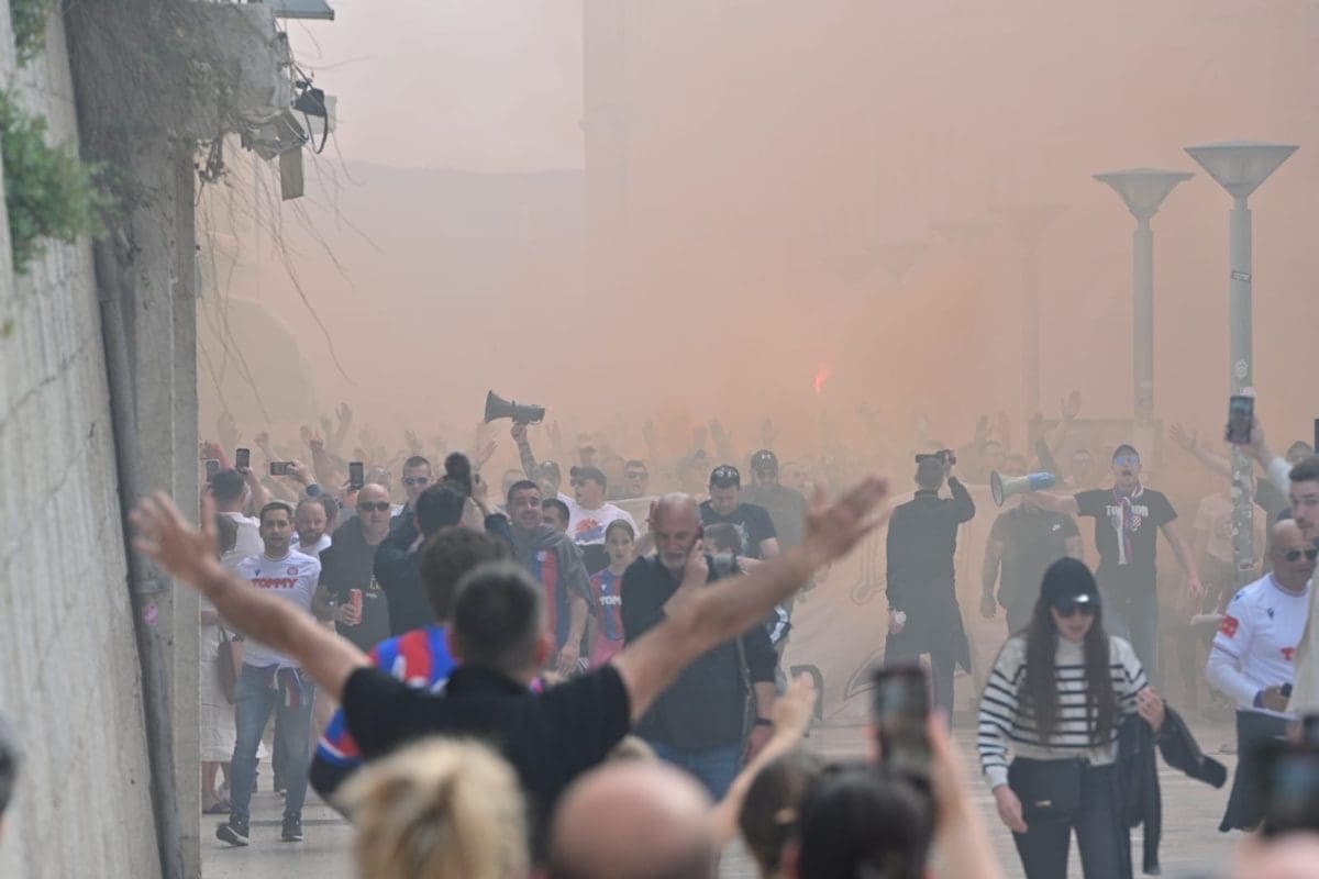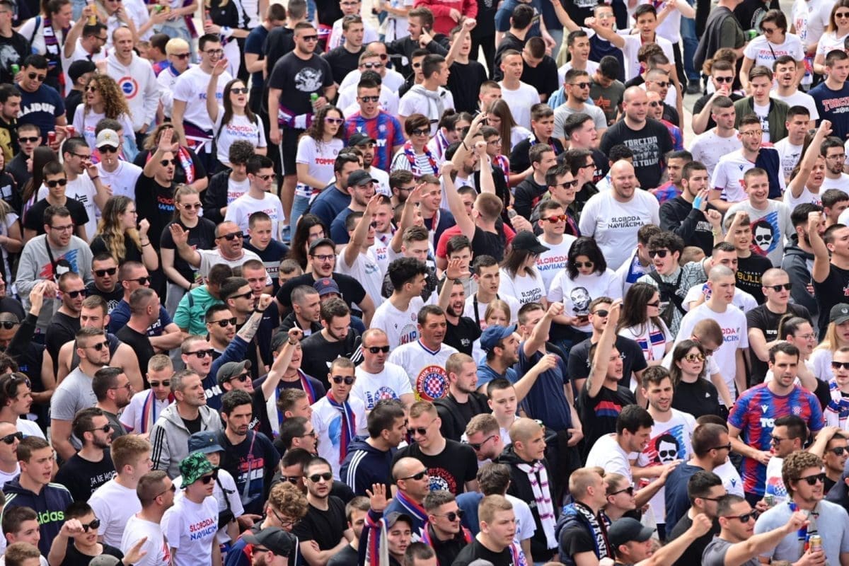 Navijači Hajduka okupirali su centar grada. Svi su dobro raspolaženi te unatoč teškoj utakmici priželjkuju pobjedu Bijelih.