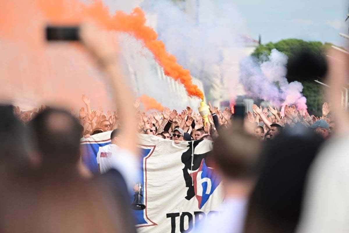 Torcida je organizirala i veliki korteo u kojem bi se moglo naći 20-ak tisuća navijača. U ovim trenutcima krenuli su sa splitske Rive.