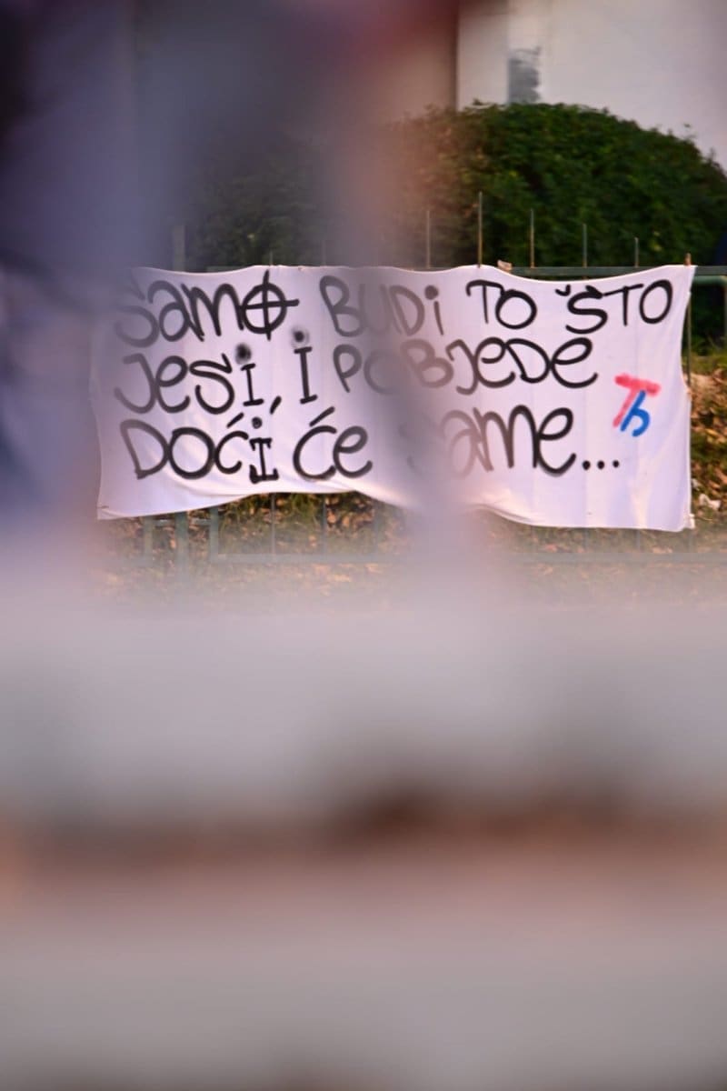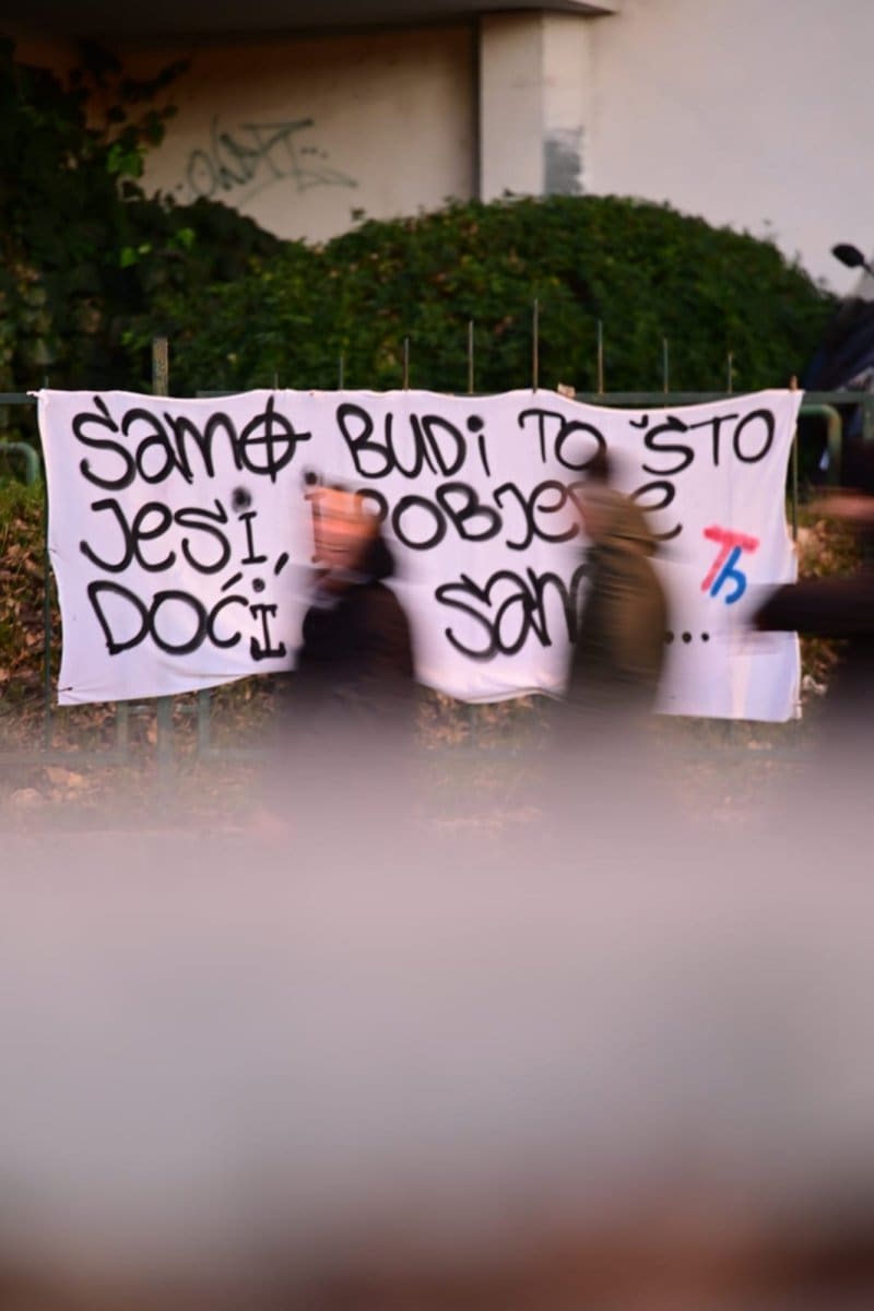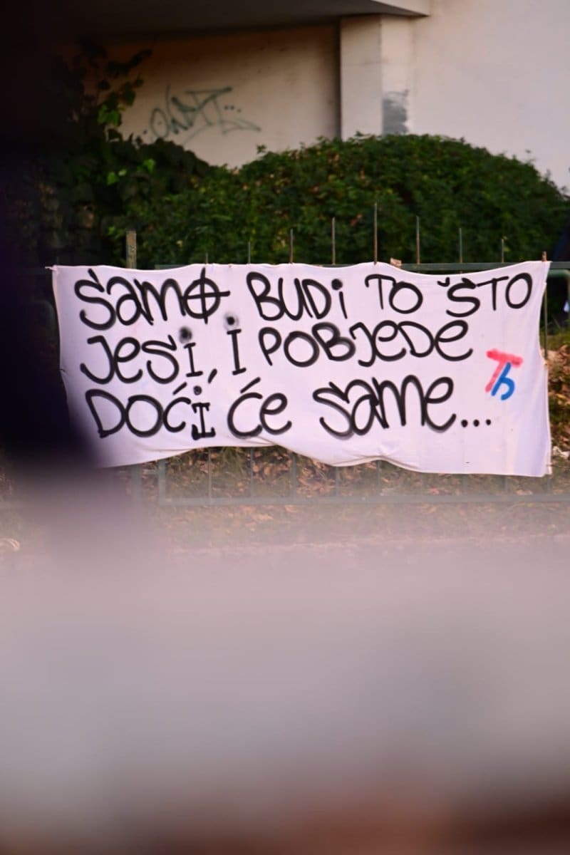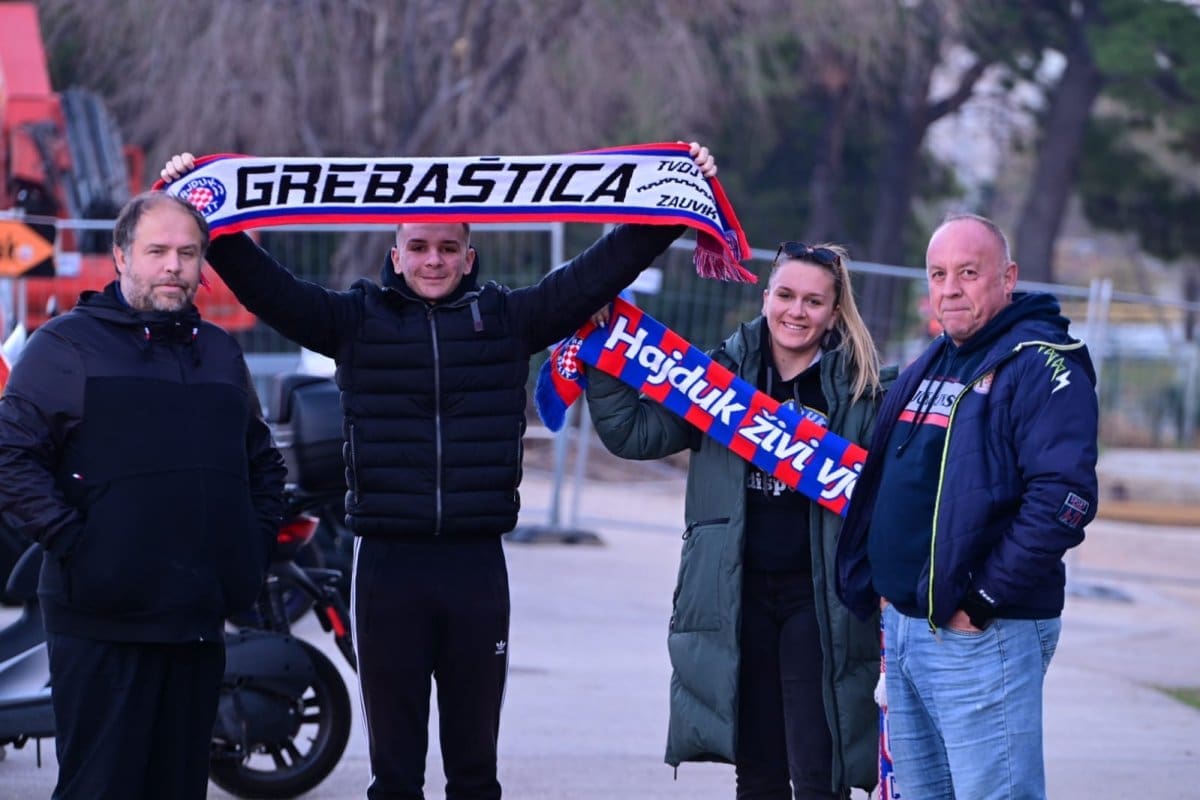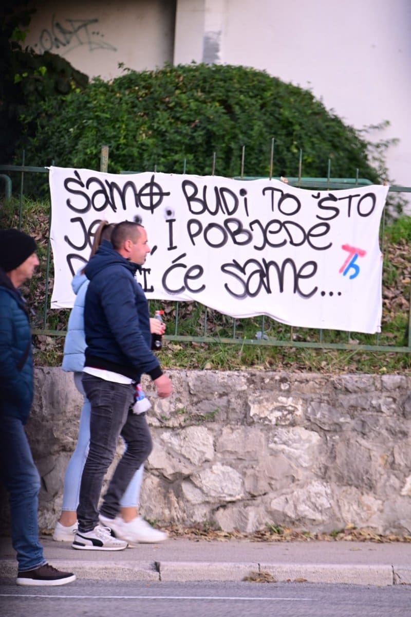 Tu su i stari i mladi, a postavljen je i natpis s posebnom porukom za hajdukovce: "Samo budi to što jesi, pobjede će doći same."