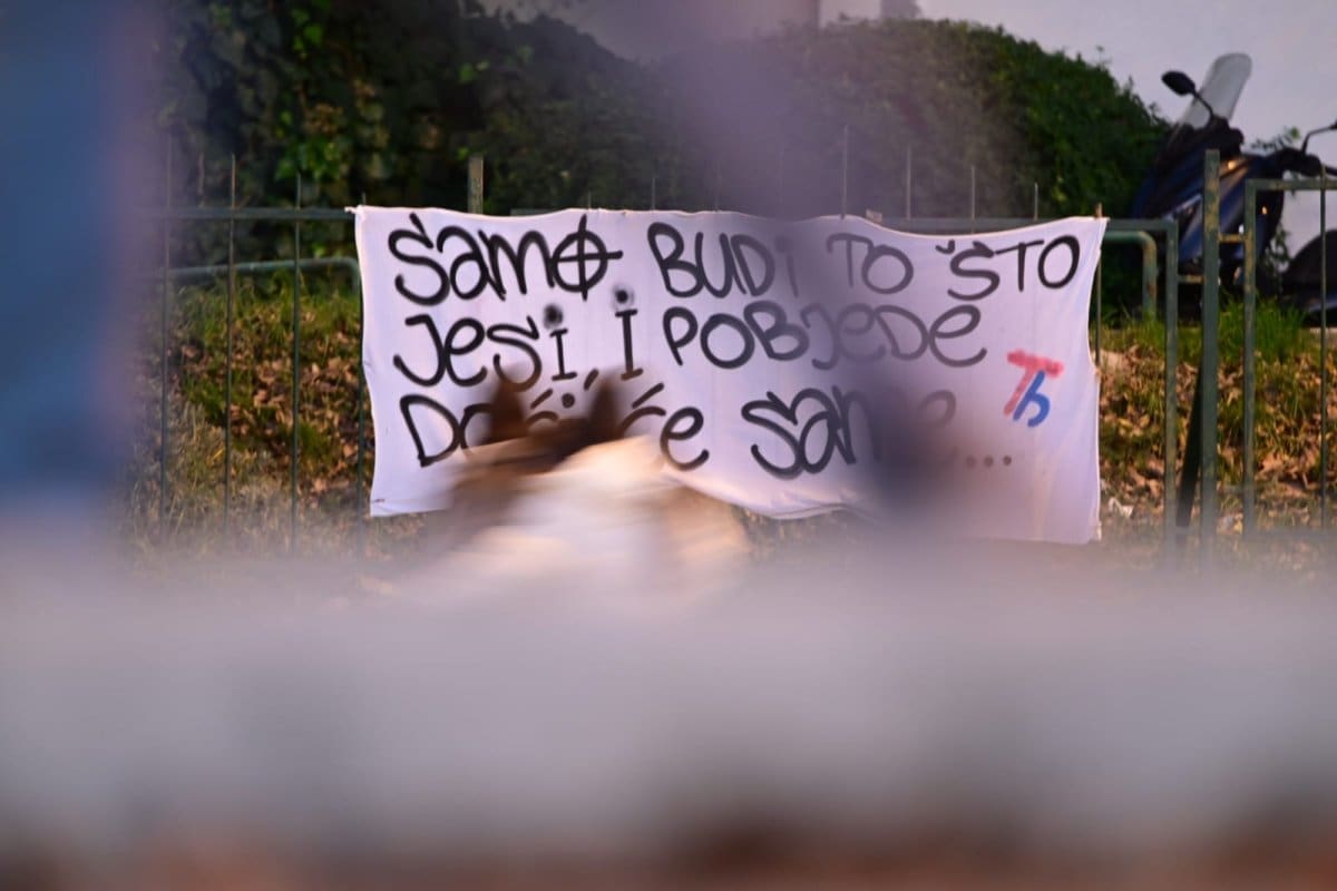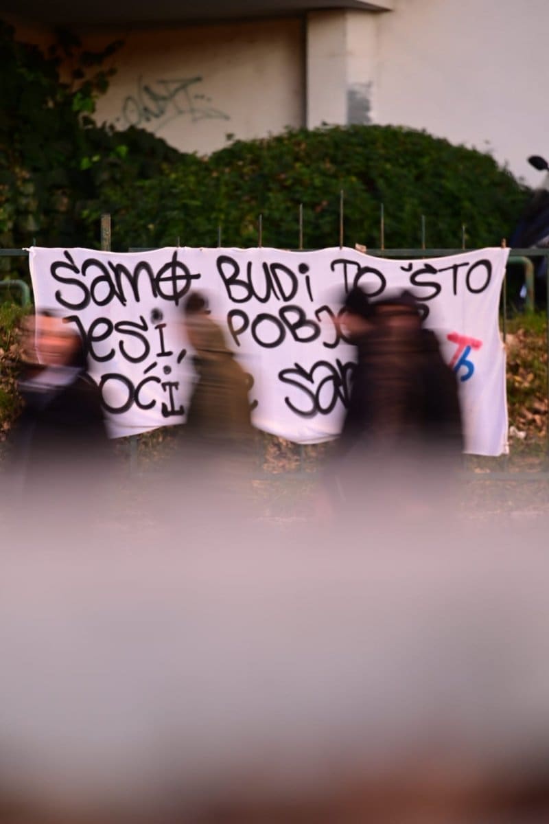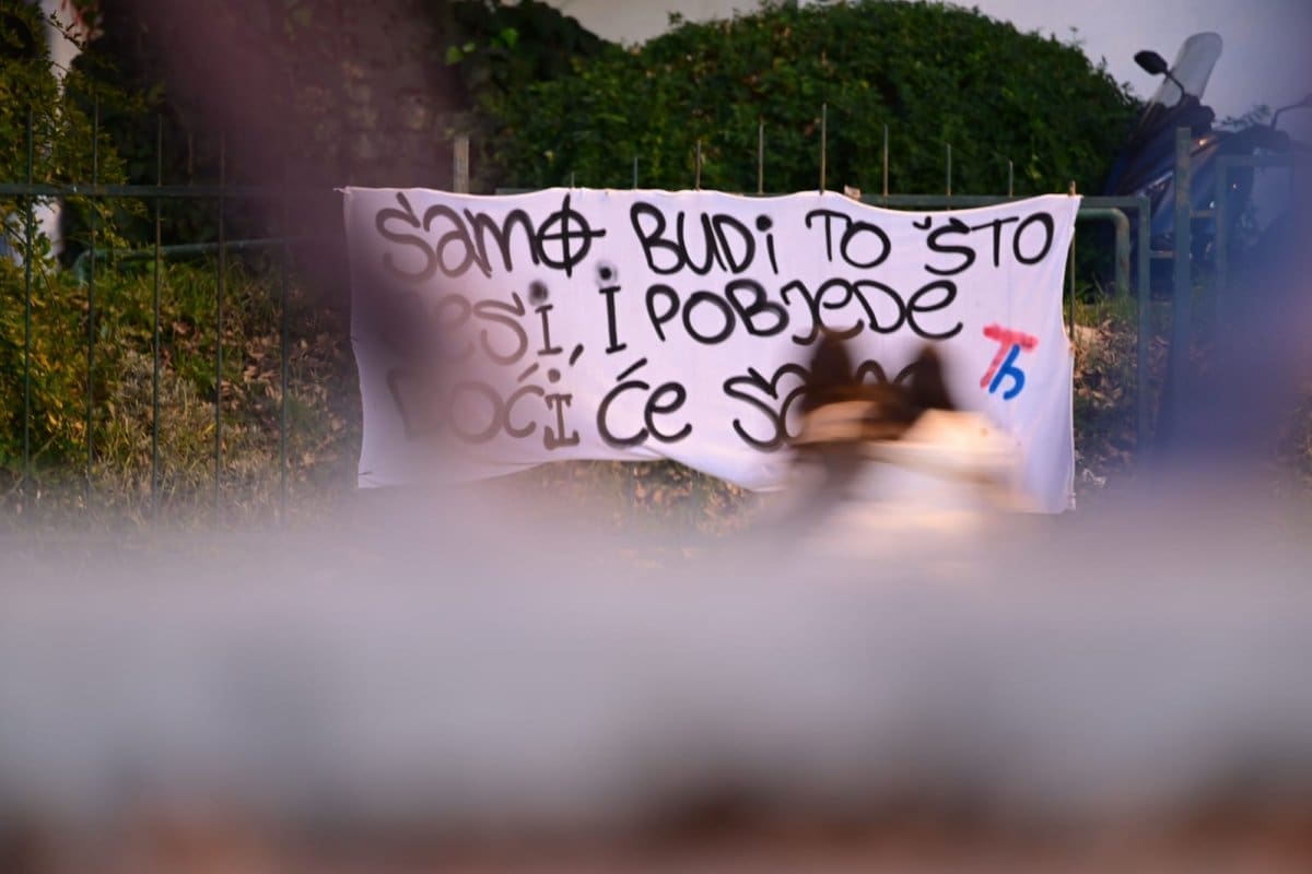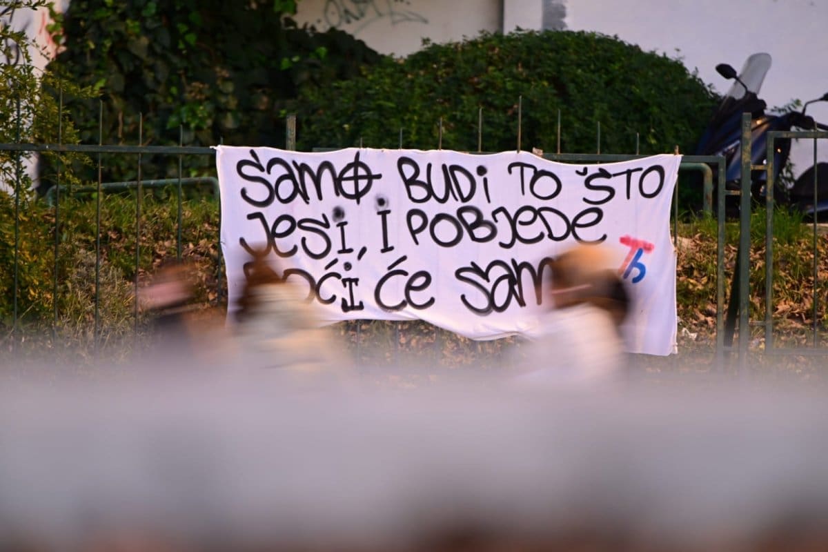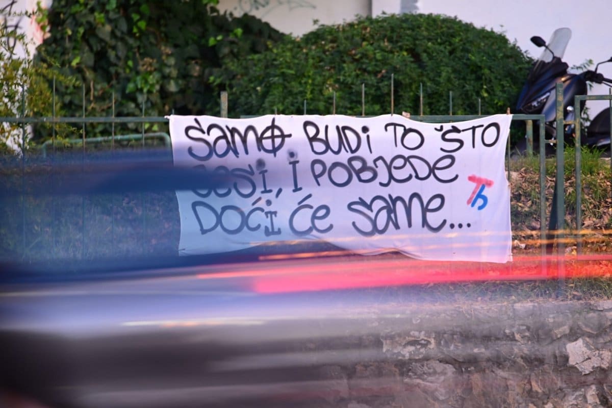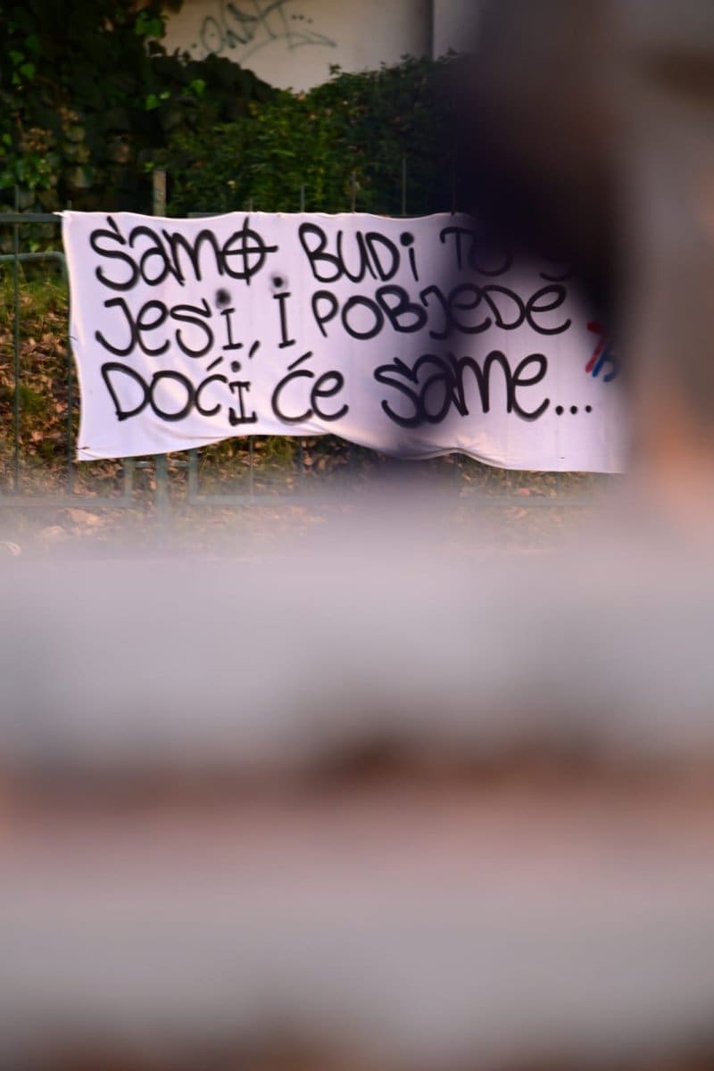 Tu su i stari i mladi, a postavljen je i natpis s posebnom porukom za hajdukovce: "Samo budi to što jesi, pobjede će doći same."