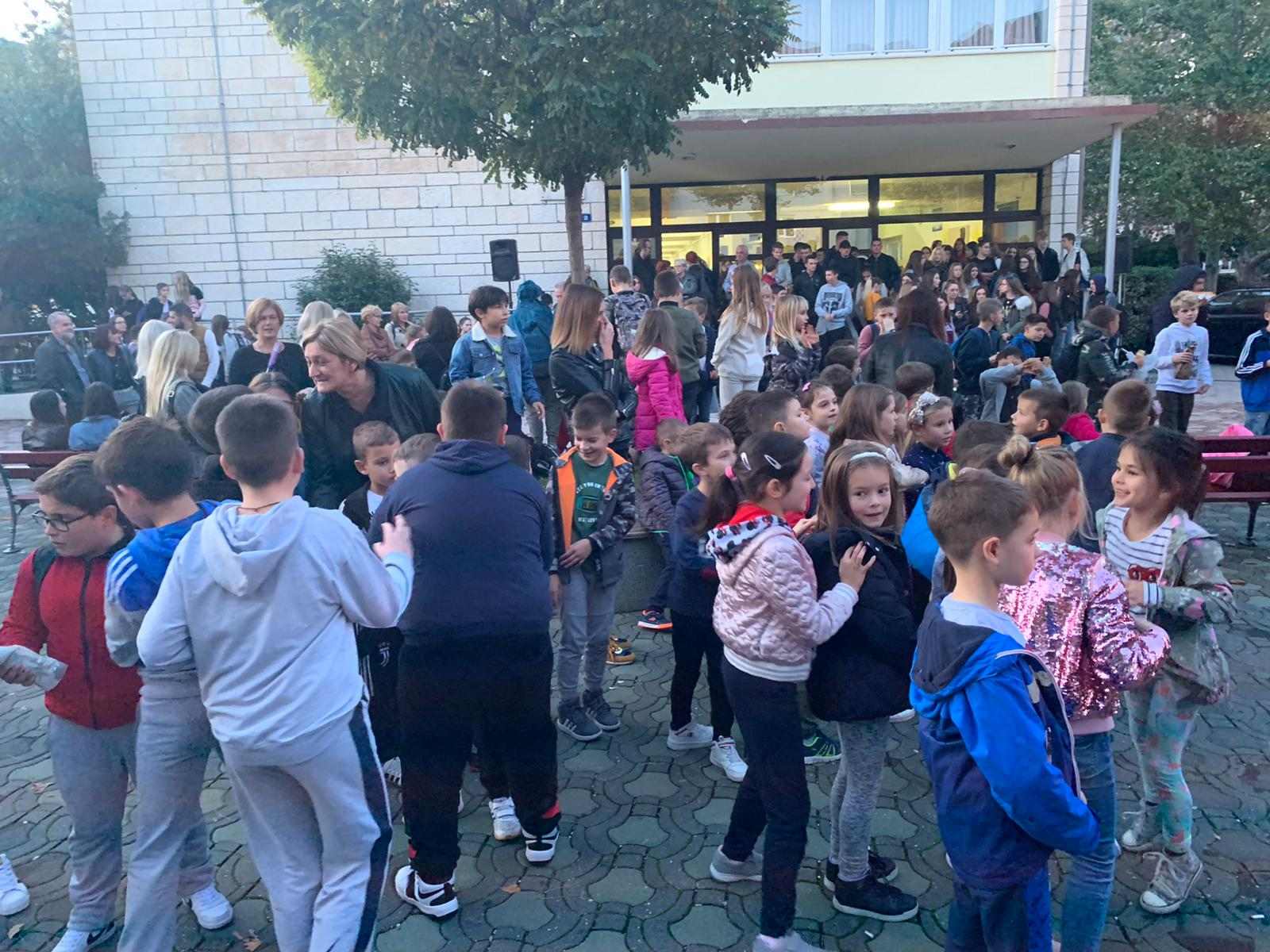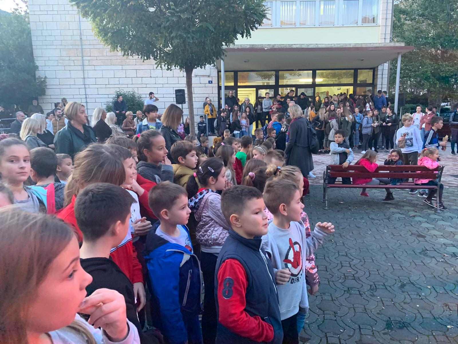 Učenici su u dvorištu škole zapalili lampione te izveli recitaciju uz prigodnu prateću glazbu.
