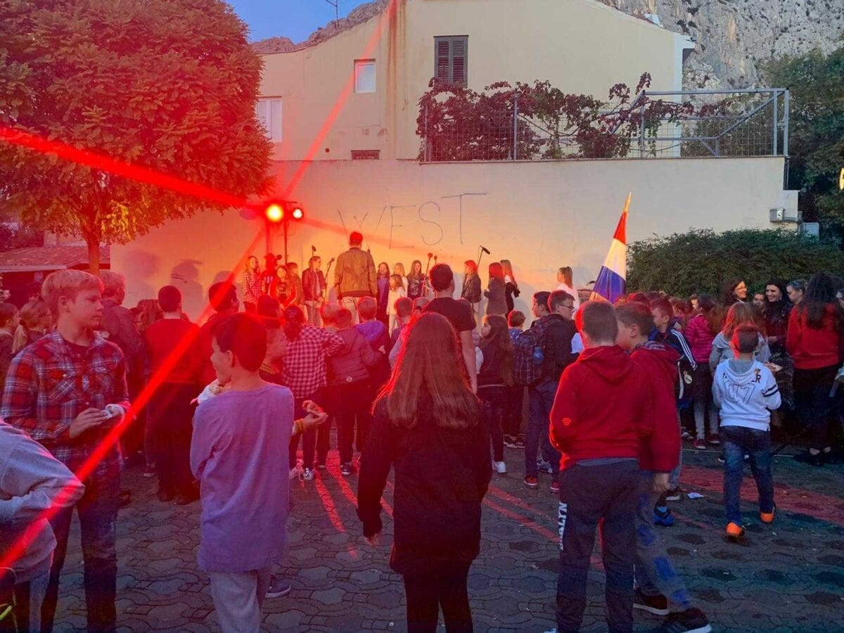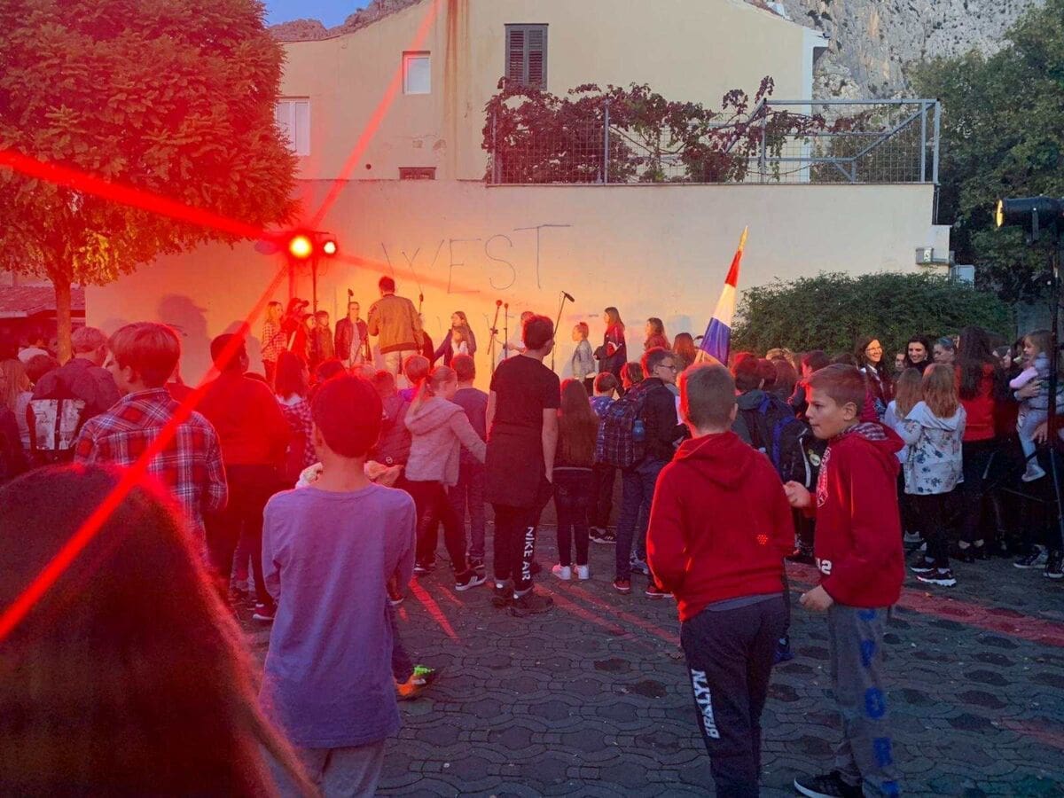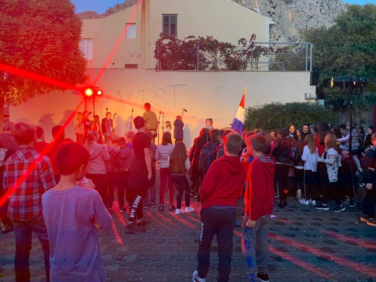 Otpjevale su omiške osnovnoškolke i hrvatsku domoljubnu pjesmu 'Moja domovina' koju su 1991. godine skladali i tekst napisali Zrinko Tutić i Rajko Dujmić, a snimio je Hrvatski Band Aid sastavljen od brojnih hrvatskih glazbenika.