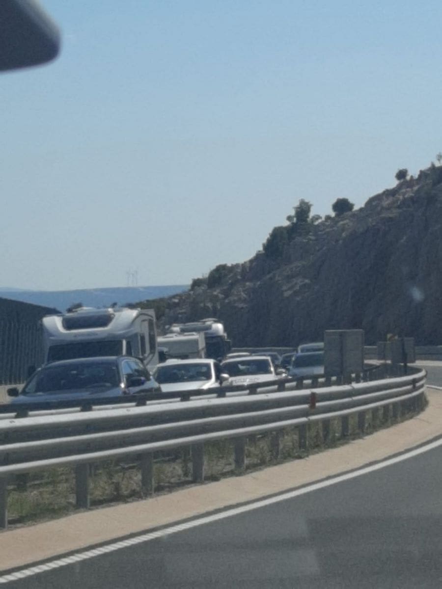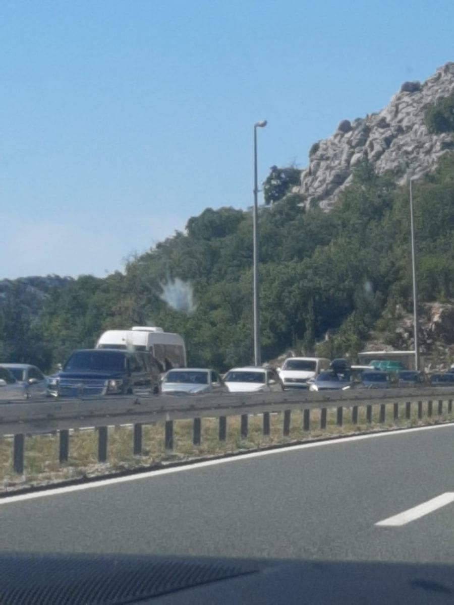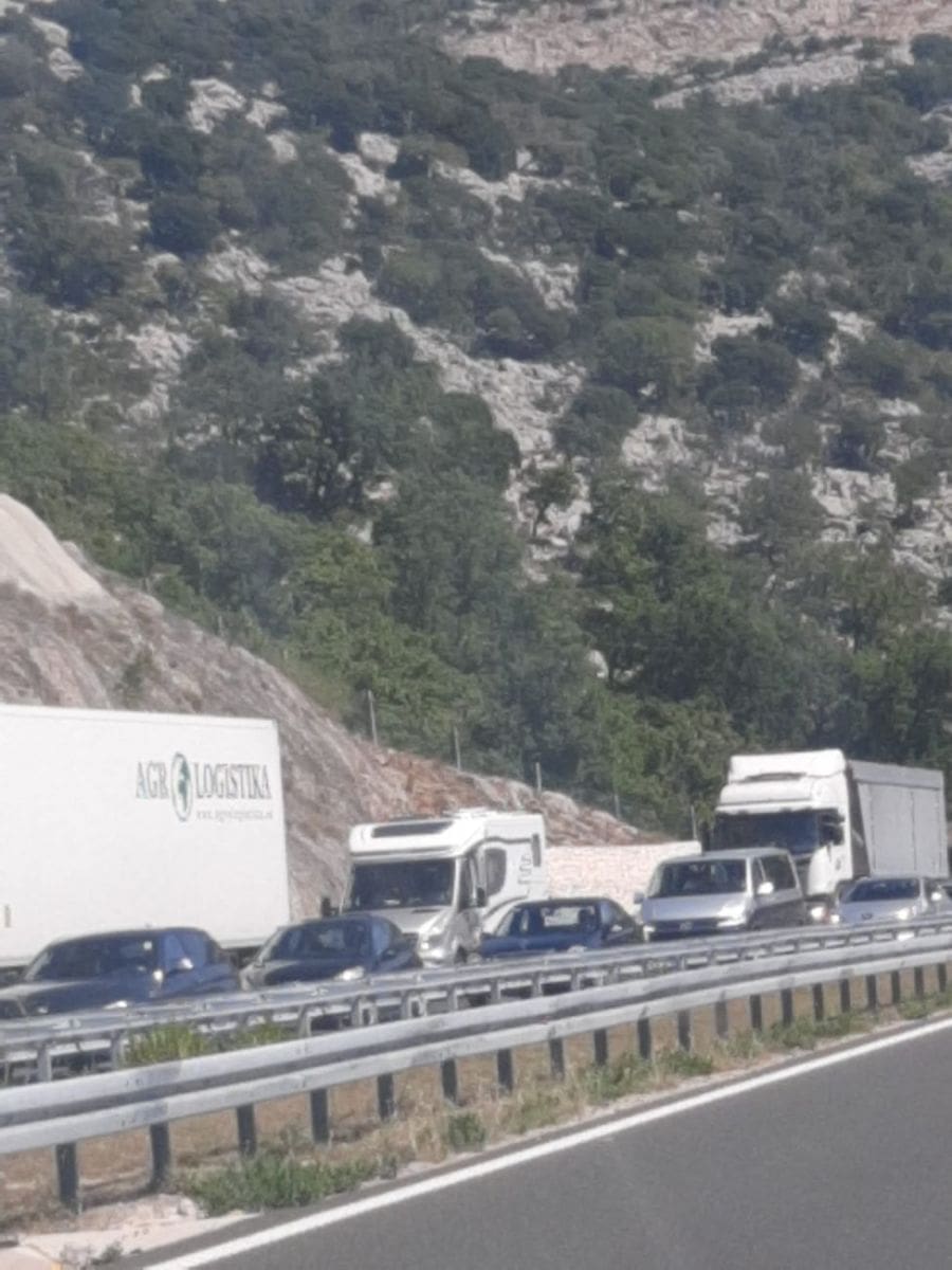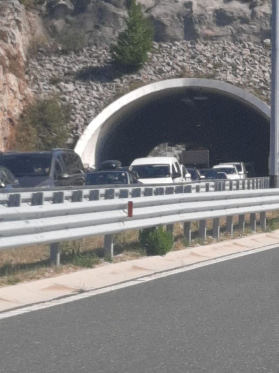 Naši čitatelji javljaju da se kolona proteže od tunela sv. Rok do odmarališta Jasenice.