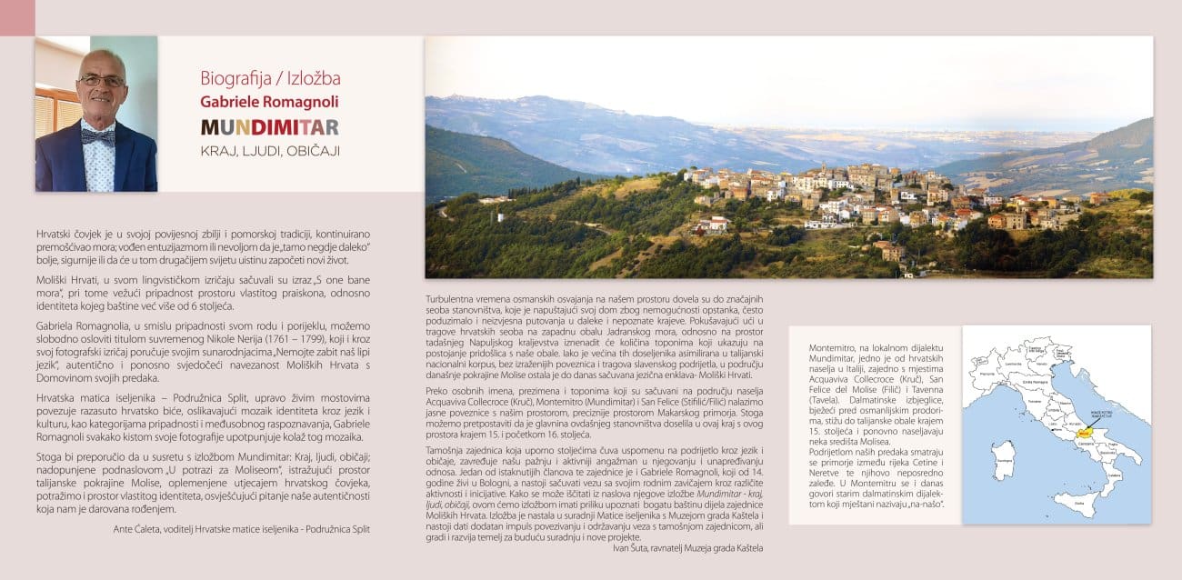 U suorganizaciji Hrvatske matice iseljenika – Podružnice Split i Muzeja grada Kaštela, pozivamo vas na svečano otvorenje izložbe Gabriela Romagnolia – Munidmitar: Kraj, ljudi, običaji koje će se održati u utorak, 15. travnja u 19:00 sati, u prekrasnom ambijentu dvorca Vitturi (Kaštel Lukšić).