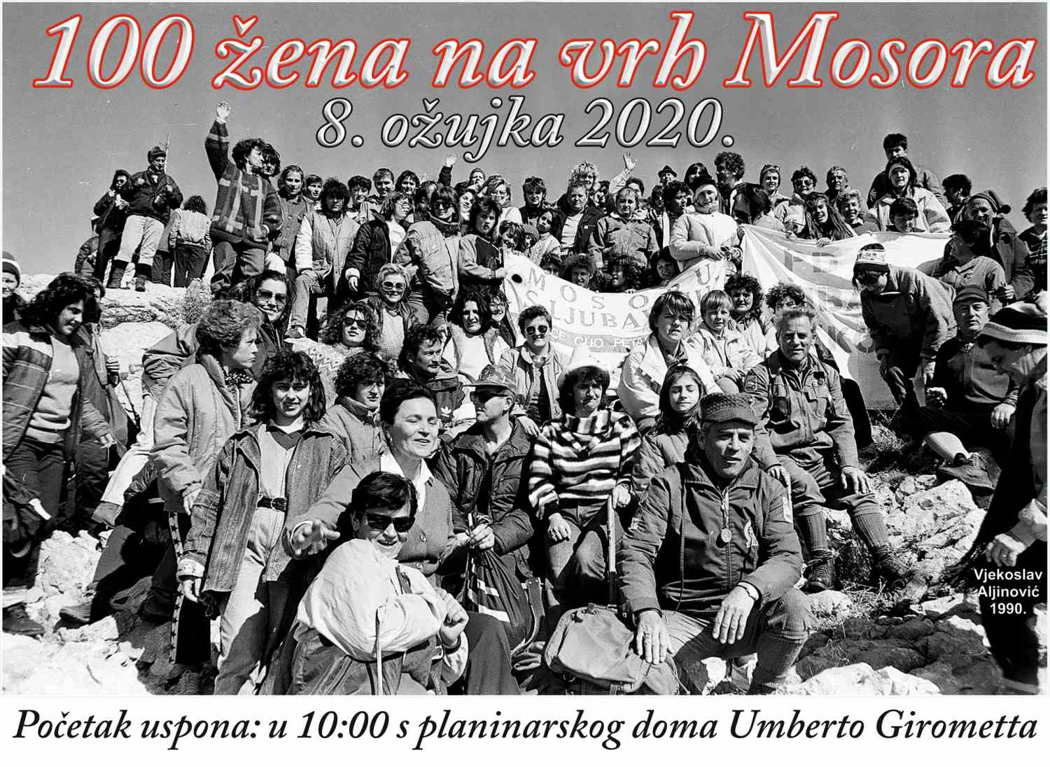 Hrvatsko planinarsko društvo "Mosor" poziva sve zainteresirane na tradicionalni uspon 100 žena na vrh Mosora koji će se održati povodom Međunarodnog dana žena u nedjelju 8. ožujka 2020.