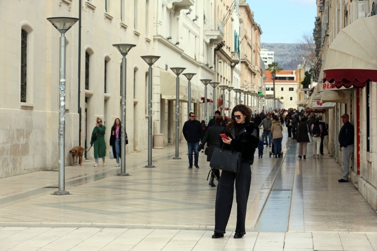 Splićanke i Splićani i ove su subote pohodili centar grada, no ne u onolikom broju kao recimo prošle subote, kad je sve bilo prekrcano.