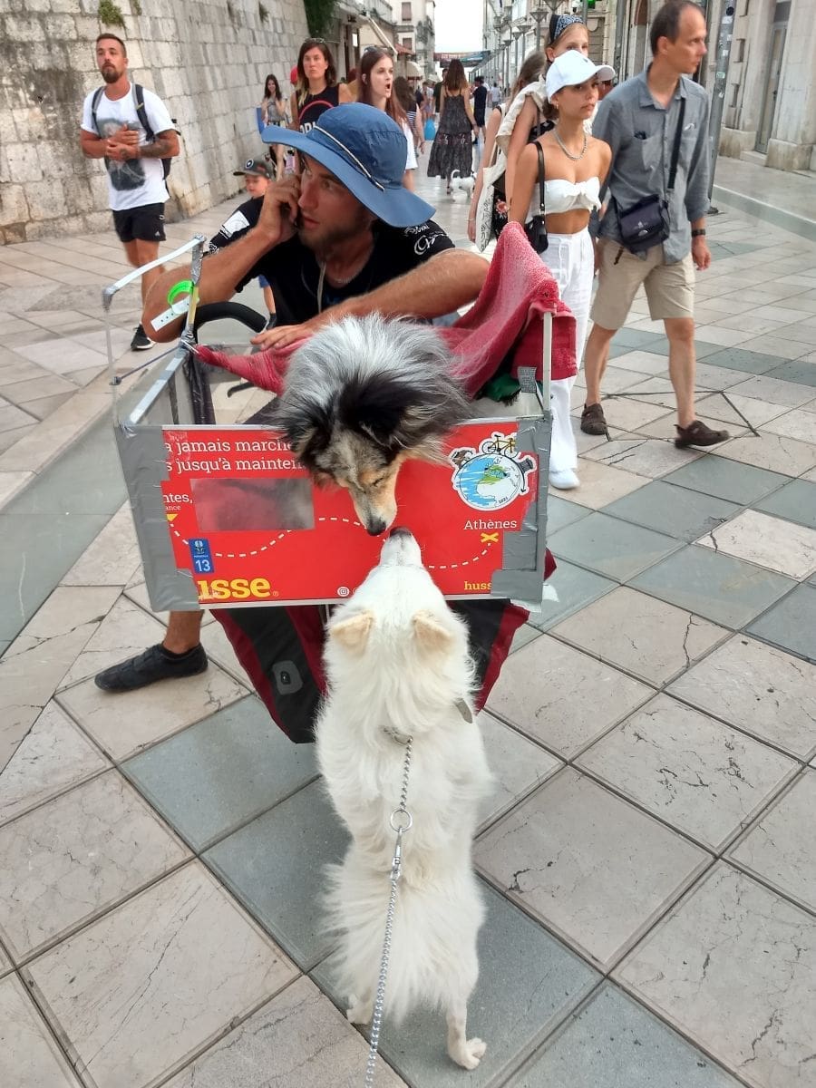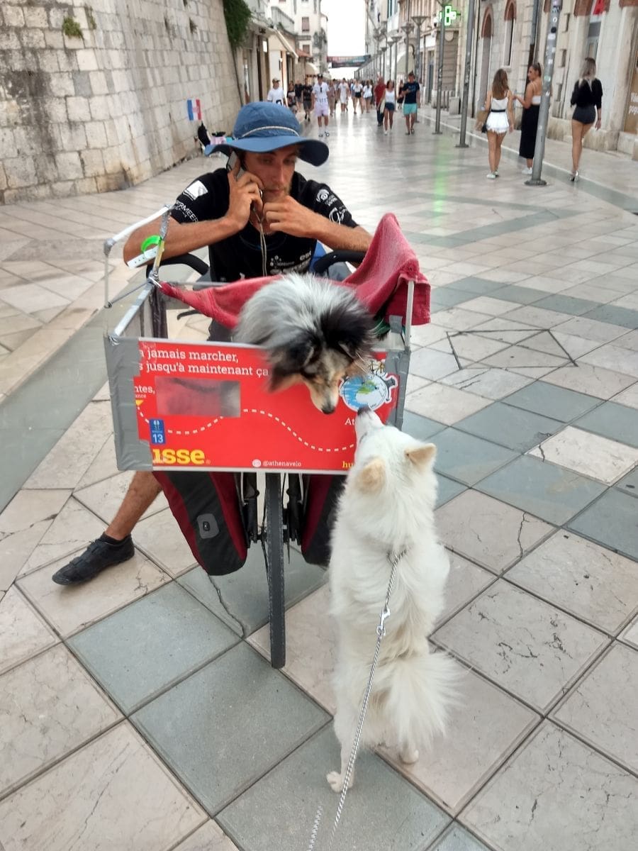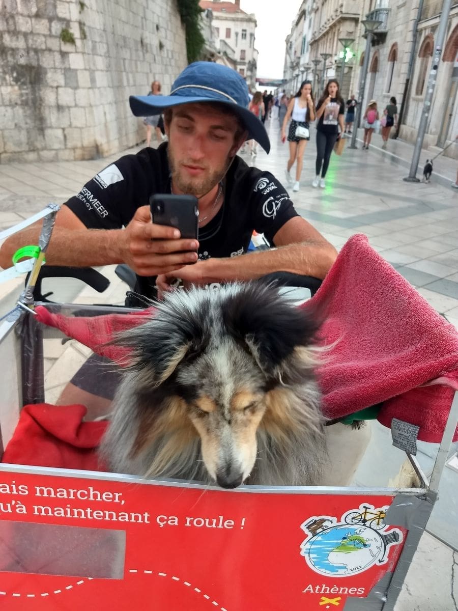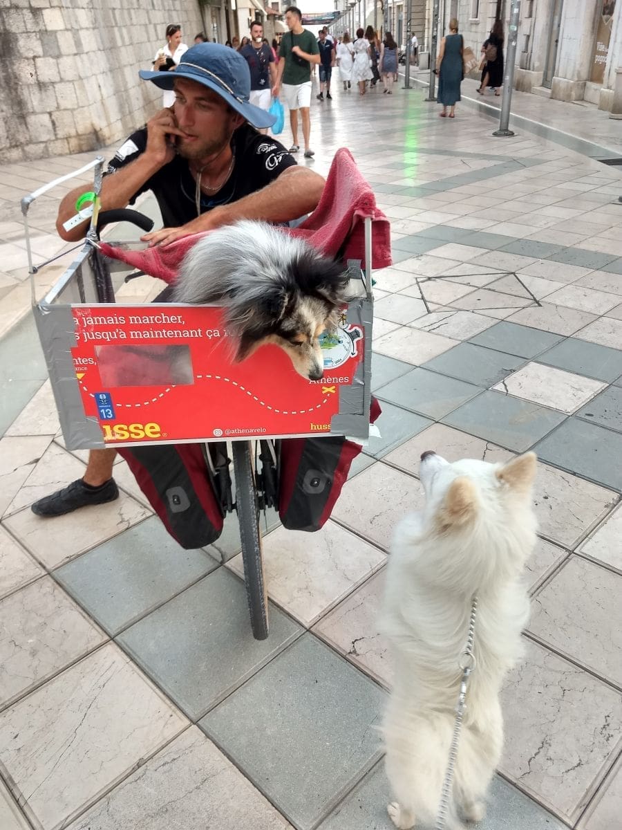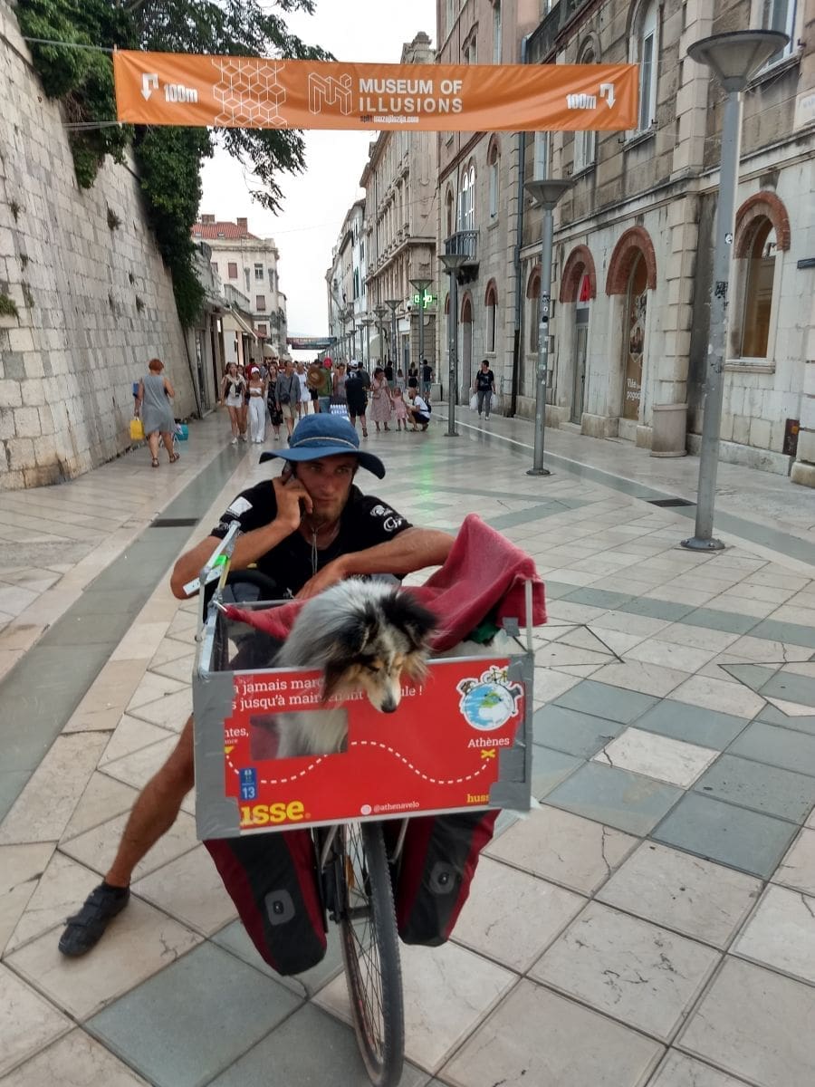 Vlasnik psa s kojim je Bili "kliknuo" na prvu je turist koji na biciklu sa svojim ljubimcem putuje po svijetu. Tako je iz Francuske preko Grčke došao u Split.