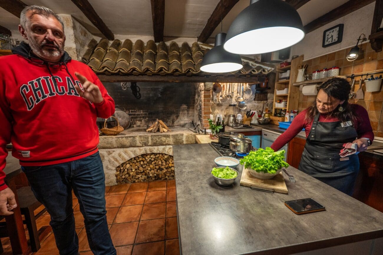 Na ulazu nas dočekuje Ivo Mujo, suvlasnik i nenadmašan domaćin koji nas nije doživio sam kao goste već svoje prijatelje. Dok nas vodi kroz svoje malo agroturističko carstvo – rustikalnu vilu s bazenom, vinogradarsku „eko kućericu“ i konobu očuvanu u duhu starog mlina – priča o svemu što Konavle čini Konavlima: od teške povijesti do znatno ljepše sadašnjosti.