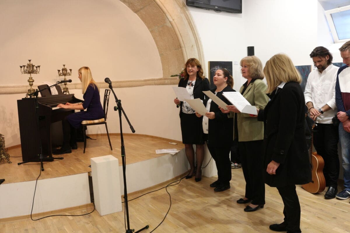 Kustosica izložbe je povjesničarka umjetnosti Andrea Batinić Ivanković, a izložbu su nastupom uveličalizbor molitvene zajednice Effatha i međunarodno priznati tenor Stijepo Gleđ Markos. On je, pored ostalih, izveo i naslovnu pjesmu izložbe "Nebo ljubavi", autori glazbe i teksta koje su zajedno Stijepo i njegova supruga Jelena.