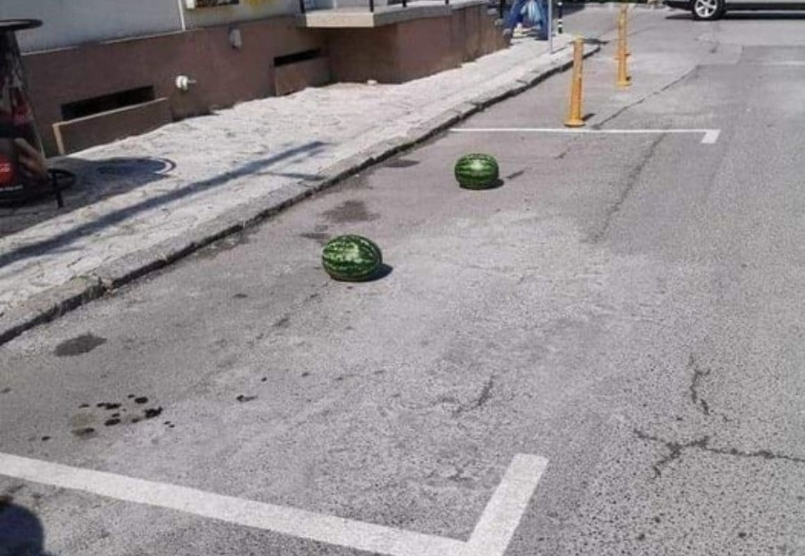 Na Facebook stranici Dnevna doza prosječnog Dalmatinca osvanula je fotografija praznog parkirnog mjesta koje si je netko sačuvao (ili barem pokušao sačuvati) - dvjema lubenicama.