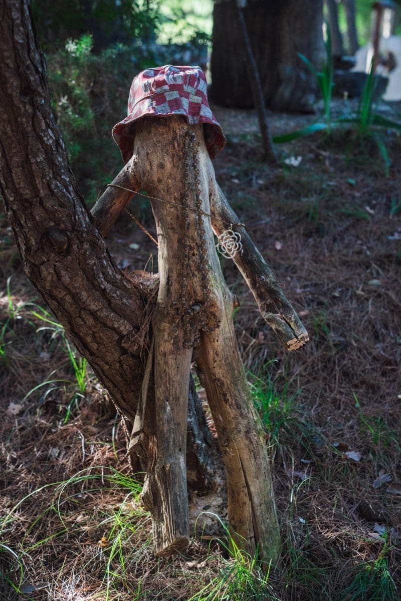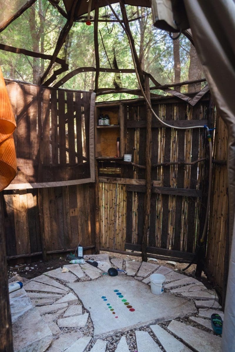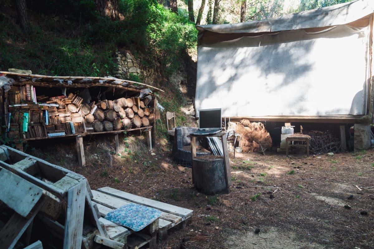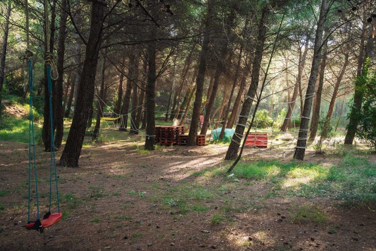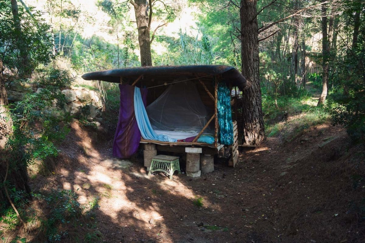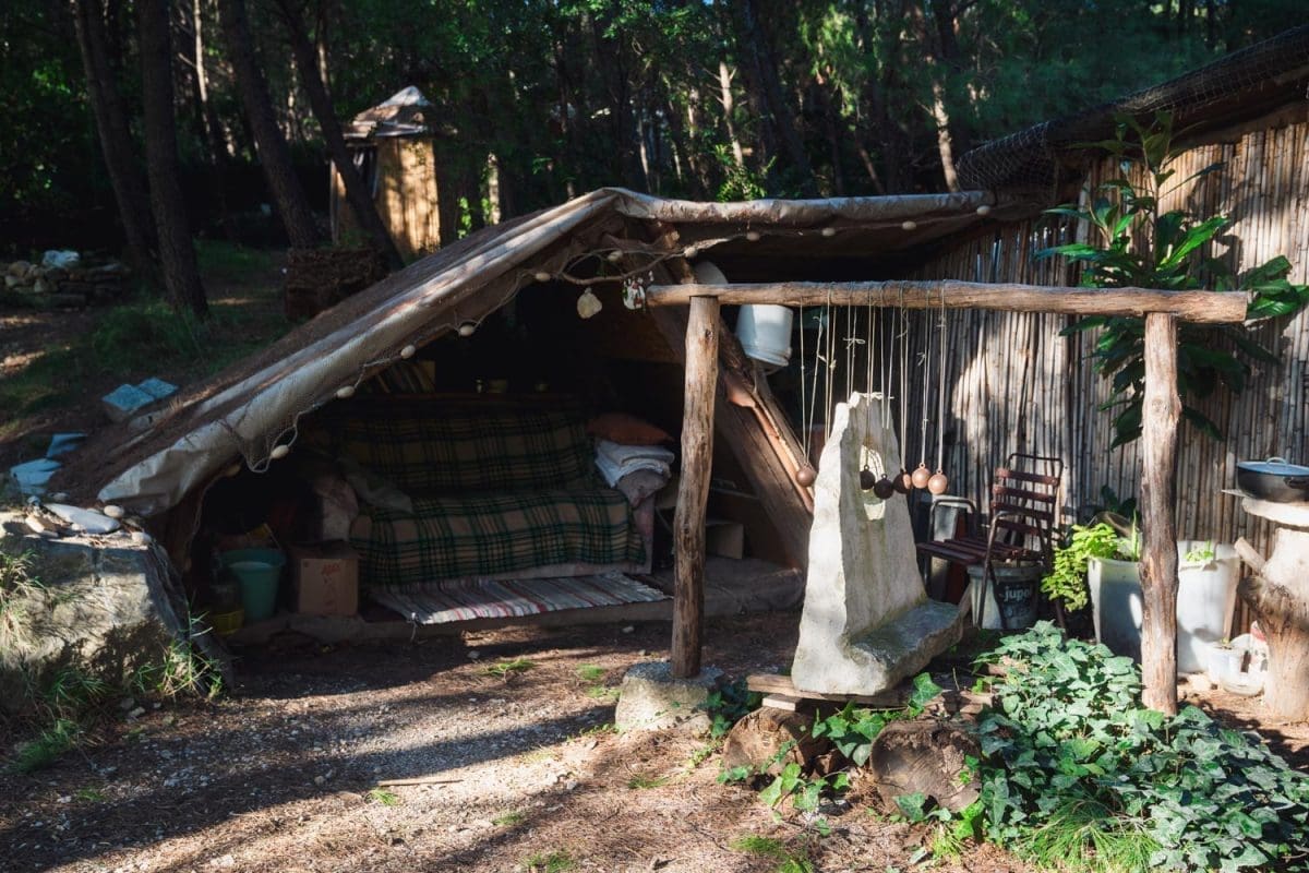 Ulazak u park je svojevrsni muzej kamenih skulptura. Poviše njega, nalaze se ručno izrađene nastambe od drveta. Izgledaju kao bajkovite kolibice smještene usred guste šume, sa ognjištem, krevetima i kuhinjom. Tuš je zasebna prostorija koju je izgradio jedan gost iz Amazone od stabljika bambusa. Nalik na tropsku kišu, ova mala prostorija zaista ostavlja dojam amazonske prašume. U srcu šume nalazi se knjižnica. Otvoreni, natkriveni prostor izgrađen od drva dom je međunarodnih knjiga.