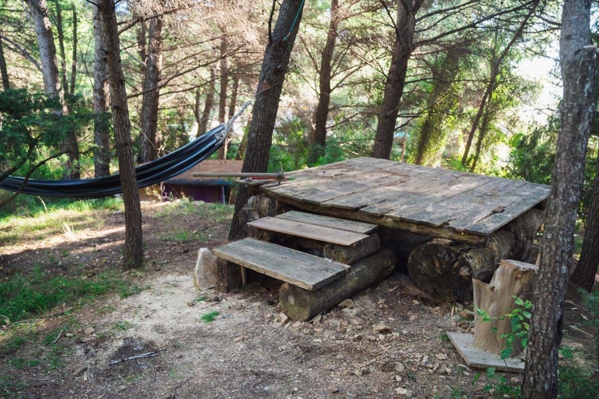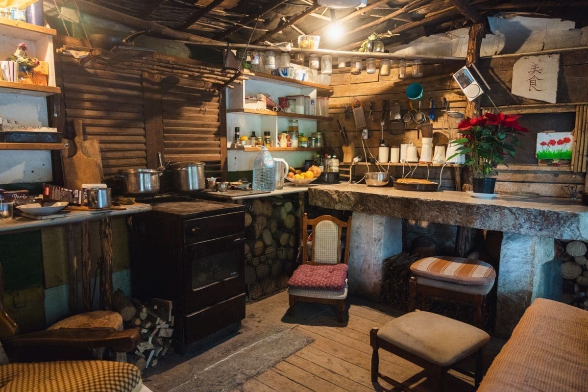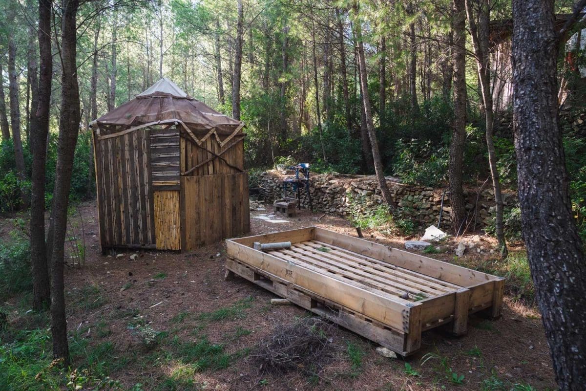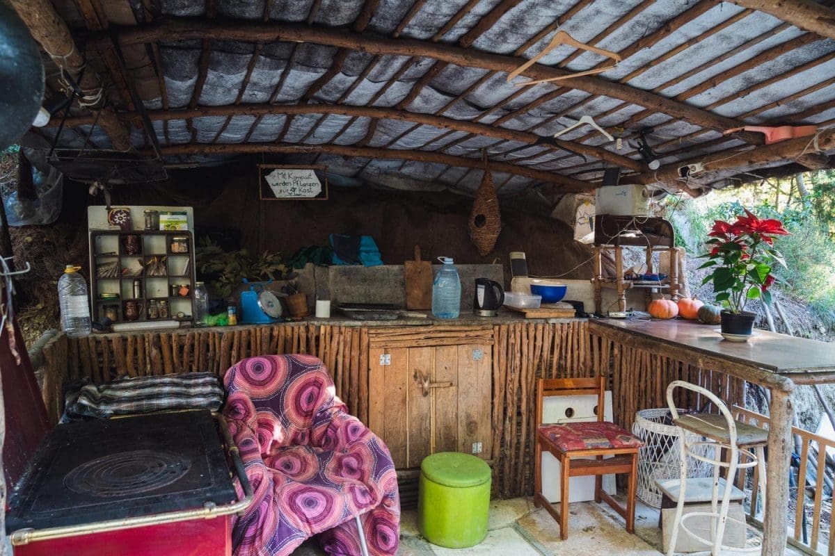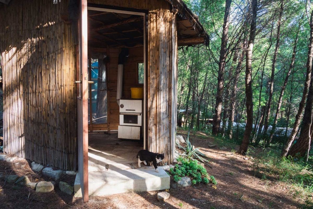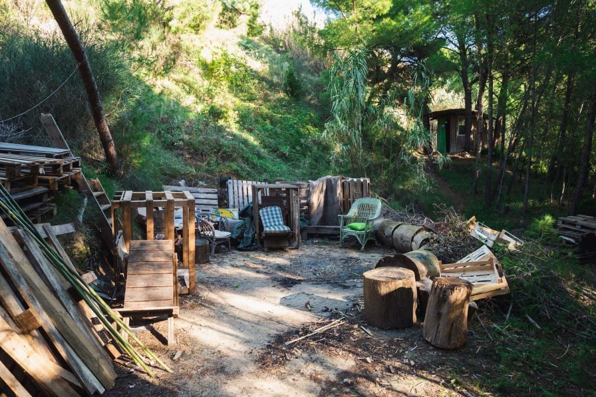 Ulazak u park je svojevrsni muzej kamenih skulptura. Poviše njega, nalaze se ručno izrađene nastambe od drveta. Izgledaju kao bajkovite kolibice smještene usred guste šume, sa ognjištem, krevetima i kuhinjom. Tuš je zasebna prostorija koju je izgradio jedan gost iz Amazone od stabljika bambusa. Nalik na tropsku kišu, ova mala prostorija zaista ostavlja dojam amazonske prašume. U srcu šume nalazi se knjižnica. Otvoreni, natkriveni prostor izgrađen od drva dom je međunarodnih knjiga.