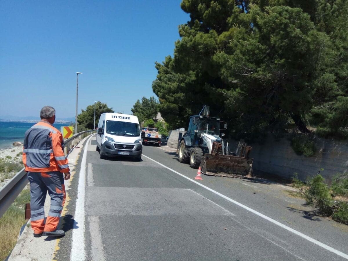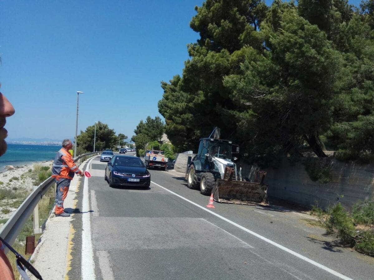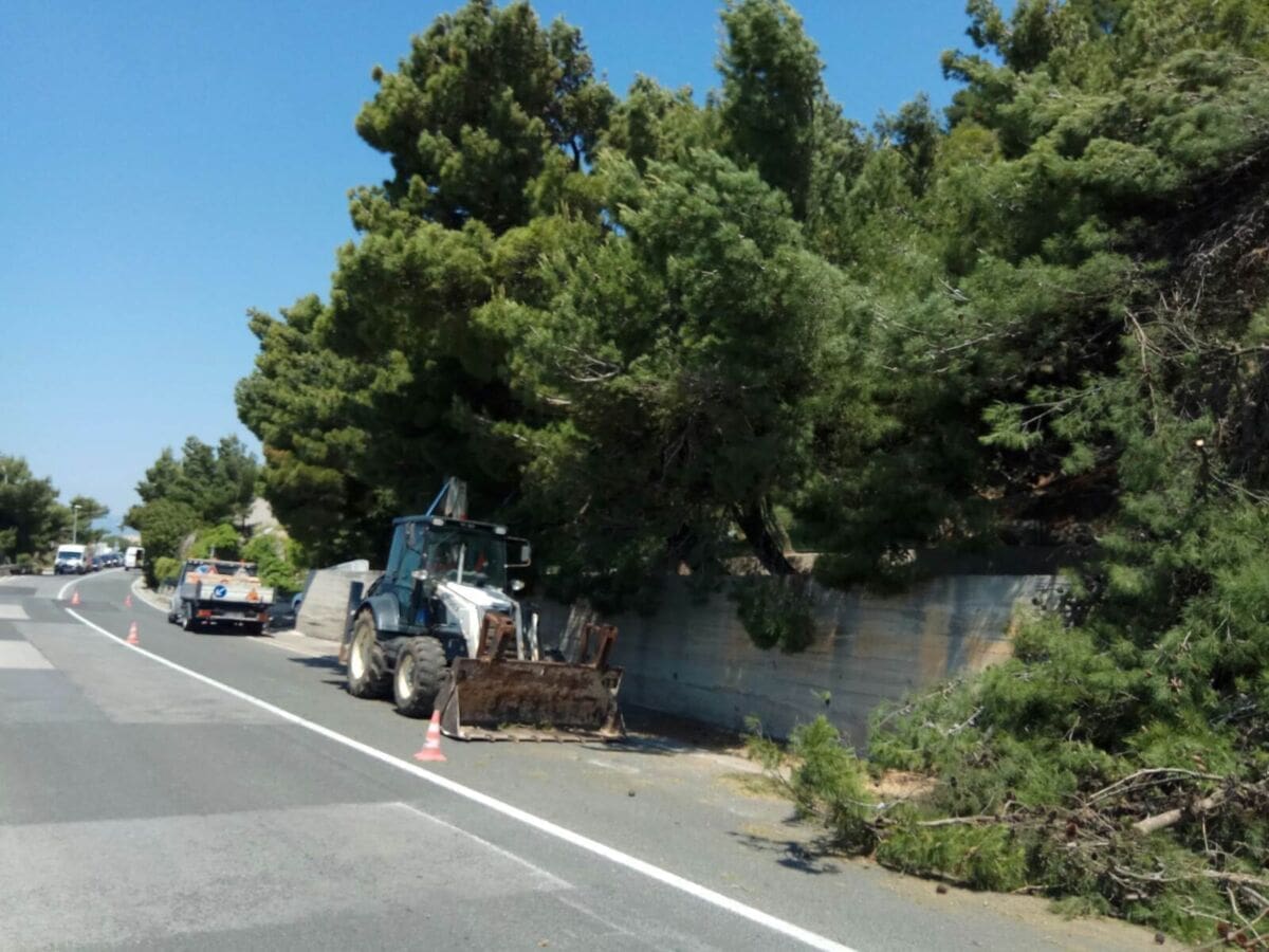 Danas su na teren izašli djelatnici Hrvatskih cesta koji su na punti Mutogras - Bajnice uklanjali brojne prijeteće borove. Promet se odvija regulacijom semafora, a zbog toga se stvaraju povremene gužve u oba pravca.
