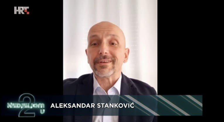 "Poštovani gledatelji, dobar dan! Današnja emisija malo je drukčija. Naime, ja imam koronu, a nemam izraženiji simptoma, osim šmrcanja, pa smo odlučili da vodim emisiju iz stana preko Skypea, a gost Albert Gajšak je u studiju. Ispričavam se naravno zbog tehnički slabije kvalitete, i molim vas jednu stvar, nemojte se sada smijati. Svi oni koji znaju moju suprugu, nemojte zvati, jer ovo realiziramo preko njezinog mobilnog telefona. U zadnji trenutak doznao sam da imam koronu, zato radimo preko Skypea", rekao je Stanković na početku emisije, piše Index.