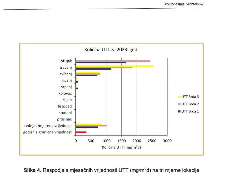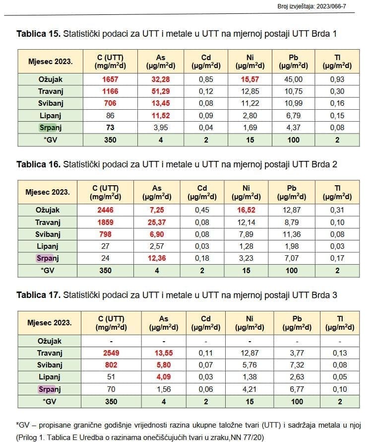 • 98 percentil za Ni viši je na lokacijama UTT Brda 1 i UTT Brda 2 od propisane srednje godišnje granične vrijednosti (GV Ni = 15 mg/m2d).