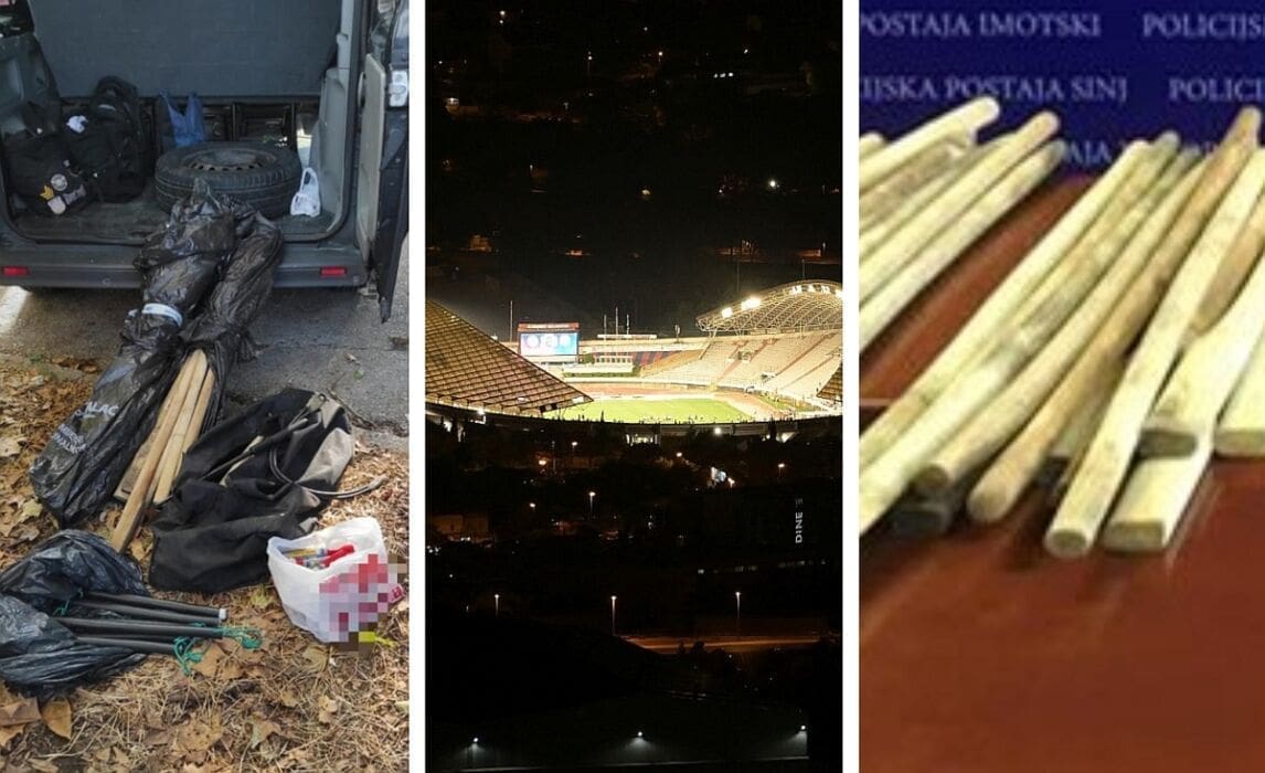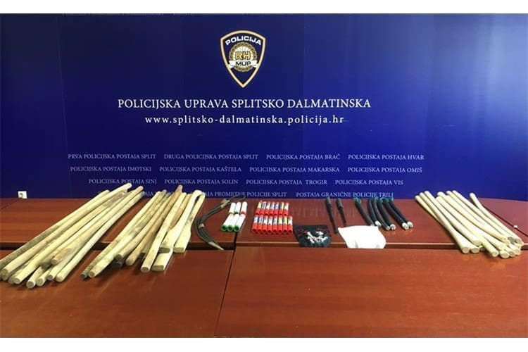 "Utvrđeno je da su se u kombi vozilu nalazile 43 drvene palice, 6 palica od električnog kabela, dvije teleskopske palice, dva električna kabela, sve predmeti podesni za napad i ozljeđivanje. Također je pronađen i oduzet 21 komad pirotehničkog sredstva tzv. 'bengalki', te dvije fantomke. Šesnaest osoba je privedeno u prostorije policije te je nad njima u tijeku kriminalističko istraživanje", izvijestila je još jučer PU splitsko-dalmatinska.