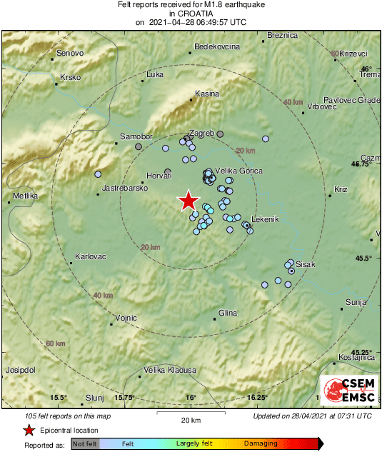 Map of felt reports received so far following the #earthquake M1.8 in Croatia 41 min ago pic.twitter.com/1HixUCgyac