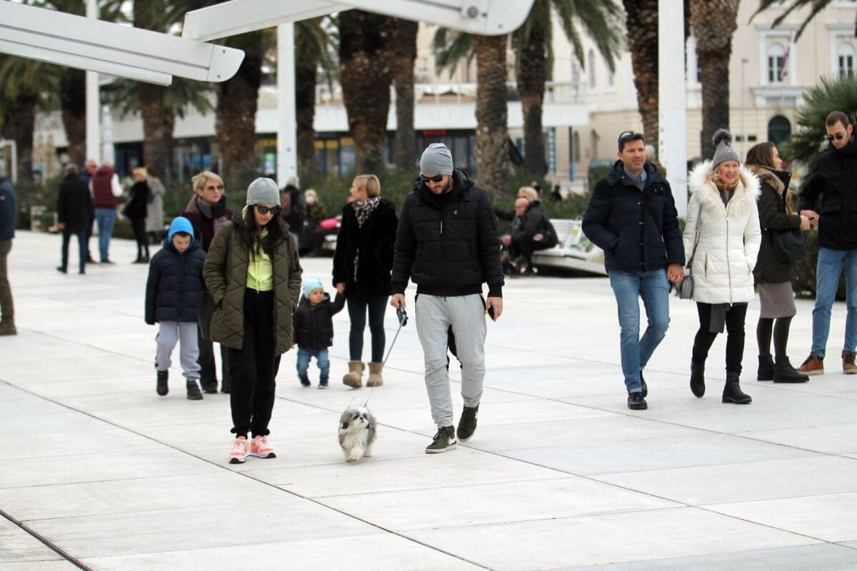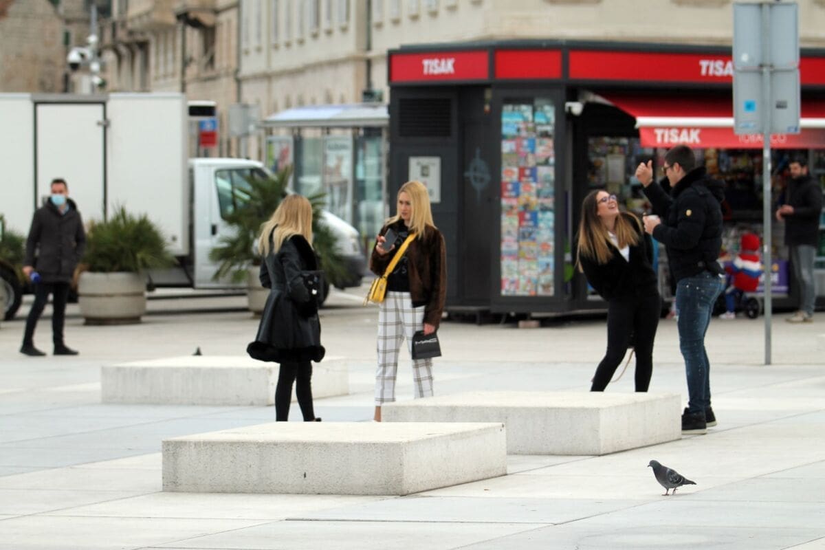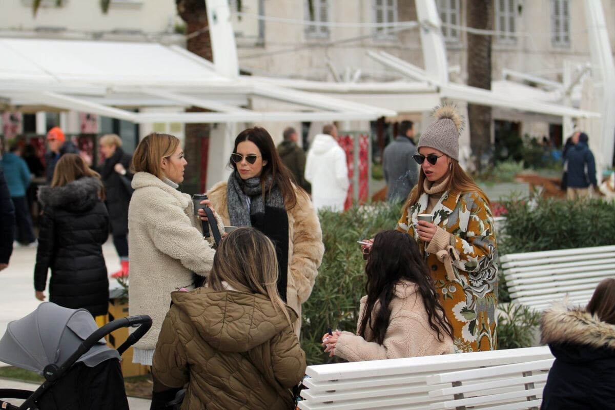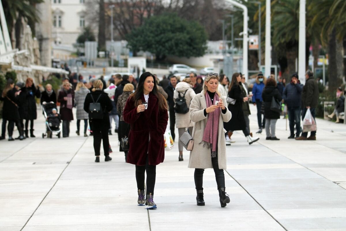 Temperatura je danas nešto niža, nema ni sunca, ali Splićanima ne smeta. Subota, je, kava se mora popit. Ima li boljeg mjesta za to od centra grada?!