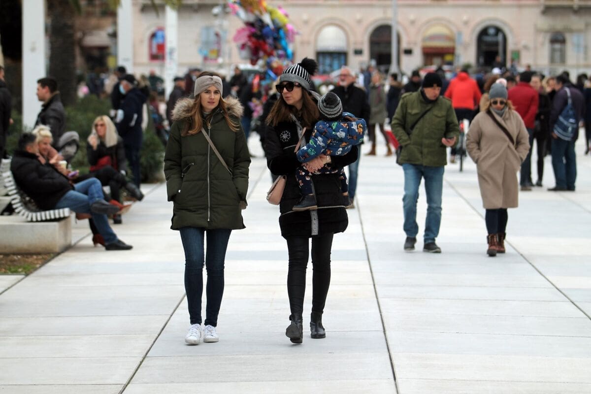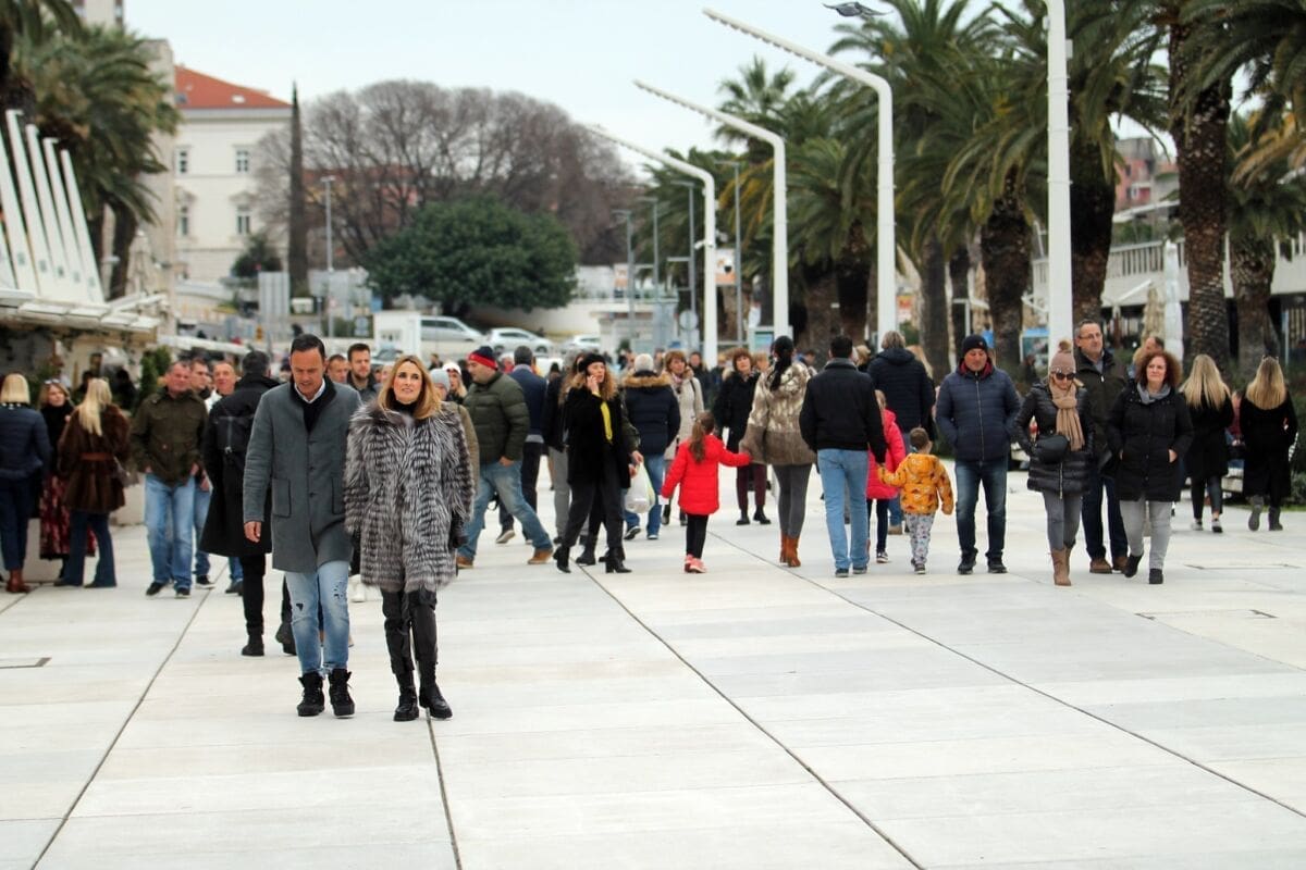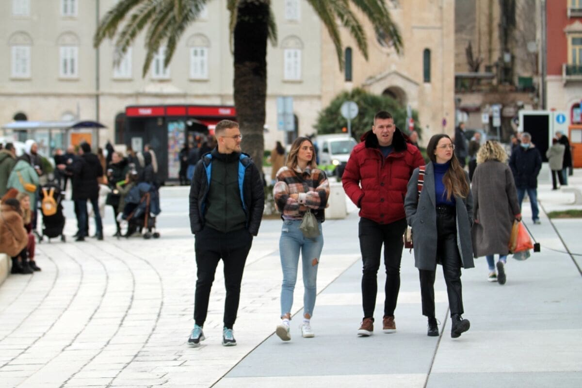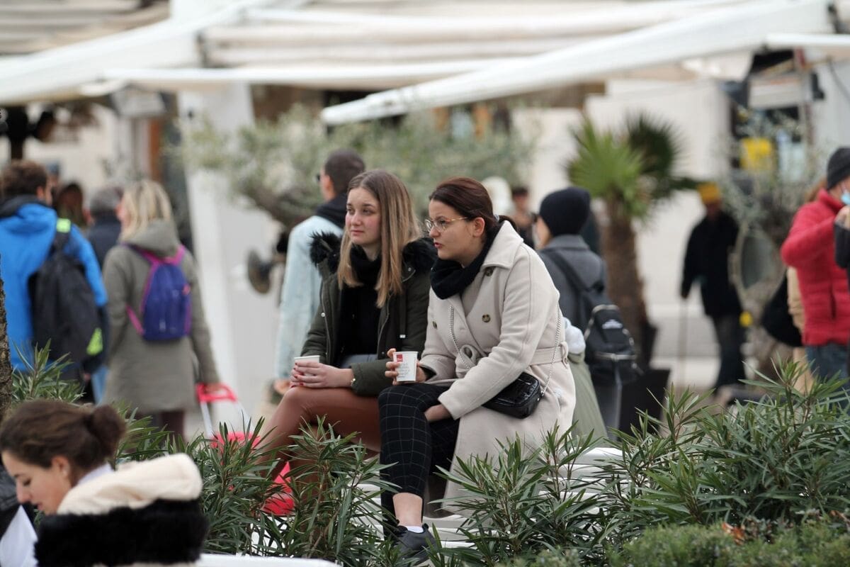 Temperatura je danas nešto niža, nema ni sunca, ali Splićanima ne smeta. Subota, je, kava se mora popit. Ima li boljeg mjesta za to od centra grada?!
