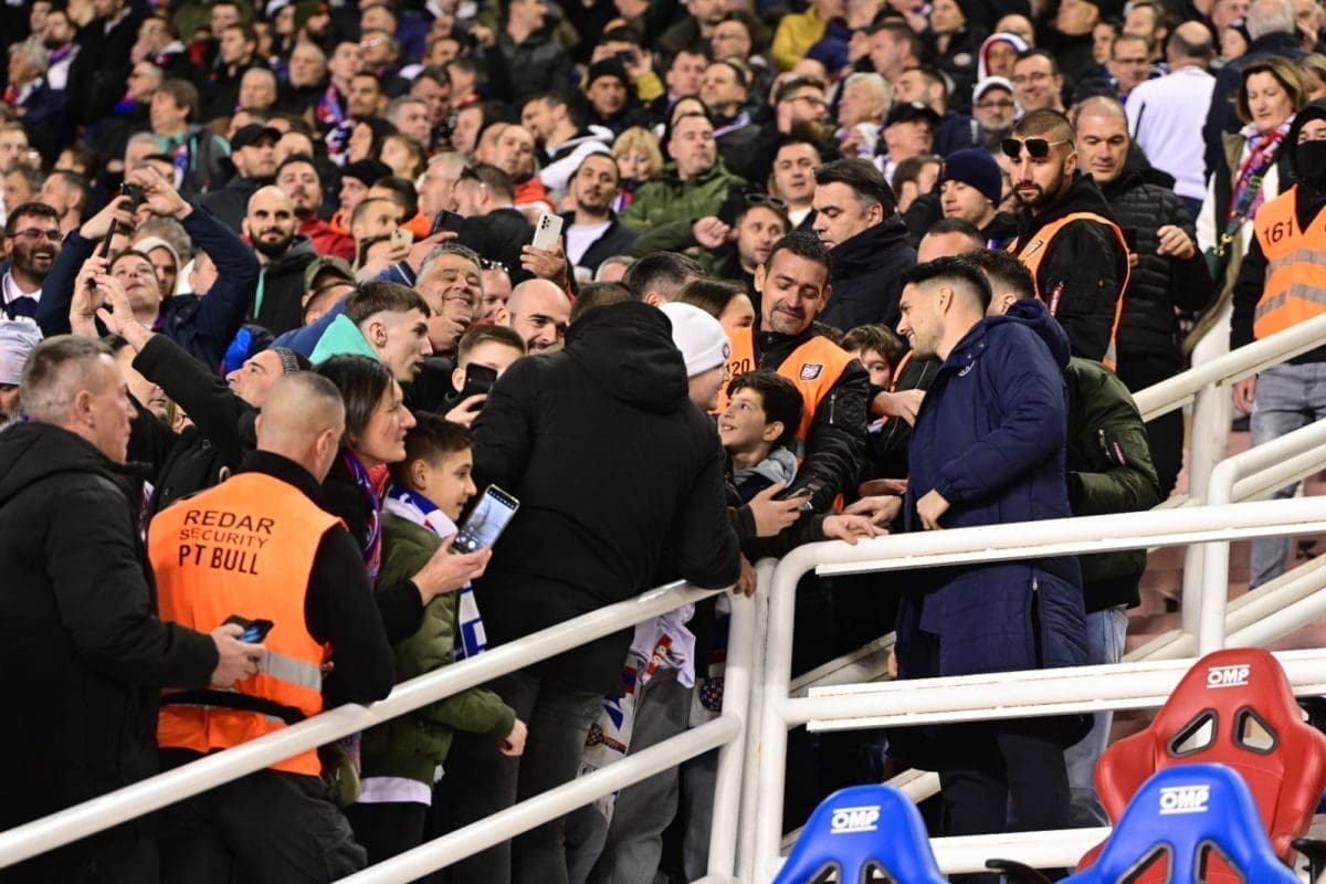 Potom su zauzeli svoje pozicije u svečanoj loži odakle su gledali utakmicu, a pridružio im se i Dario Melnjak. Odmah su ih 'zaustavili' navijači.