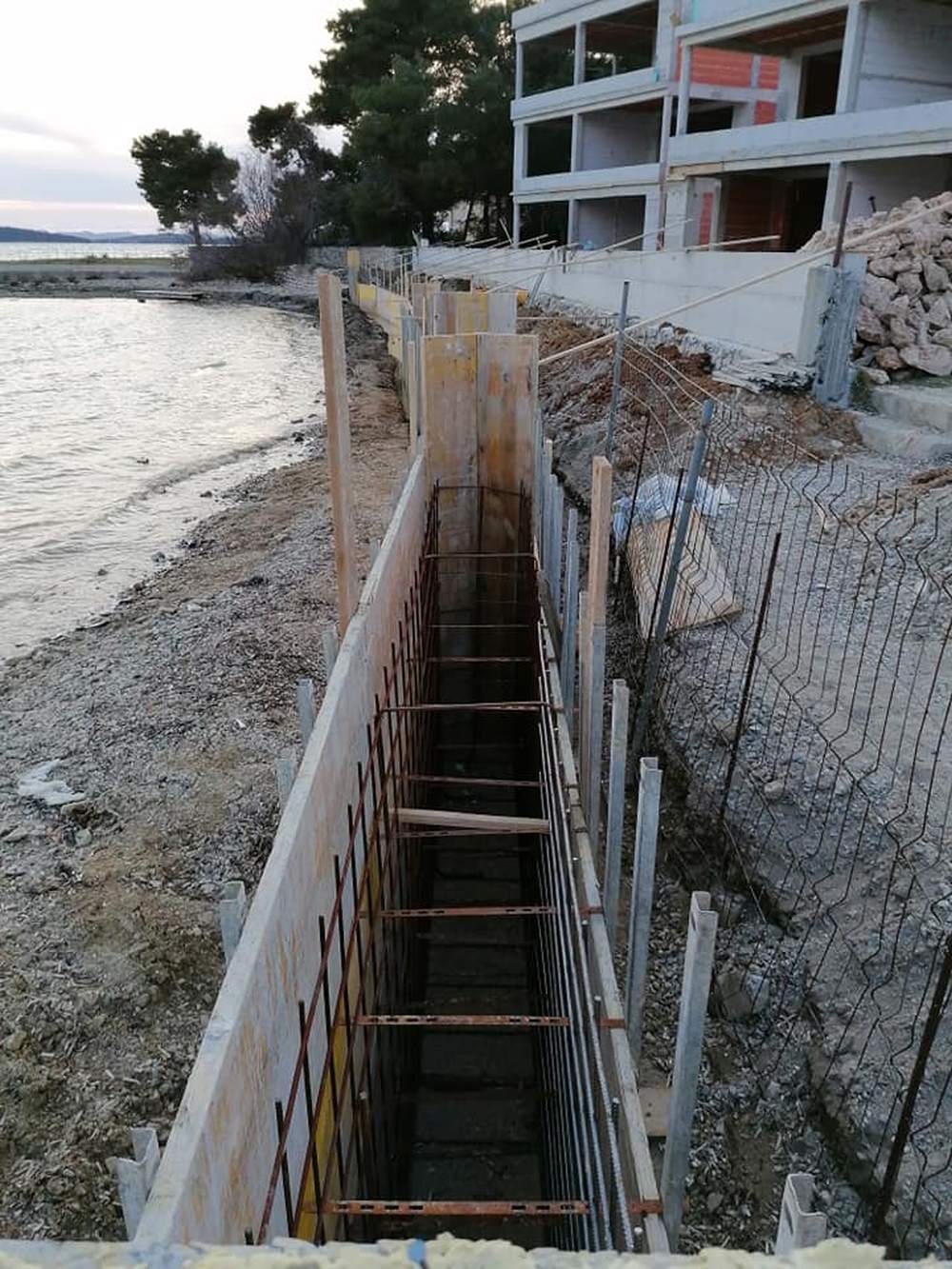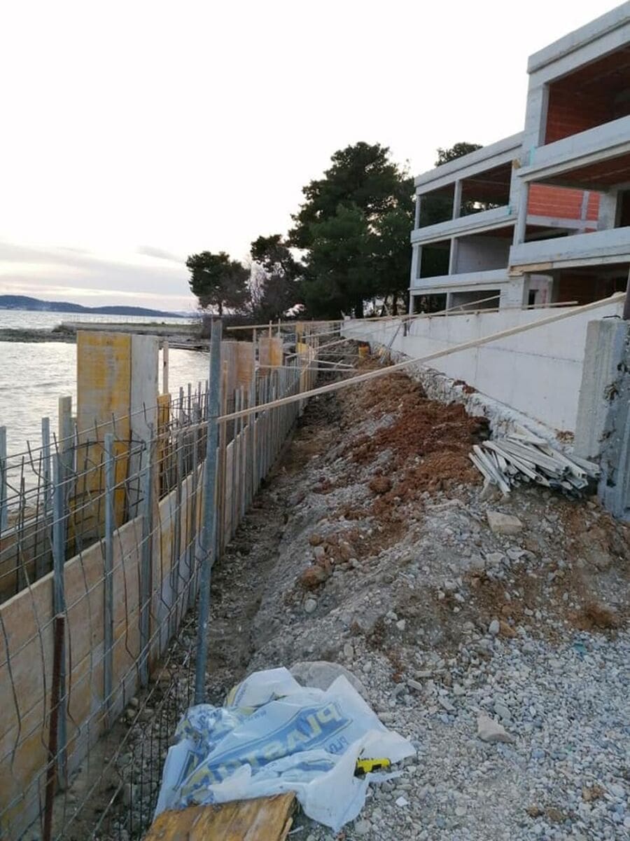 Gradi se obalna šetnica u dužini od 45 metara, a zanimljivo je da je točno toliko duljina dvije sporne parcele. Iz tvrtke koja gradi sporne objekte kažu da imaju sve dozvole za gradnju, a da potporni zid za obalnu šetnicu nije njihova briga. Načelnik Sukošana ponovio je Dnevniku Nove TV 29. veljače isto što je za Morski HR kazao u prosincu.