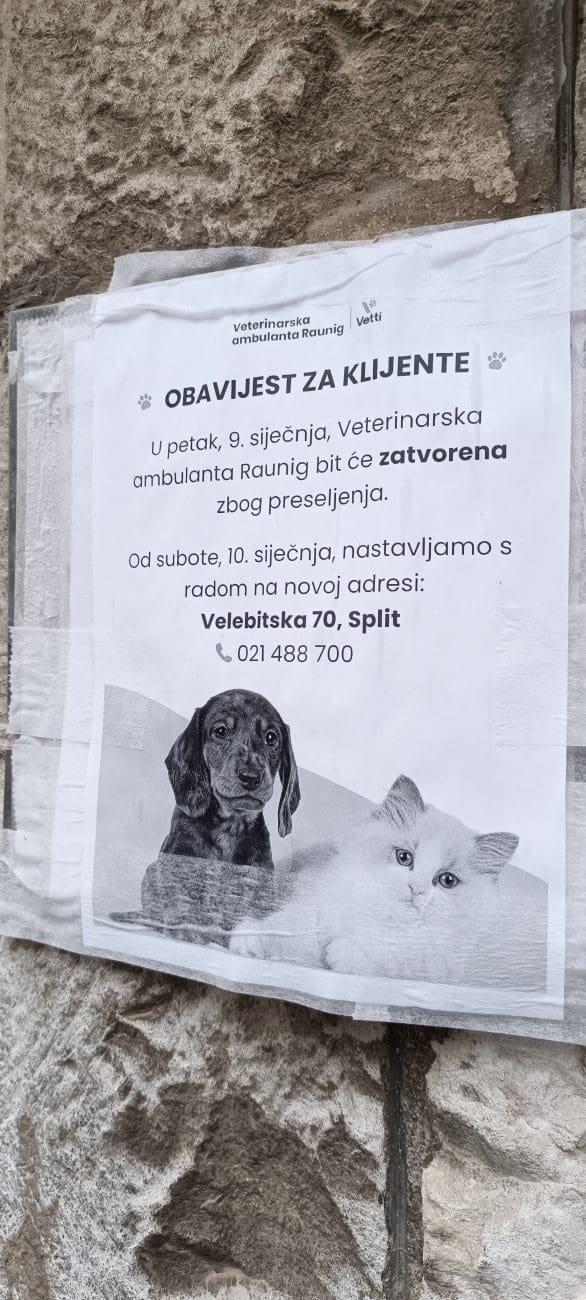 Nakon više od dva desetljeća, zatvorila je veterinarska ordinacija omiljenog splitskog doktora za mačke i pse, ali i sve ostale male kućne ljubimce: nema više Vanda Rauniga na dobro poznatom mjestu, kantunu Rooseveltove ulice na Bačvicama! I odmah da pojasnimo, ne, nije se dogodilo ništa strašno, ne morate brinuti, nastavlja jedan od prvih splitskih veterinara s poslom, ali na drugoj adresi. A iza svega, raspitali smo se, stoji veliko ‘preslagivanje’ ordinacija za medicinsku skrb kućnih ljubimaca. Baš veliko, jer u Split su stigli veliki igrači i ‘okrupnili’ ovaj vid usluge za naše sugrađane i njihove ljubimce. Nekima će to biti drago, nekima ne baš pravo, ali tako je – kako je.