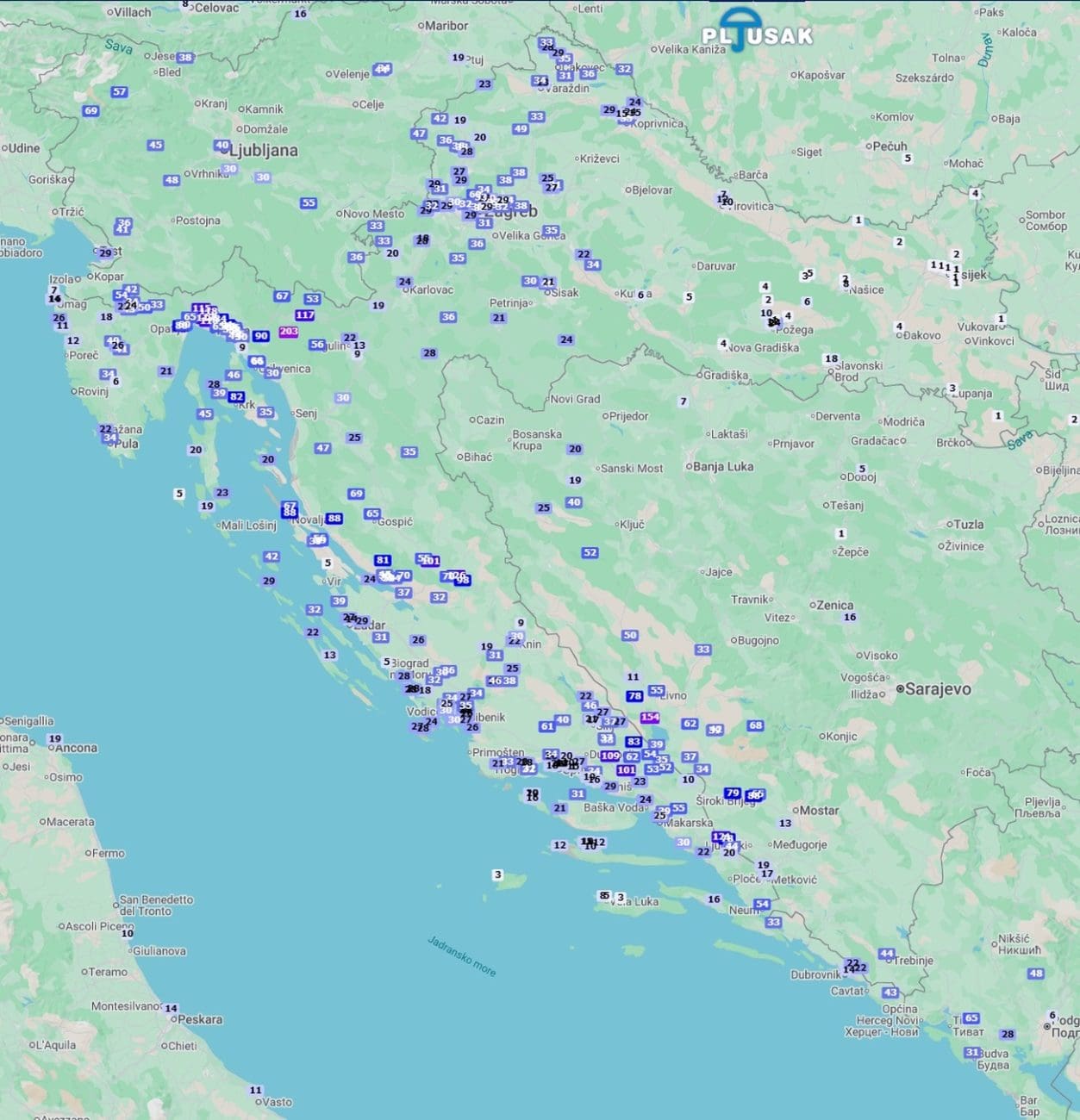 Prema aktualnoj radarskoj snimci oborina, hladna fronta se u vrijeme pisanja teksta nalazila na relaciji trogirsko zaleđe - Čiovo. Primjerice, postaja Nisko u Zagori primila je čak 24 litre kiše po metru kvadratnom u samo sat vremena, a Čiovo 21 litru. Fronta se primiče kaštelanskom i splitskom području gdje već pada kiša, pa bi su jačanjem oborina izgledne i mjestimice bujice zbog veće količine oborina u kratko vrijeme.