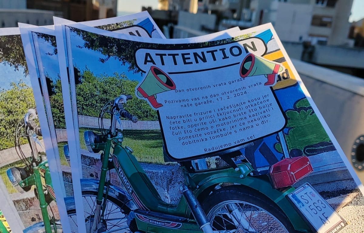 "Pozivamo vas na dan otvorenih vrata naše garaže. Napravite frizure i začešljajte kosu jer ćete biti u prilici škljocnuti otkačene fotke, operite uši kako biste što bolje čili što ćemo motorinima kazivati i ponesite vozačke, jer će nekoliko dobitnika tombule s nama u đir. Radujemo vam se!", najavili je vesela splitska ekipa.