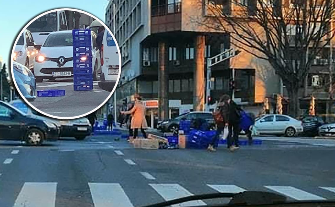 Naime, uslijed još nepoznatih okolnosti, s jednog kamiona na cestu je palo dvadesetak gajbi. Kao su se one rasule po kolniku, promet je prolazno bio usporen.