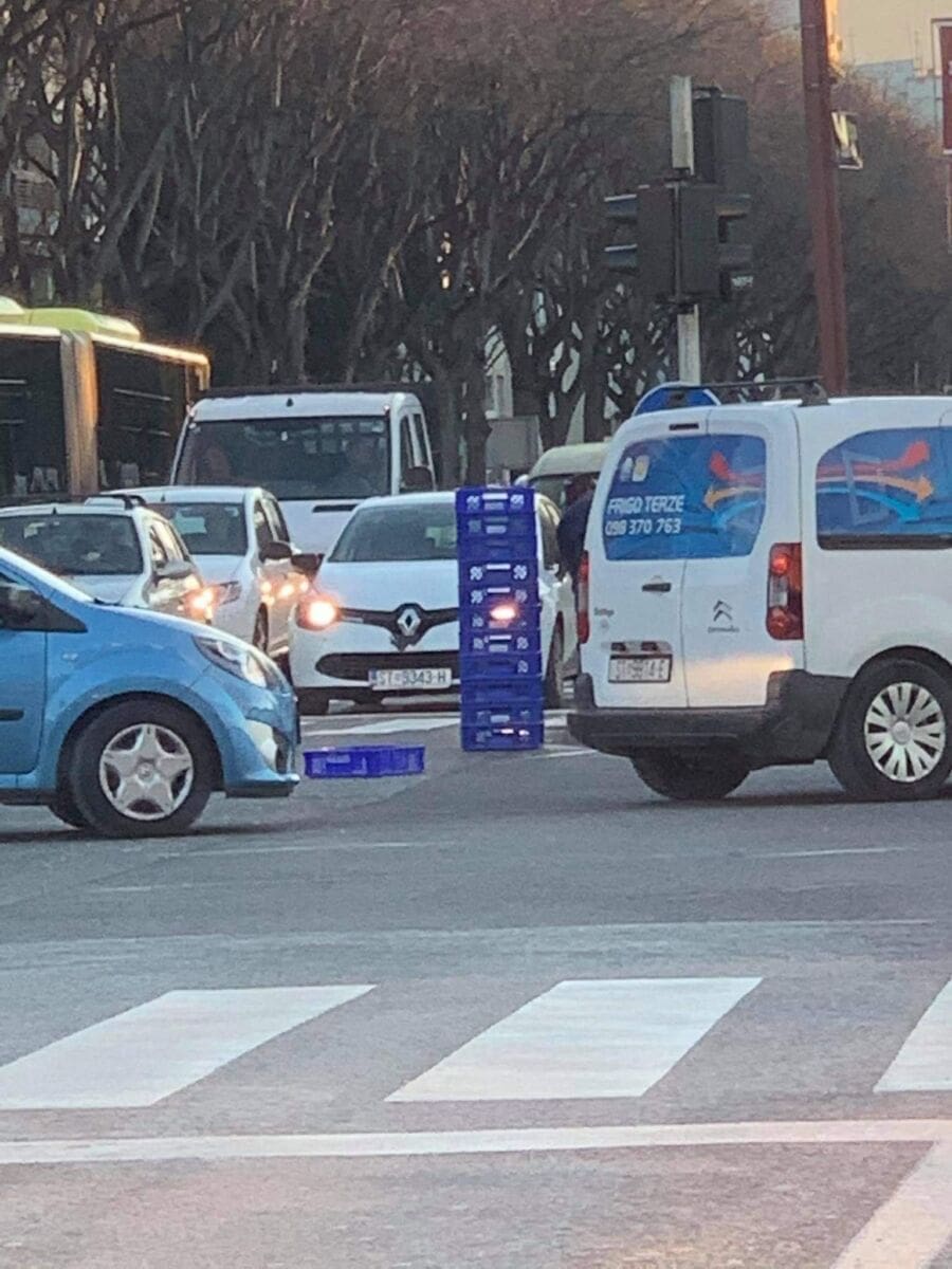 Naime, uslijed još nepoznatih okolnosti, s jednog kamiona na cestu je palo dvadesetak gajbi. Kao su se one rasule po kolniku, promet je prolazno bio usporen.