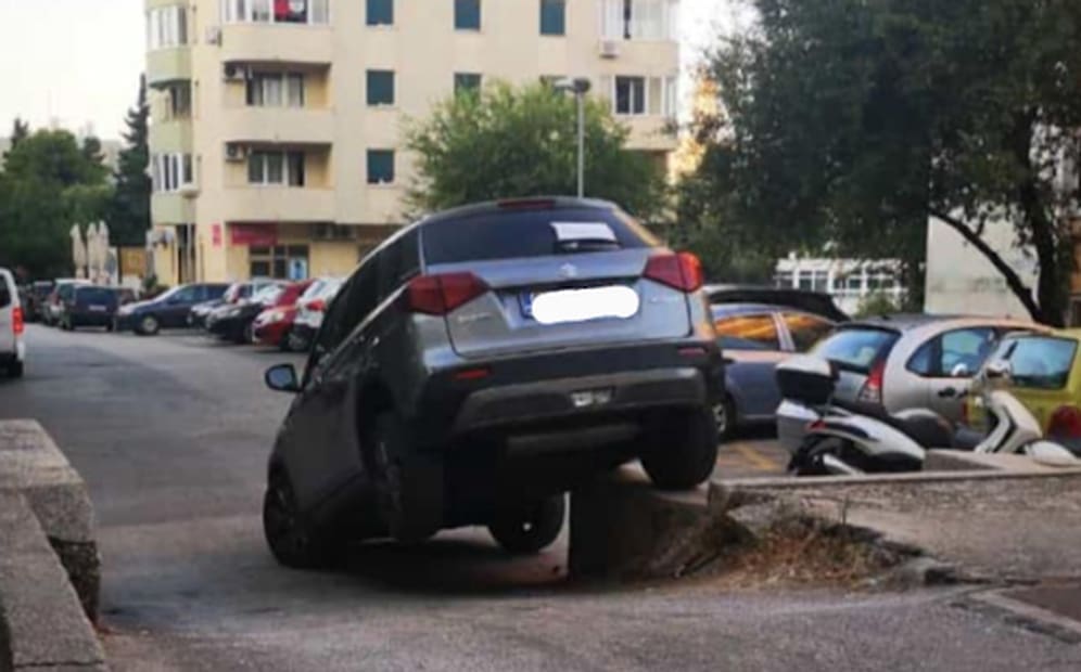 Neobična prometna nesreća dogodila se na splitskim Plokitama u Slavonskoj ulici. Kako je vidljivo na fotografiji, vozilo je iz nepoznatog razloga 'zapelo' na stepenicama.