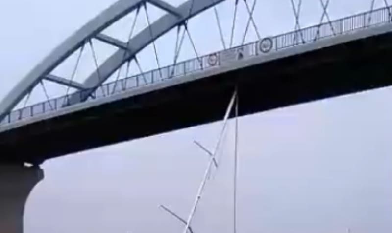 Kako se može vidjeti na snimci, jedrilica je zapela jarbolom za most koji povezuje dva otoka, a 'talentirani' kapetan se uspio nekako izvući.