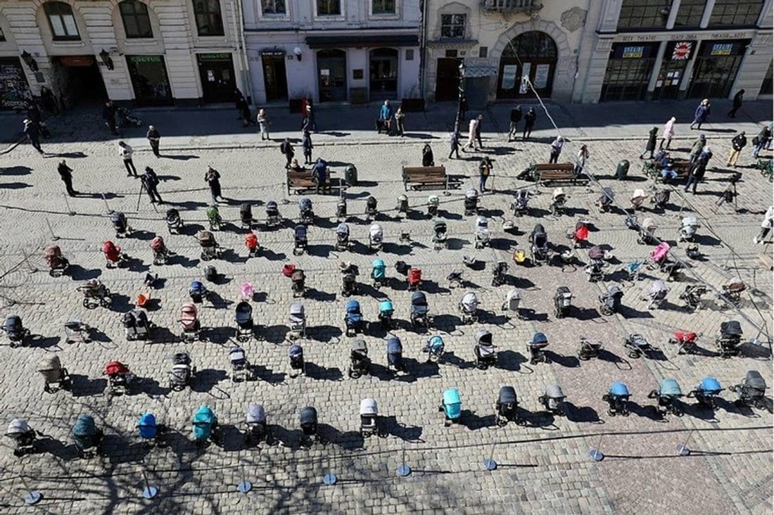 Empty prams on Rynok Square today symbolize the lives of little angels. They are now defending Ukraine’sky instead of decisive actions of the world. pic.twitter.com/x4sIs8fAbh