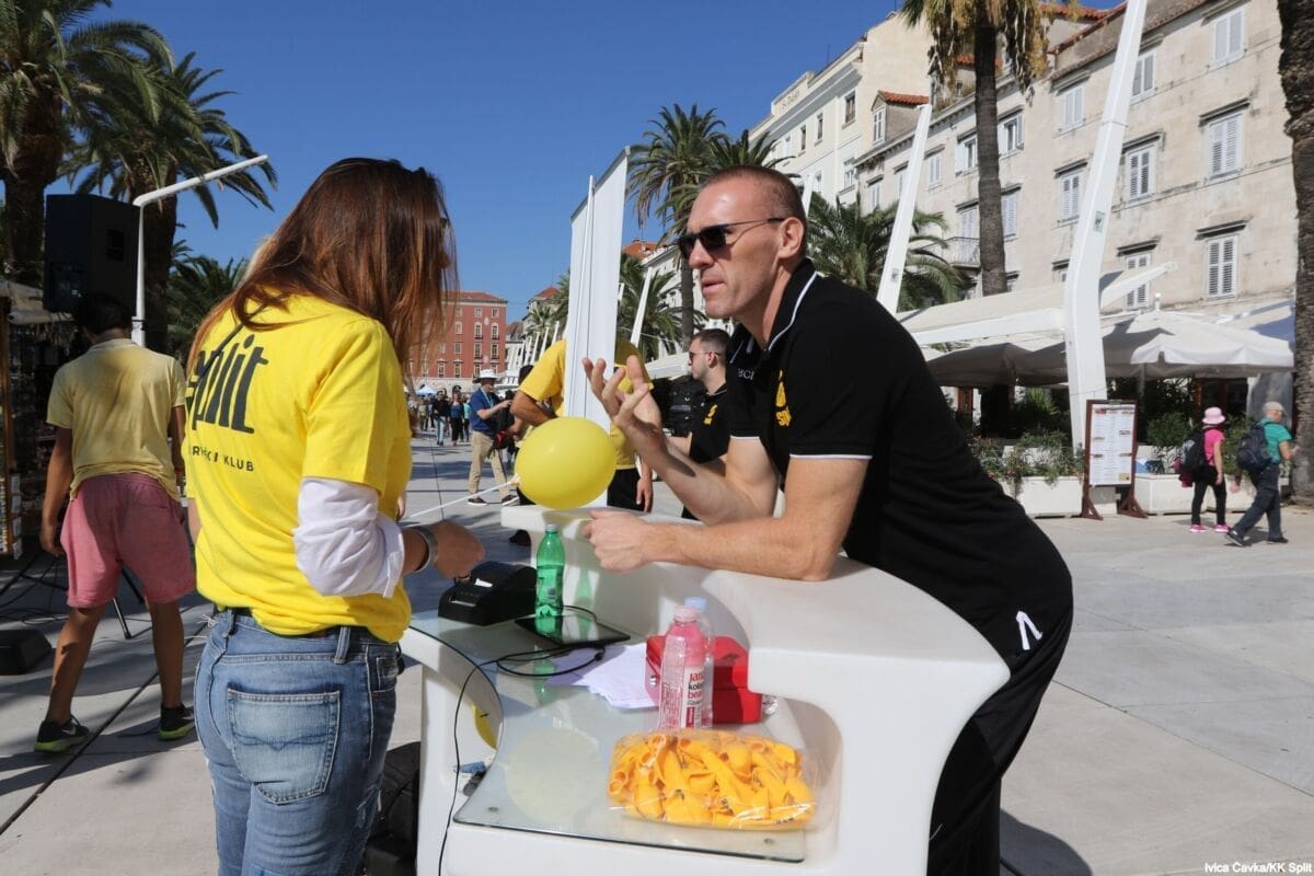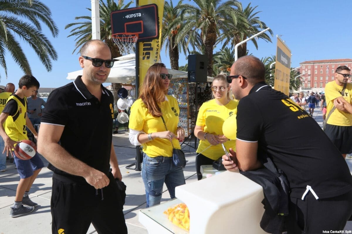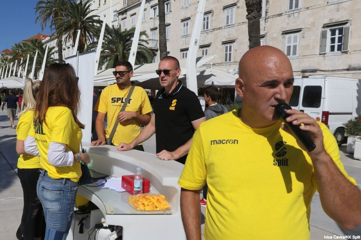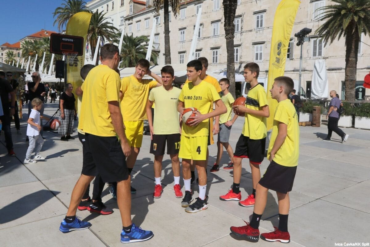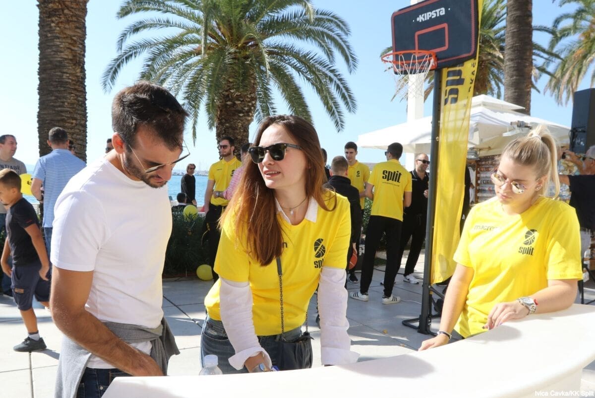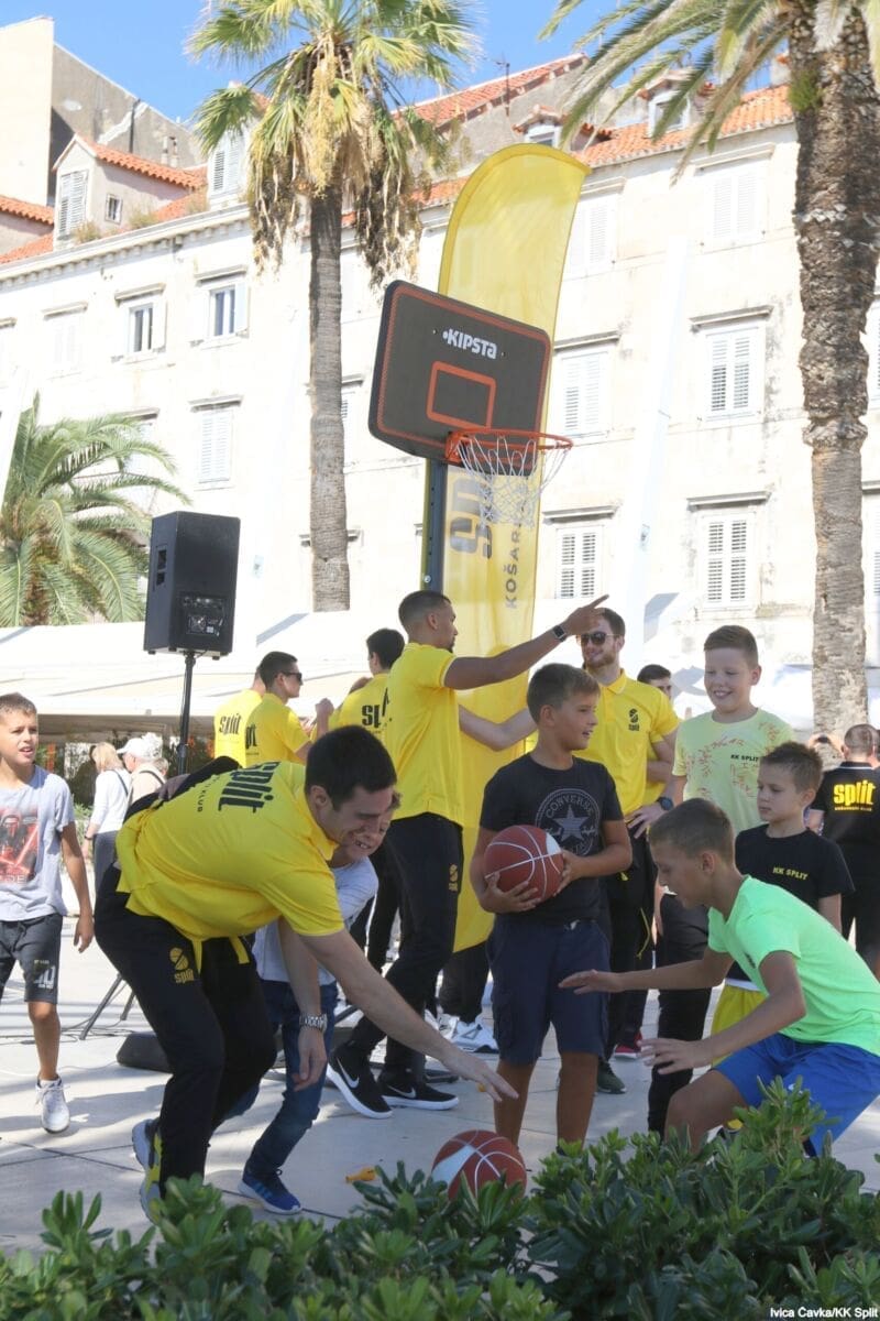 Bilo je to neobično nedjeljno jutro kada se splitska Riva žutila kao rijetko kada. S Gripa su se na promociju nove sezone i prodaju pretplata spustili prvotimci Splita, a mlađe kategorije, pod vodstvom trenera Luke Škeve, Mira Bubića i Filipa Najeva, održale su pokazne treninge.