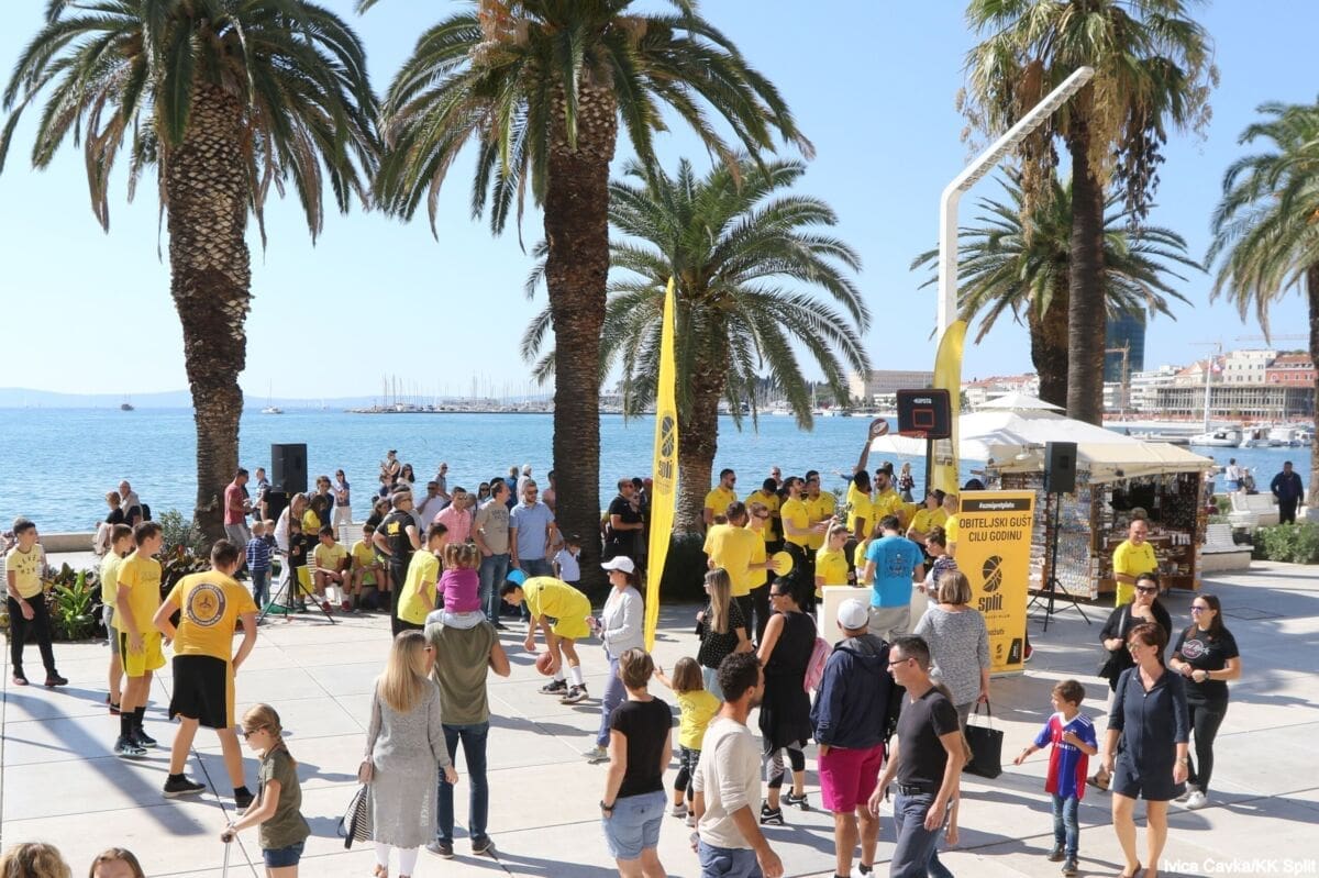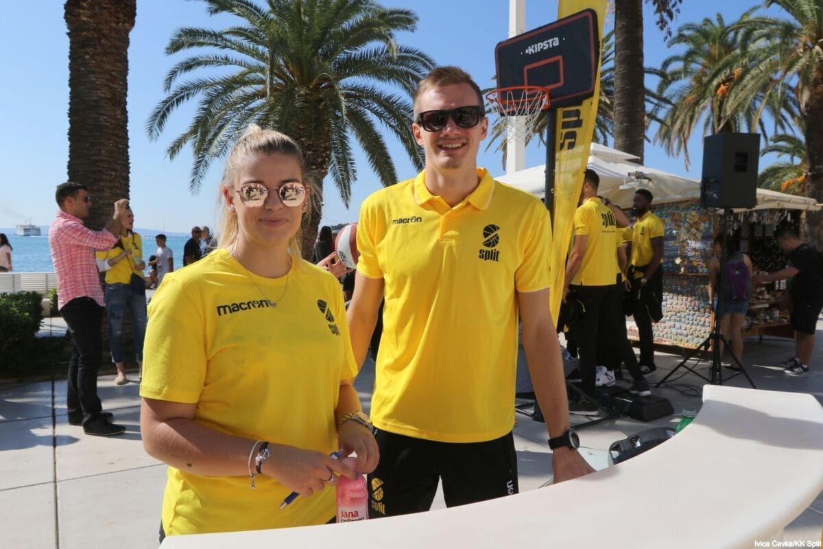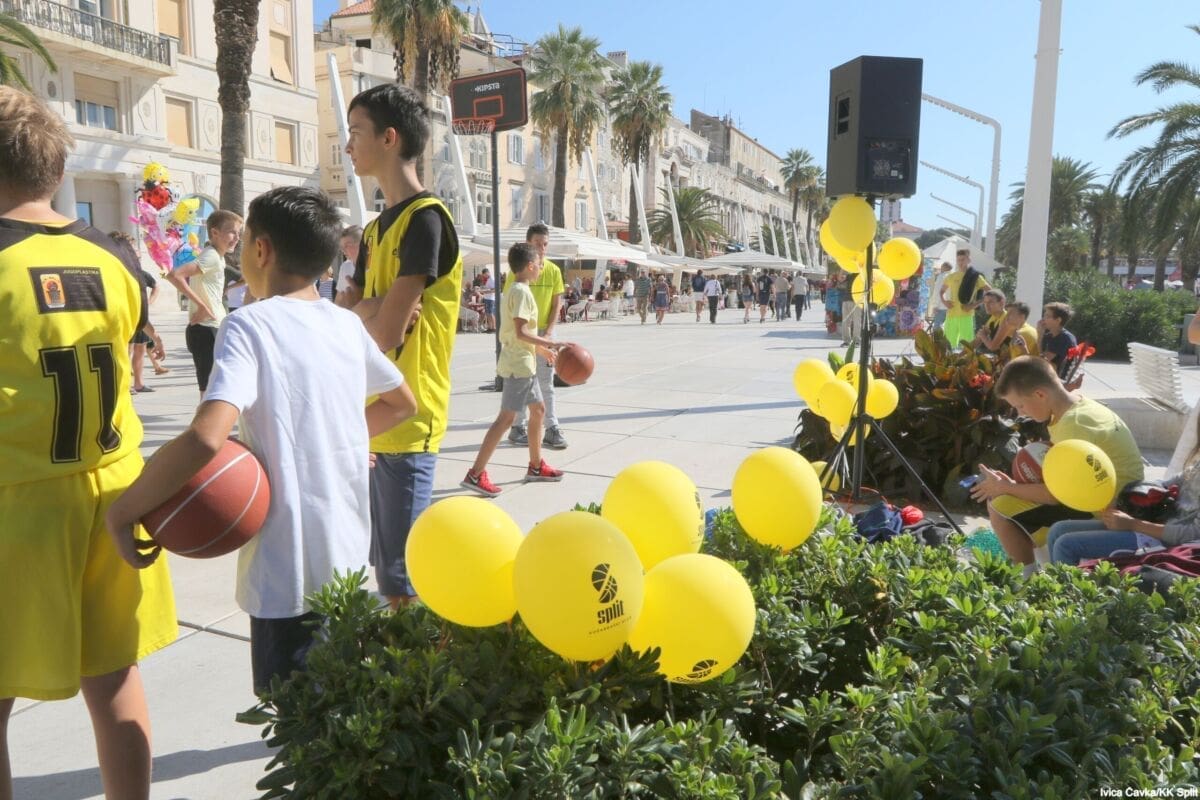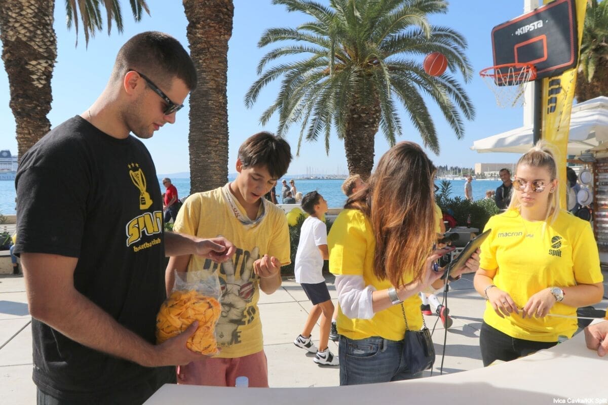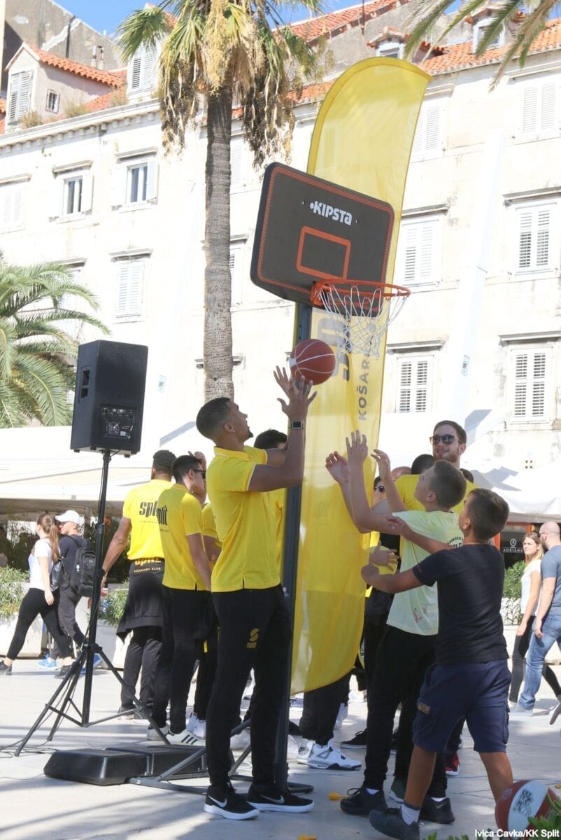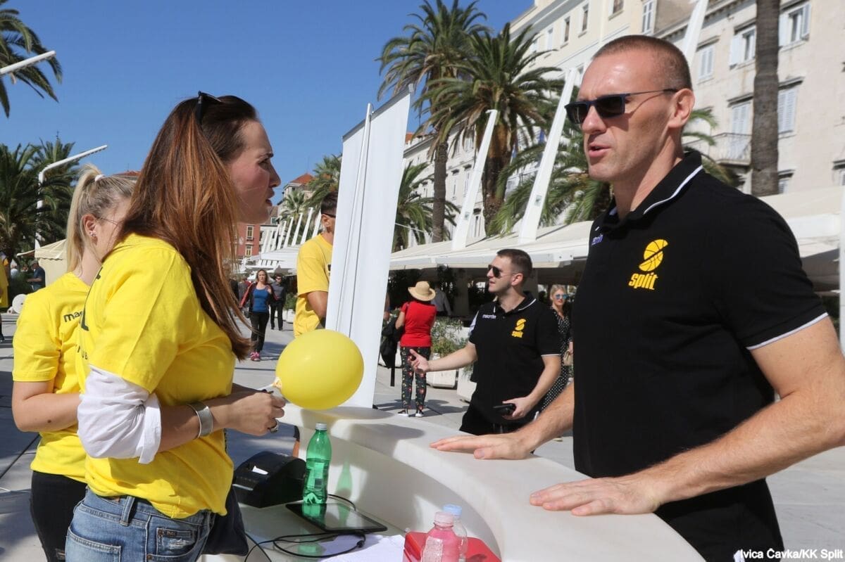 Bilo je to neobično nedjeljno jutro kada se splitska Riva žutila kao rijetko kada. S Gripa su se na promociju nove sezone i prodaju pretplata spustili prvotimci Splita, a mlađe kategorije, pod vodstvom trenera Luke Škeve, Mira Bubića i Filipa Najeva, održale su pokazne treninge.
