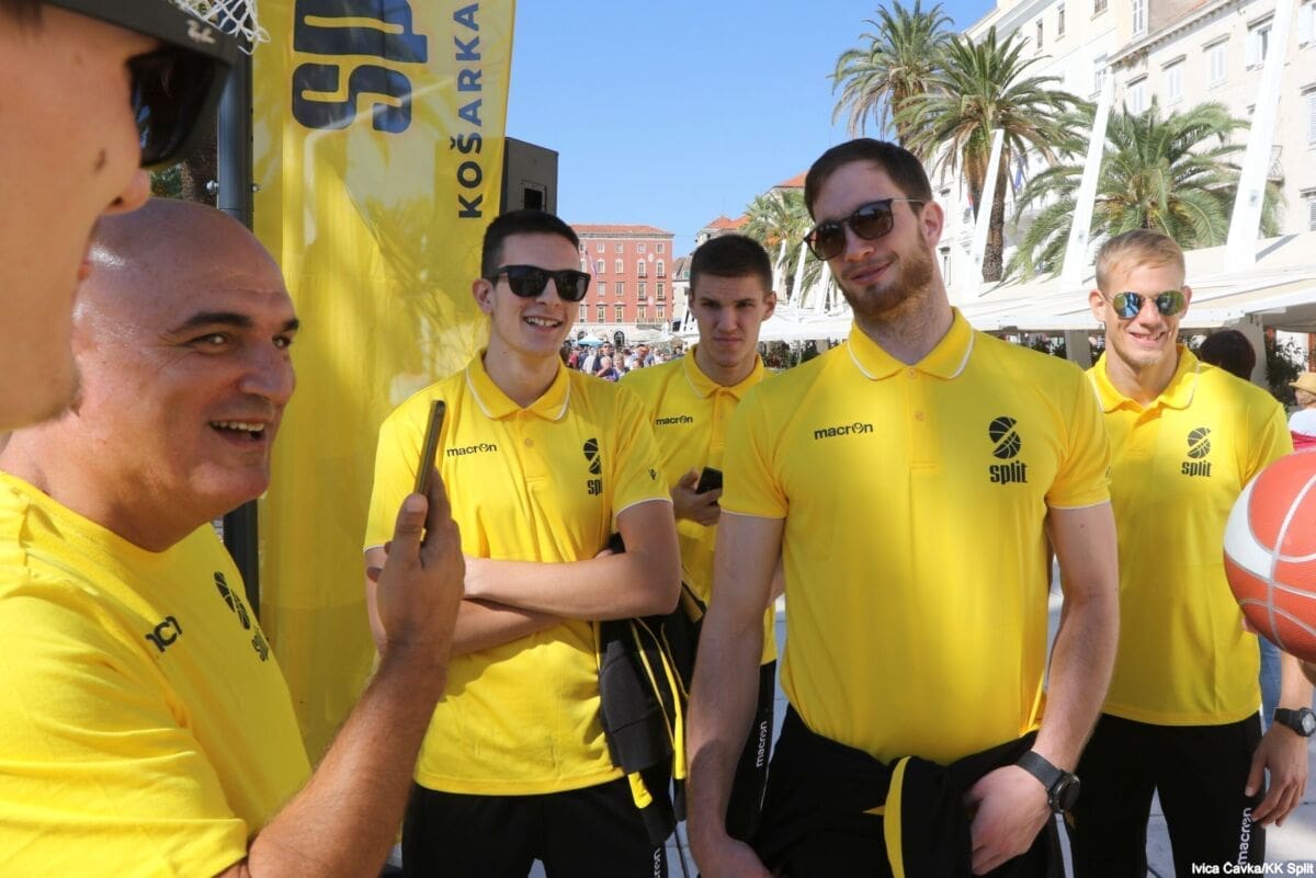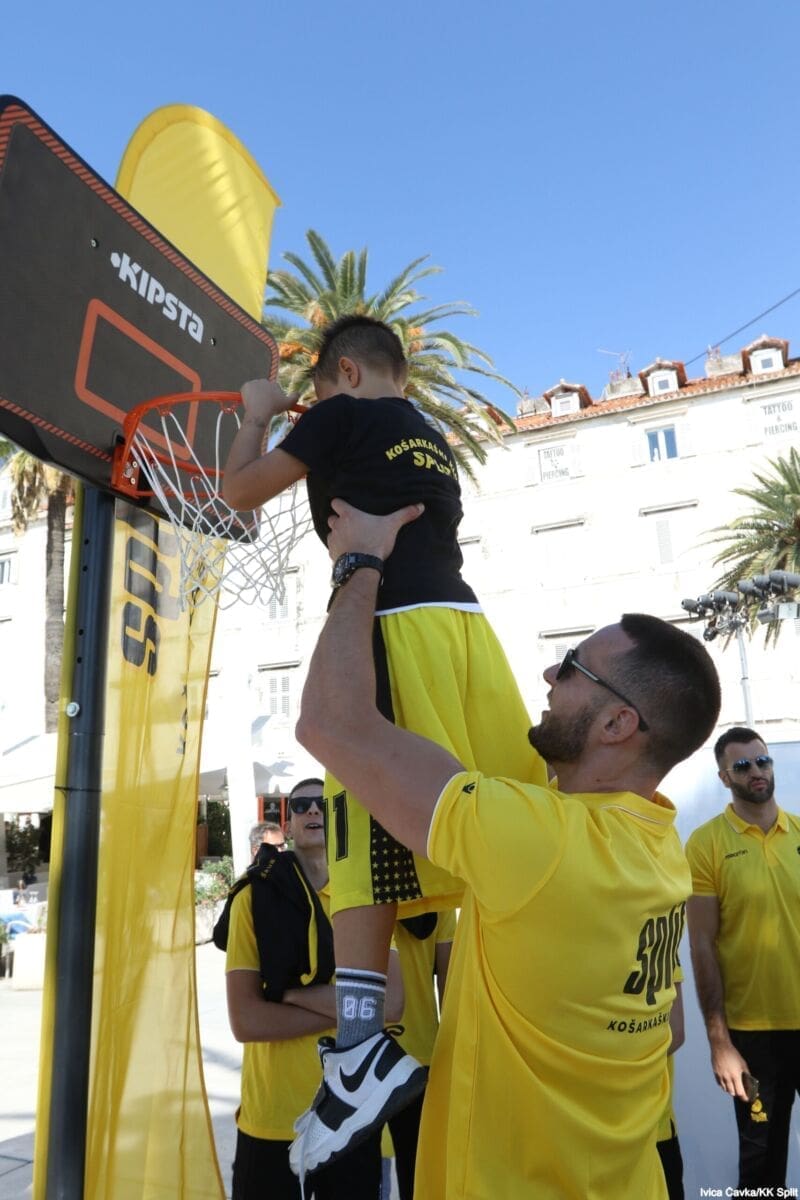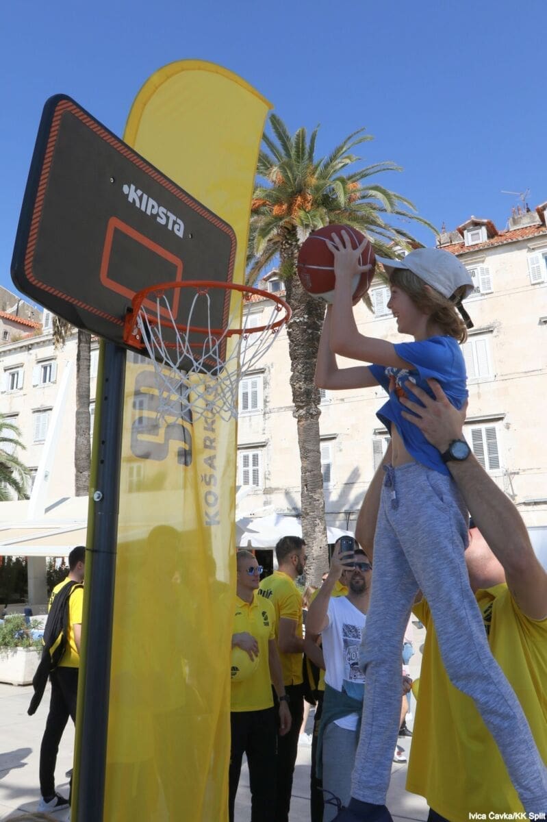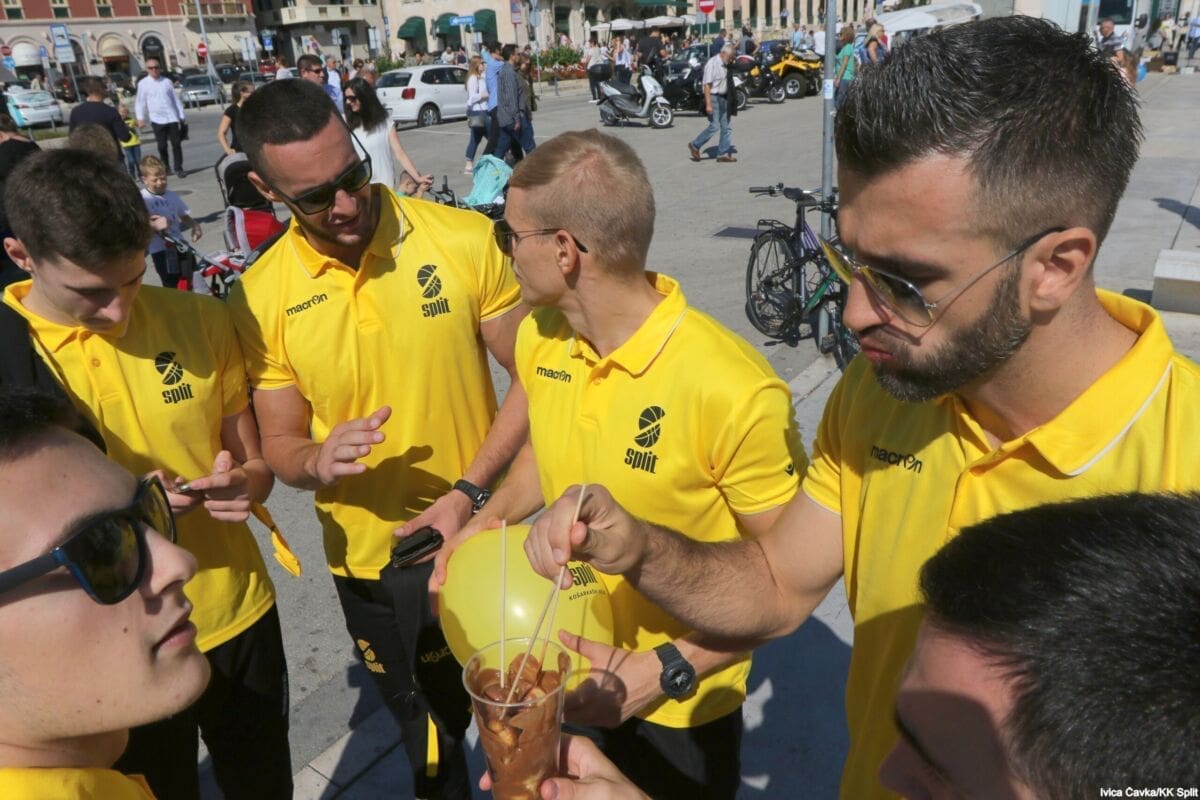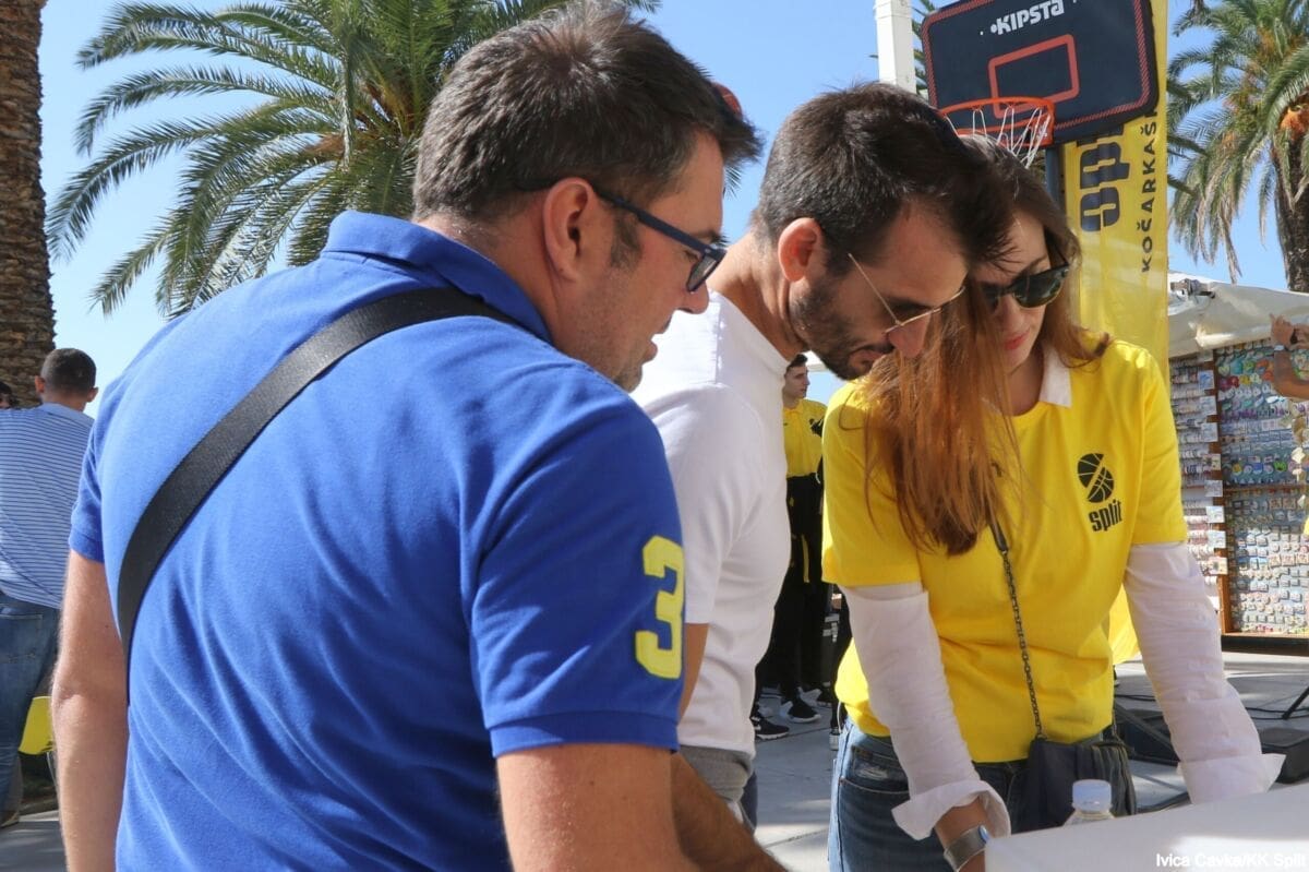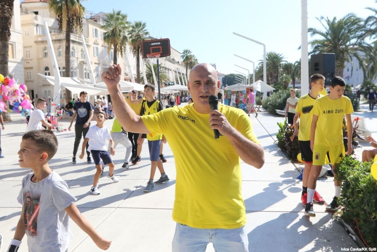 Bilo je to neobično nedjeljno jutro kada se splitska Riva žutila kao rijetko kada. S Gripa su se na promociju nove sezone i prodaju pretplata spustili prvotimci Splita, a mlađe kategorije, pod vodstvom trenera Luke Škeve, Mira Bubića i Filipa Najeva, održale su pokazne treninge.