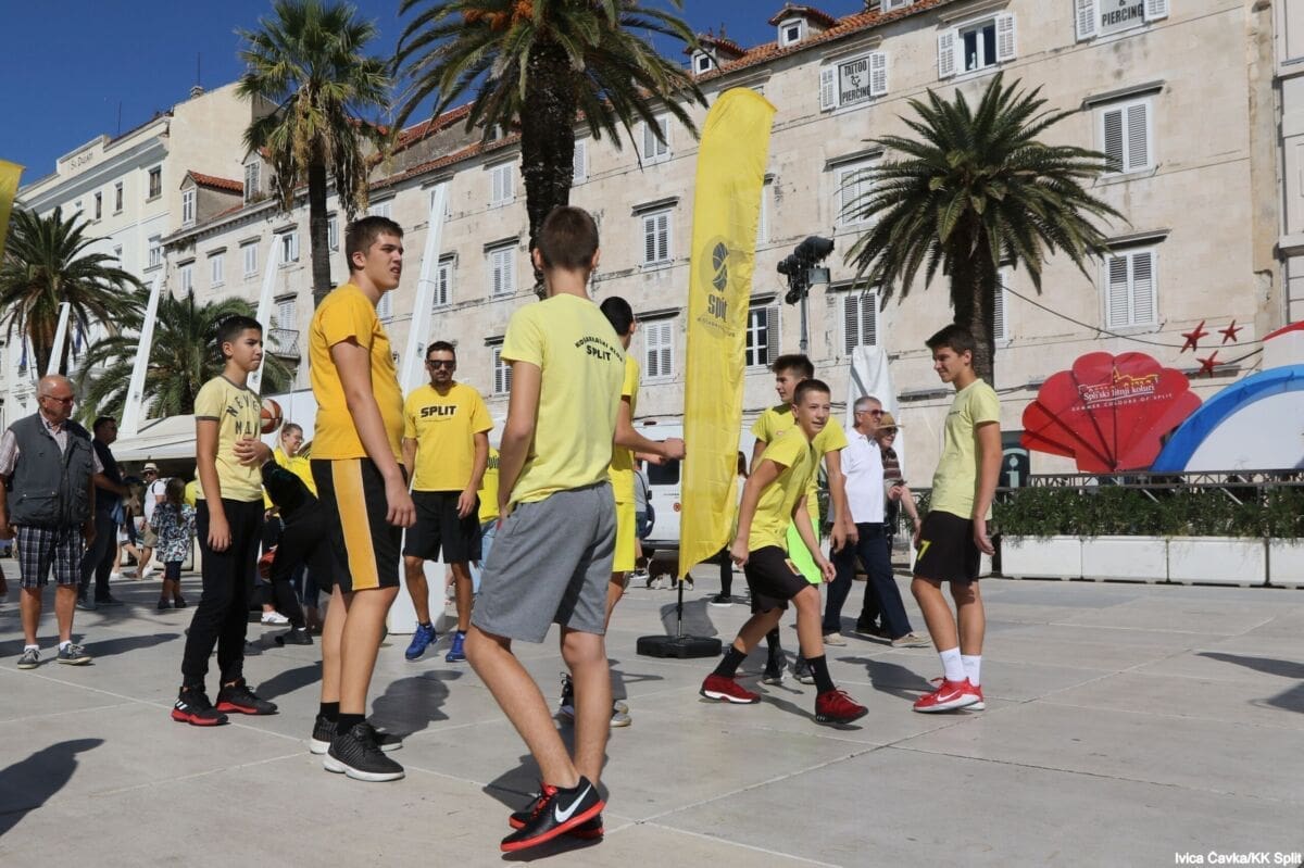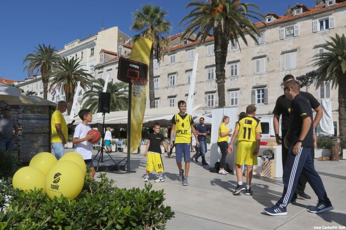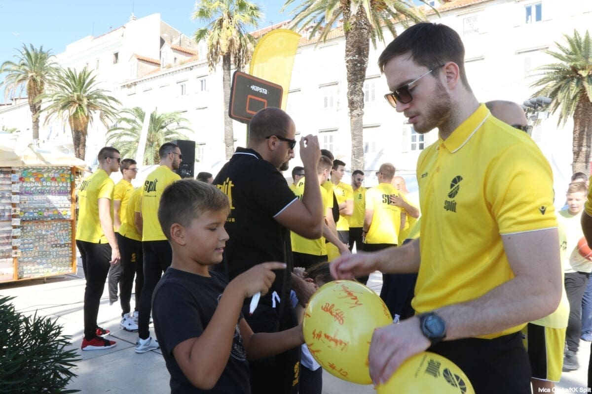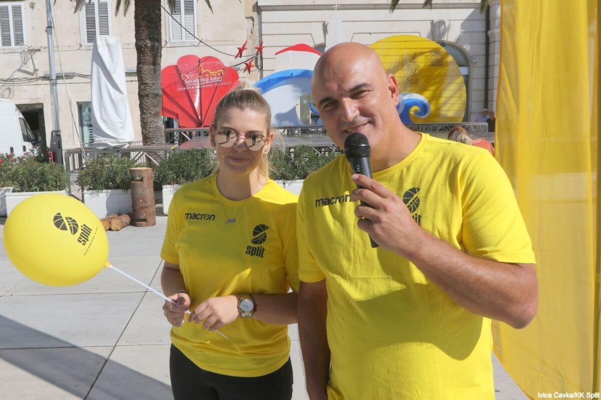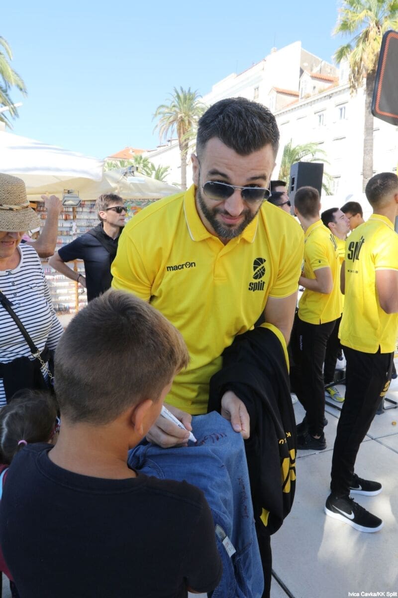 Bilo je to neobično nedjeljno jutro kada se splitska Riva žutila kao rijetko kada. S Gripa su se na promociju nove sezone i prodaju pretplata spustili prvotimci Splita, a mlađe kategorije, pod vodstvom trenera Luke Škeve, Mira Bubića i Filipa Najeva, održale su pokazne treninge.
