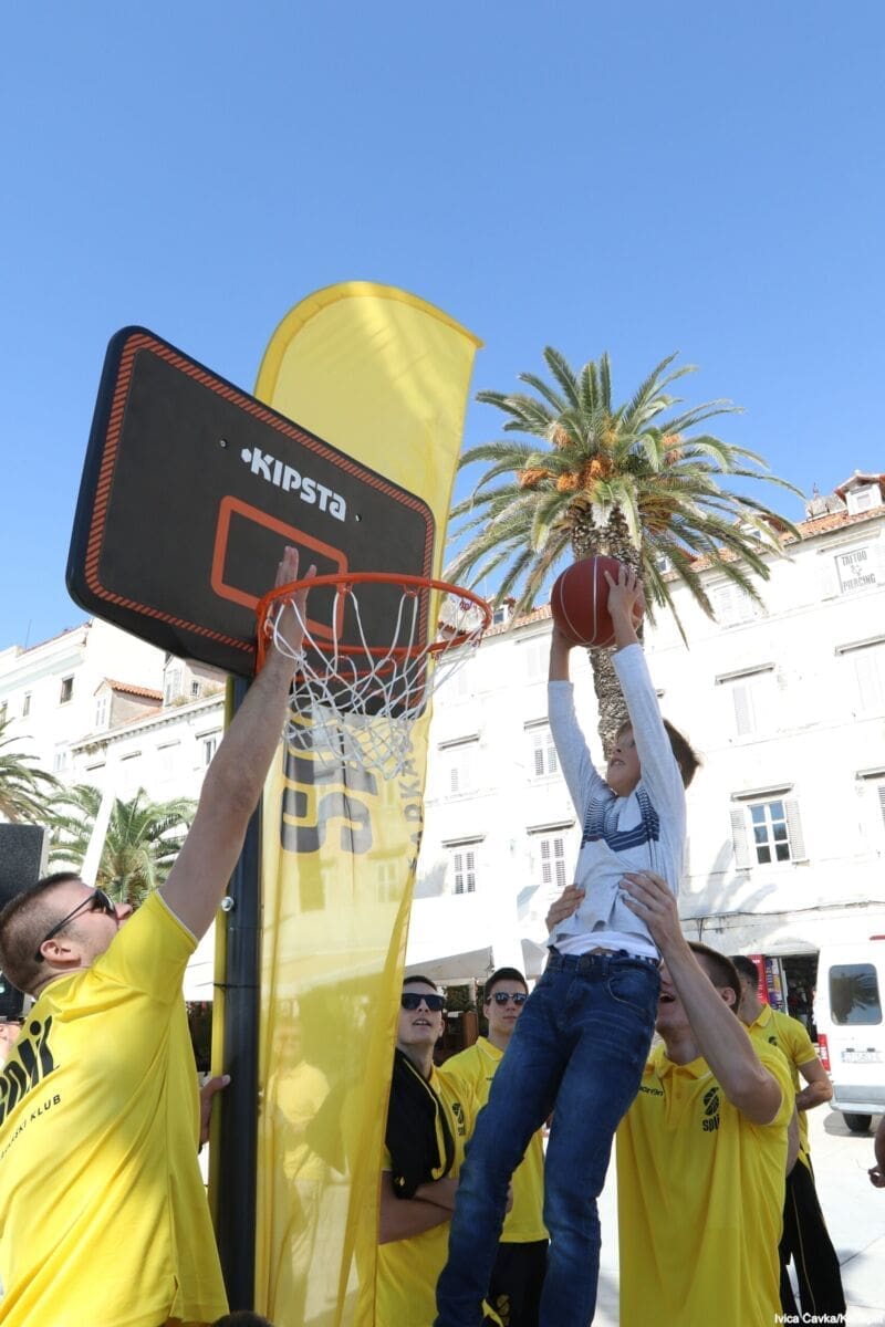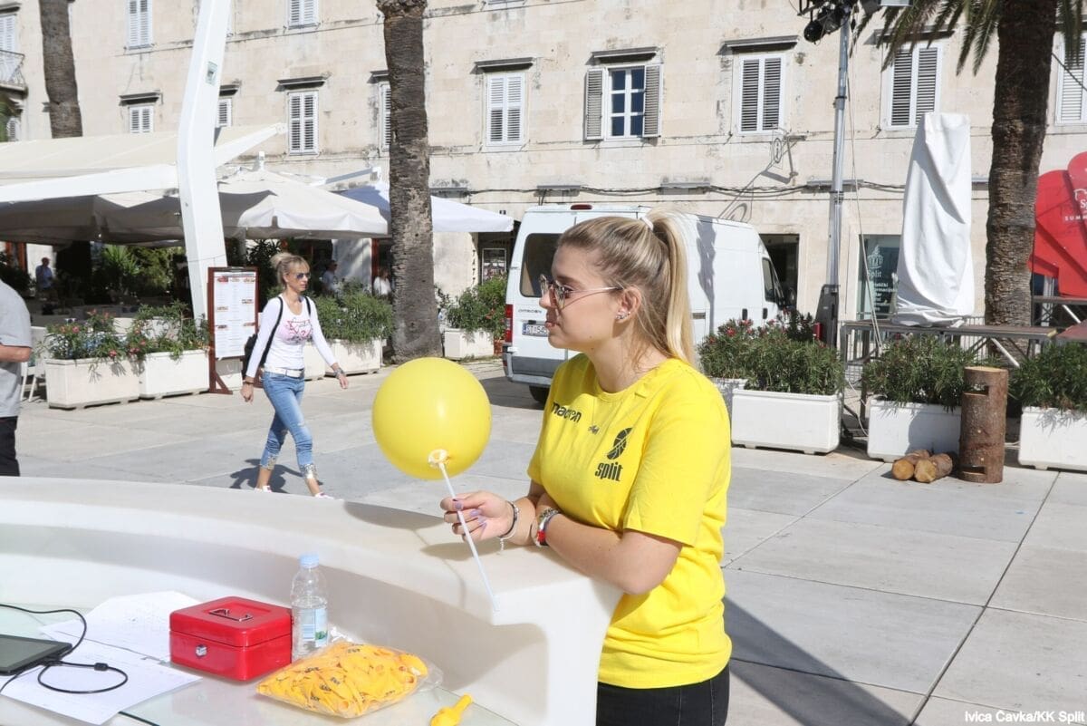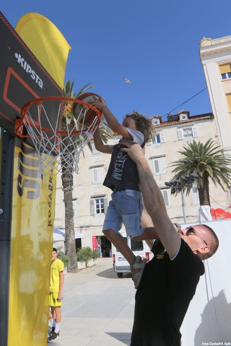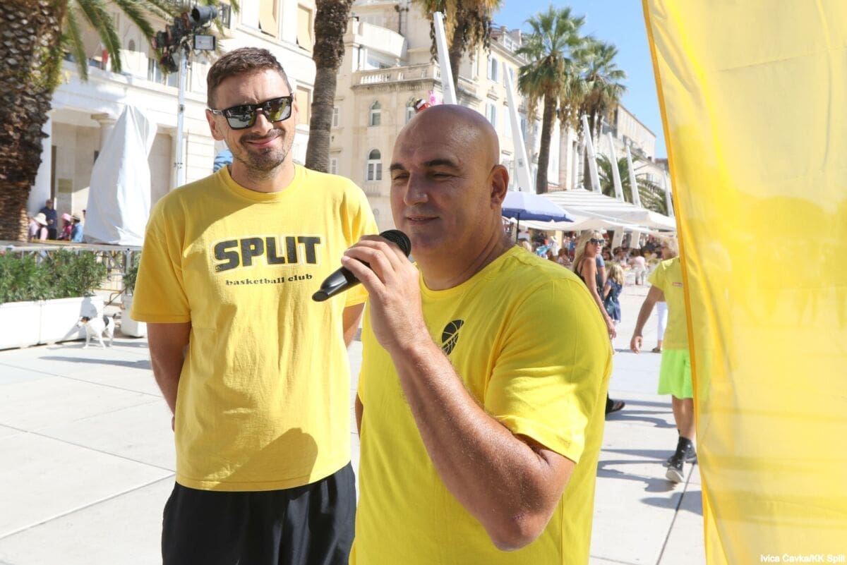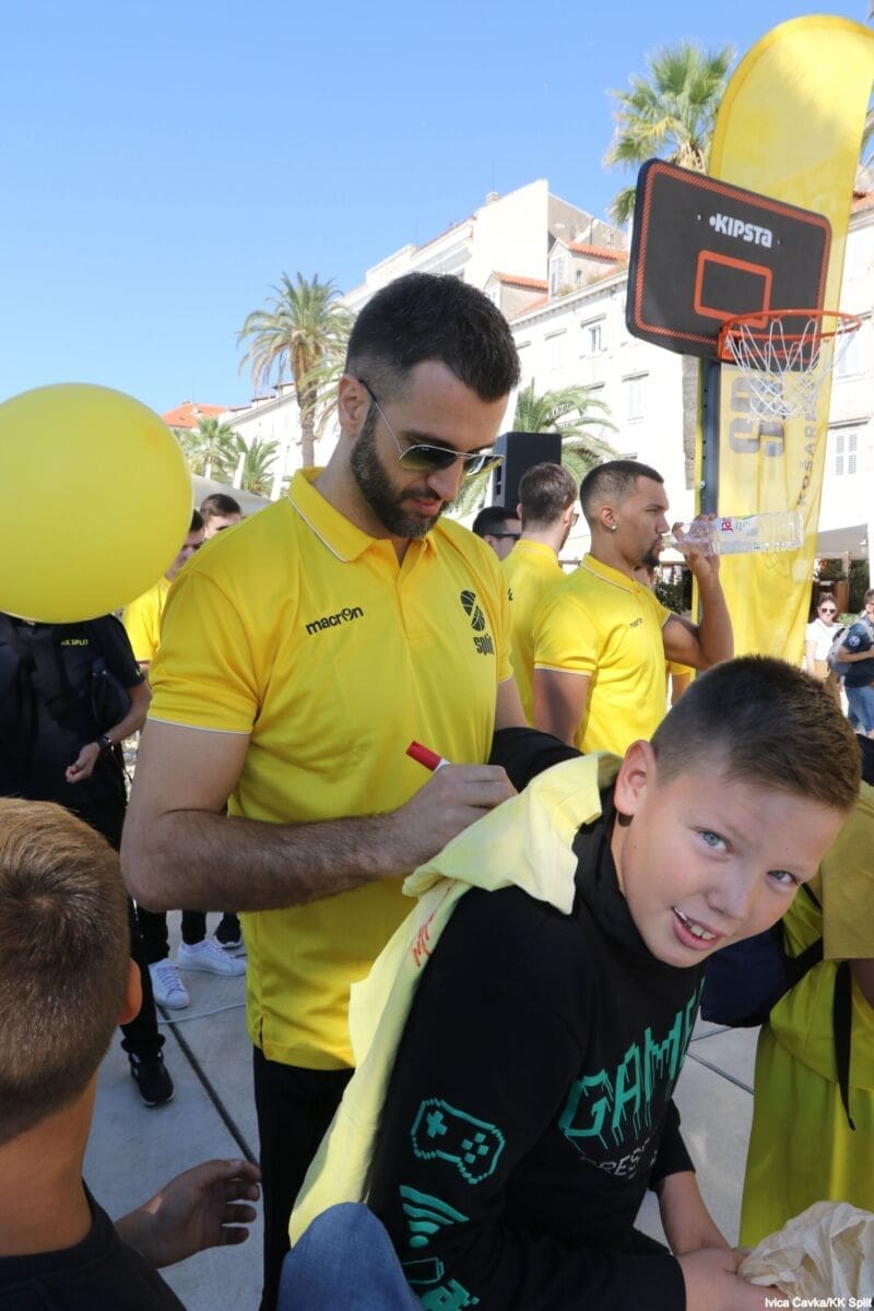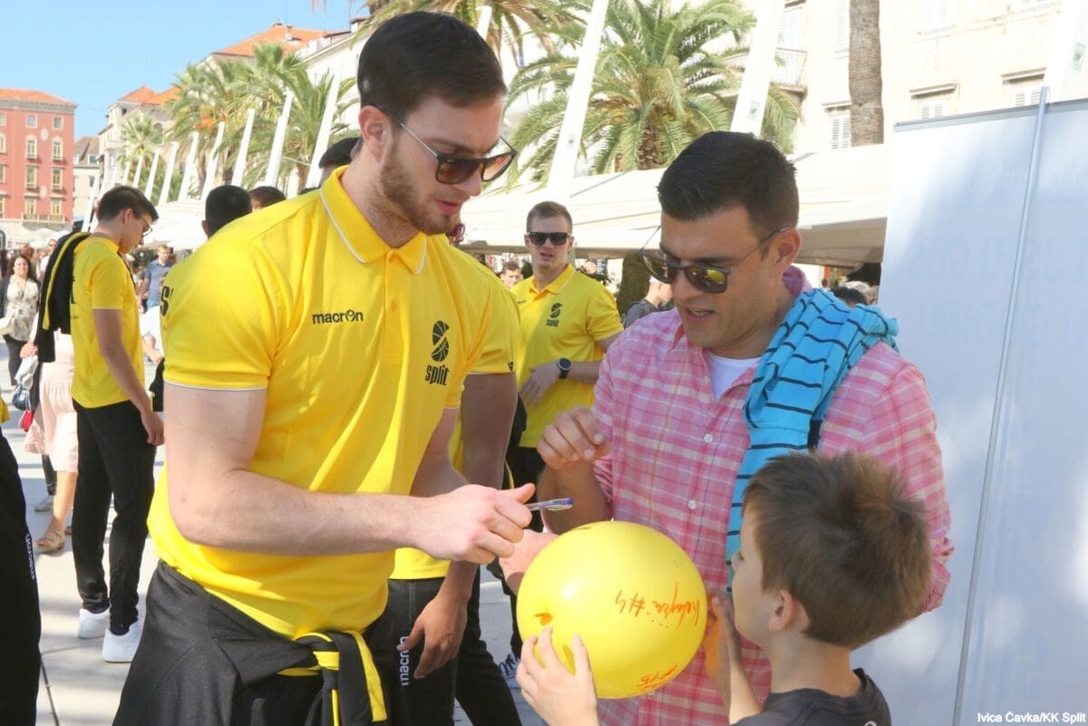Bilo je to neobično nedjeljno jutro kada se splitska Riva žutila kao rijetko kada. S Gripa su se na promociju nove sezone i prodaju pretplata spustili prvotimci Splita, a mlađe kategorije, pod vodstvom trenera Luke Škeve, Mira Bubića i Filipa Najeva, održale su pokazne treninge.