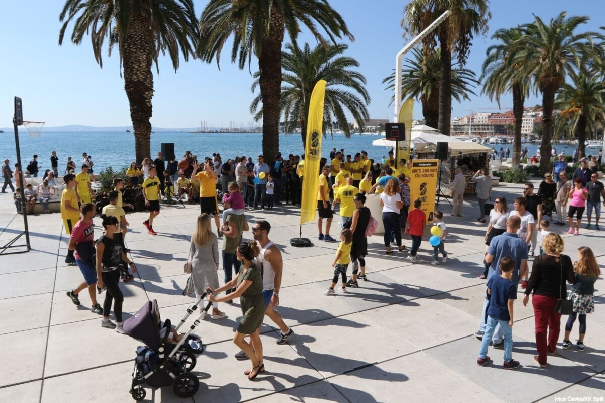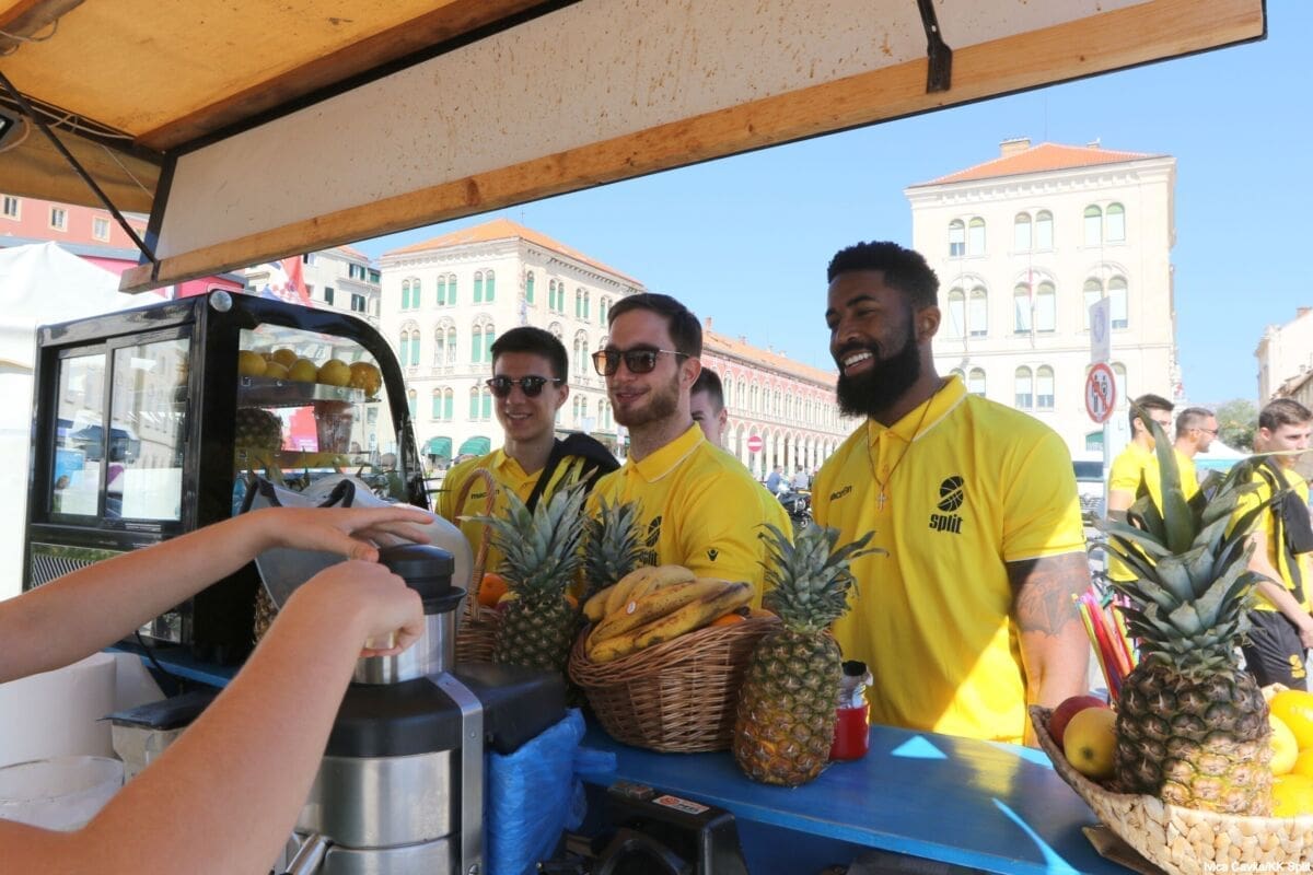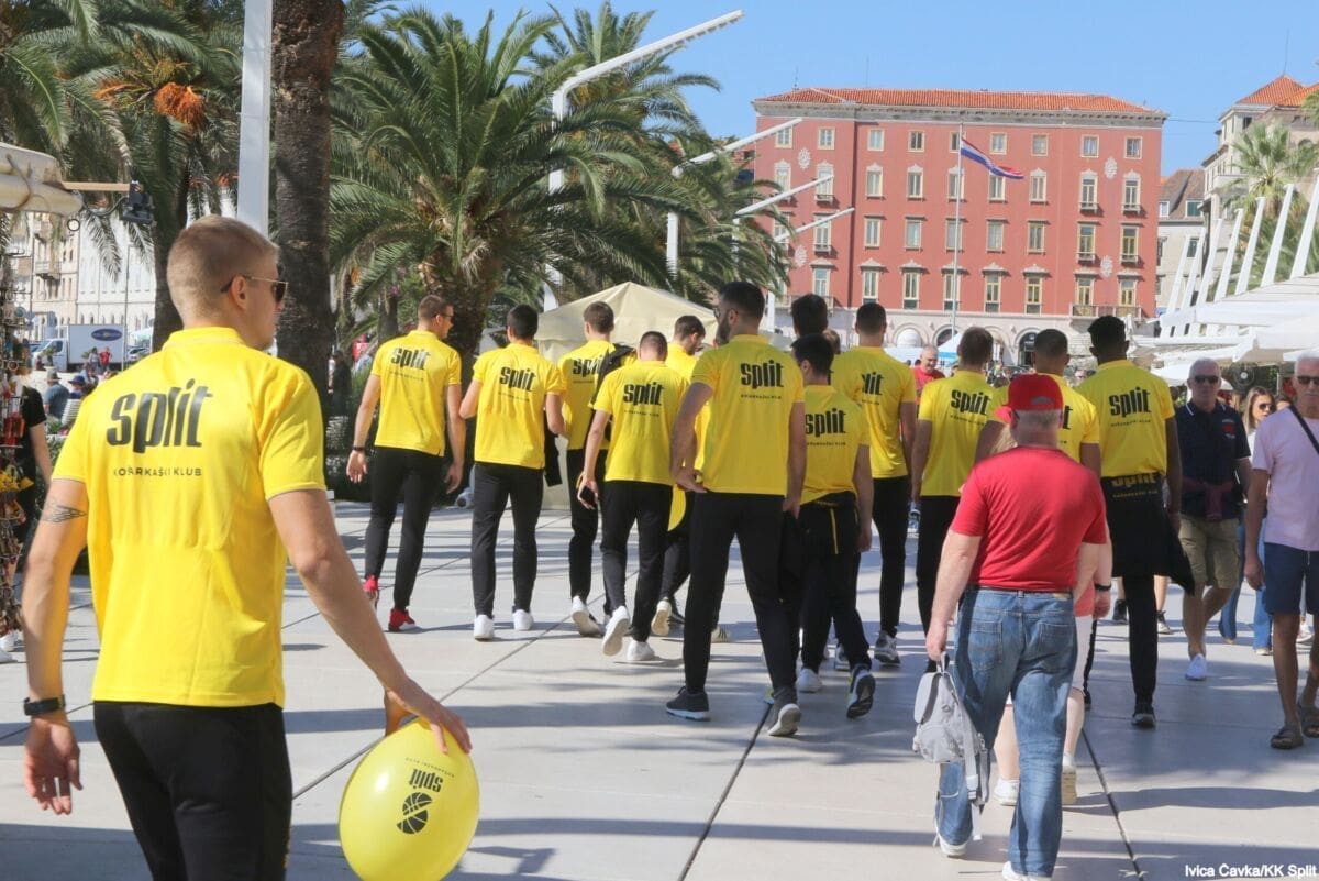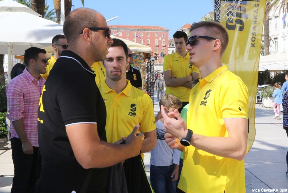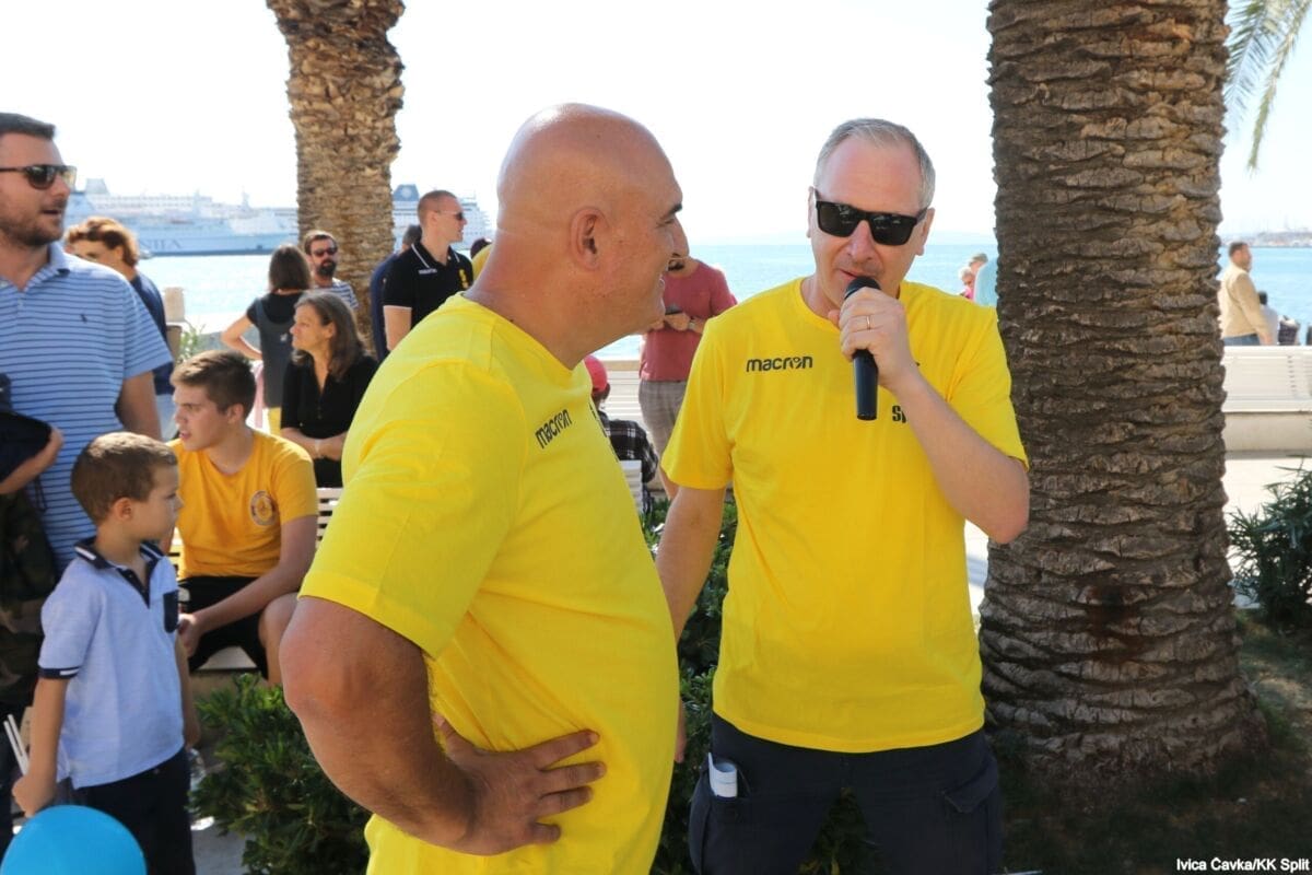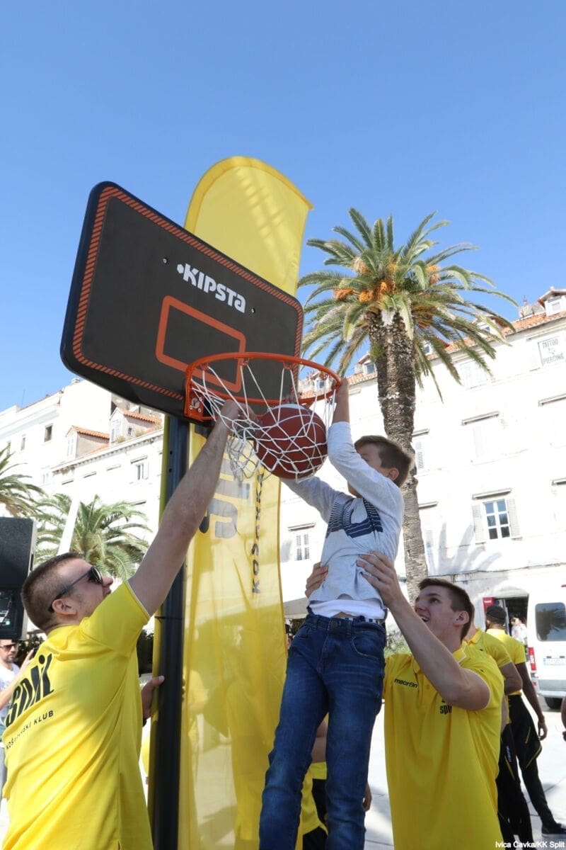 Bilo je to neobično nedjeljno jutro kada se splitska Riva žutila kao rijetko kada. S Gripa su se na promociju nove sezone i prodaju pretplata spustili prvotimci Splita, a mlađe kategorije, pod vodstvom trenera Luke Škeve, Mira Bubića i Filipa Najeva, održale su pokazne treninge.