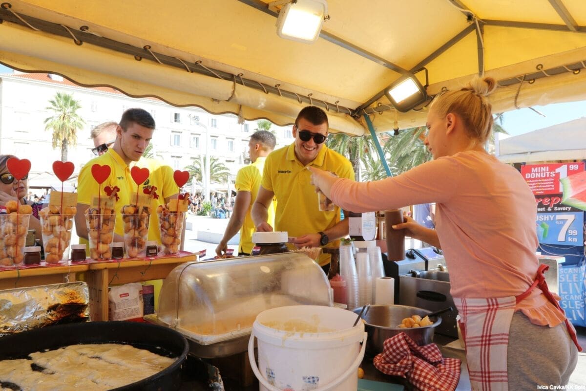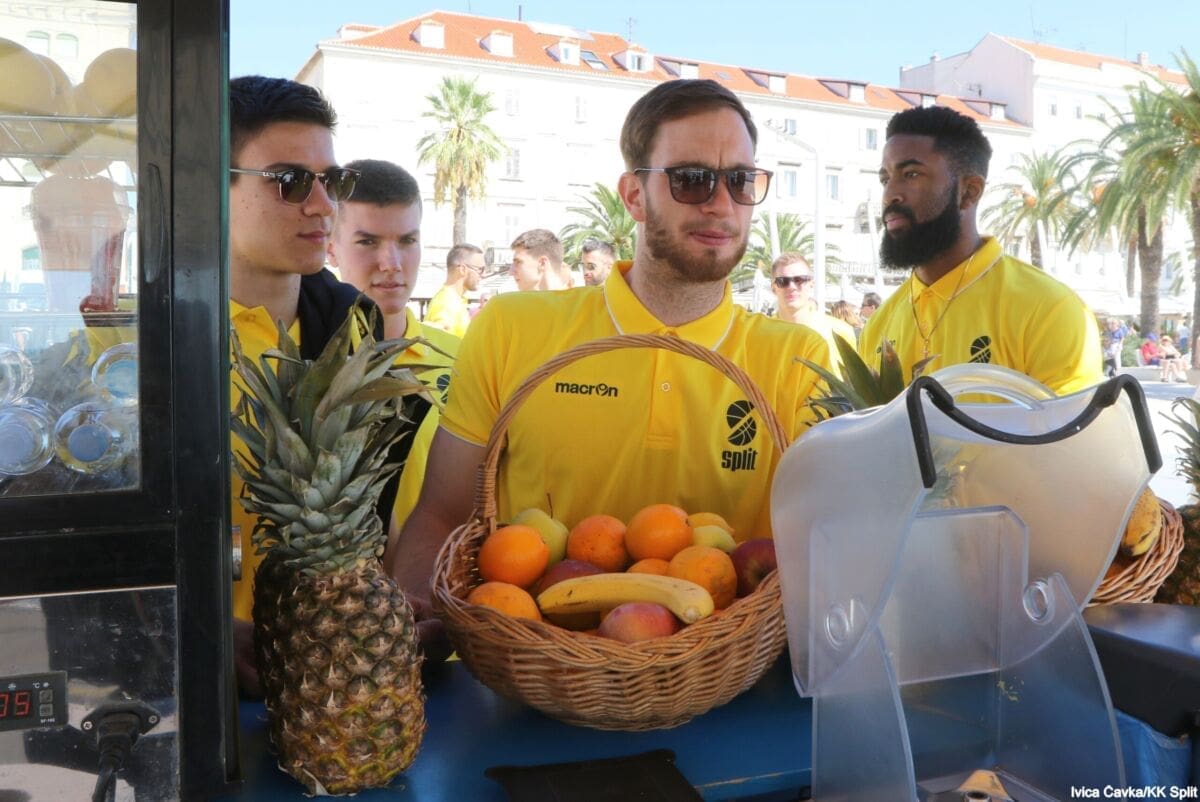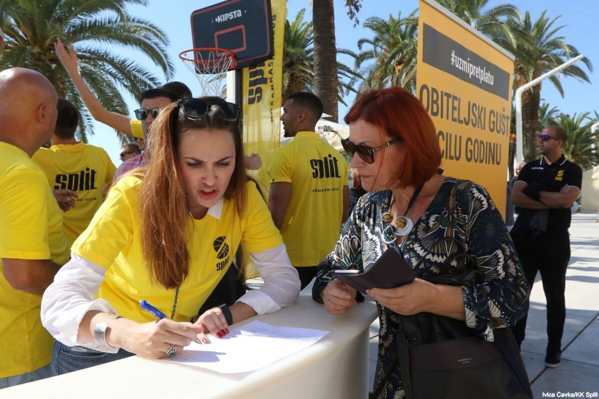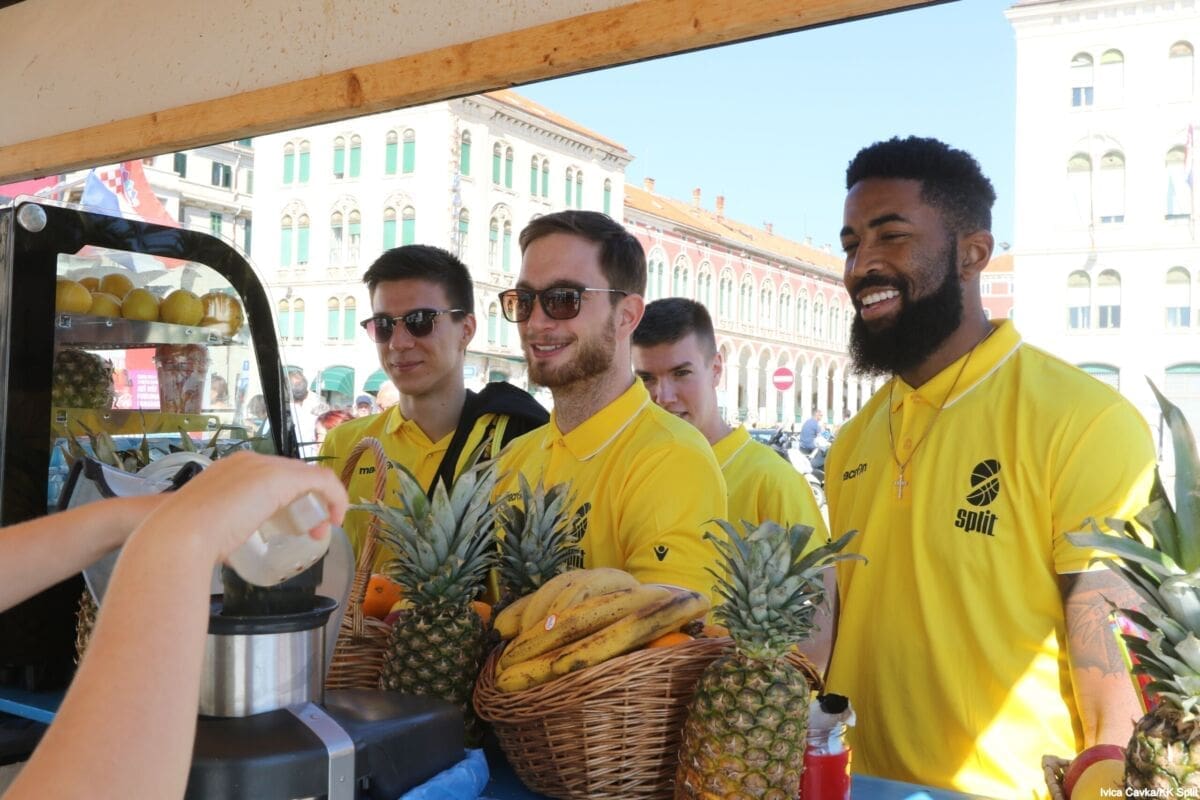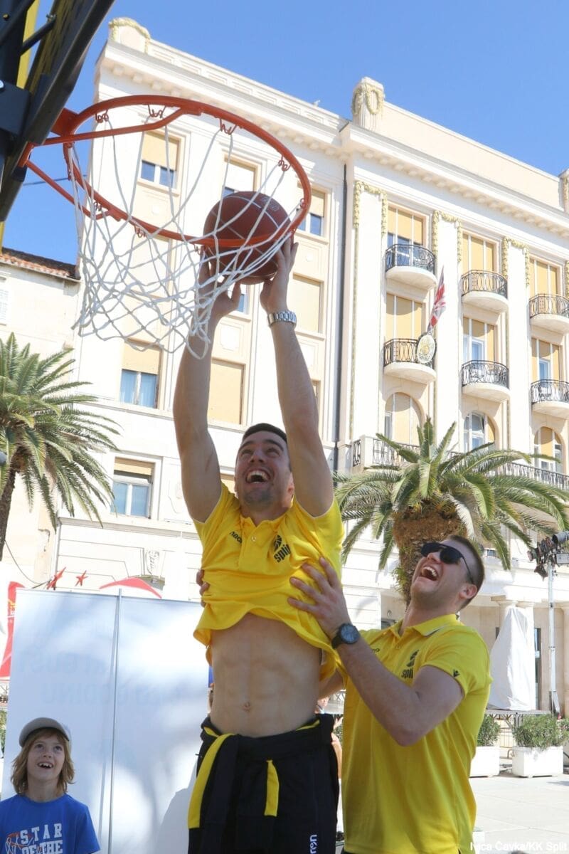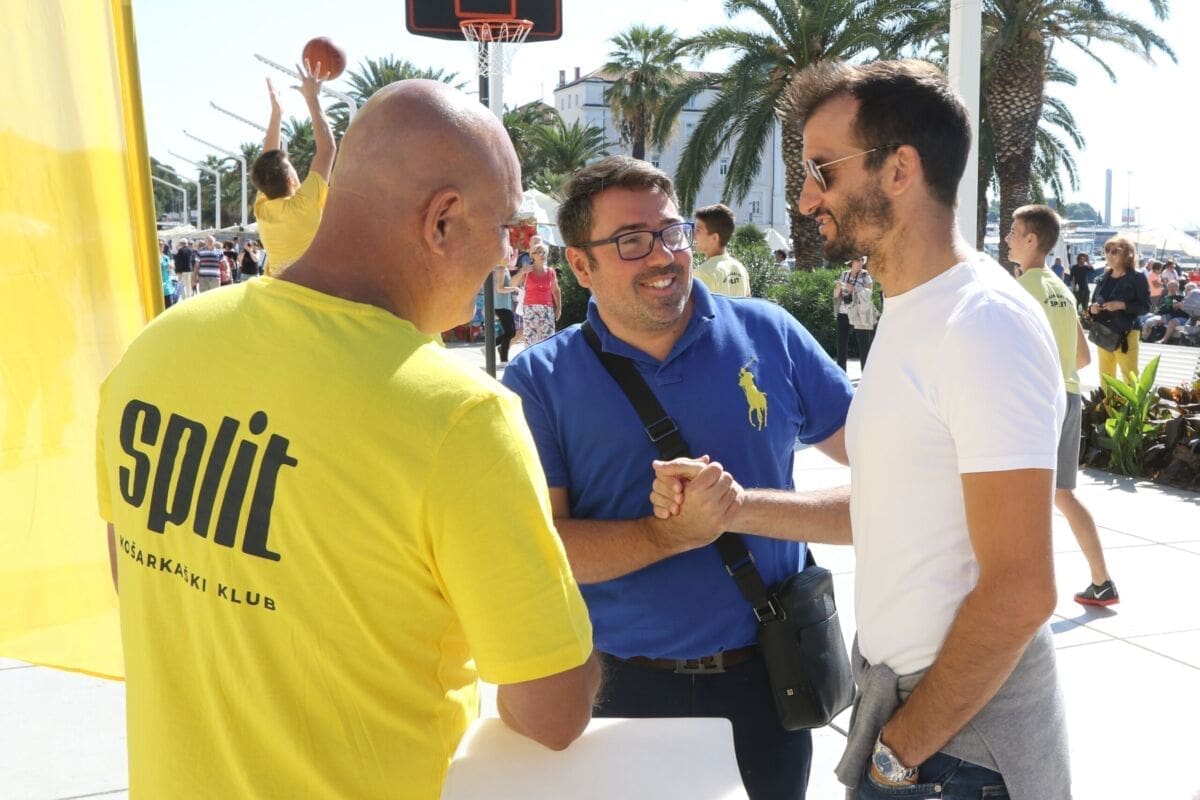Bilo je to neobično nedjeljno jutro kada se splitska Riva žutila kao rijetko kada. S Gripa su se na promociju nove sezone i prodaju pretplata spustili prvotimci Splita, a mlađe kategorije, pod vodstvom trenera Luke Škeve, Mira Bubića i Filipa Najeva, održale su pokazne treninge.