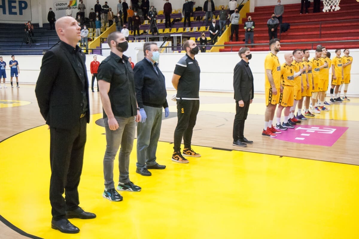 Petorka koja je počela utakmicu, najbolji splitski košarkaši koje na raspolaganju ima trener Mile Karakaš drže Žute u utakmici. Raspoložen je Luković koji je zabio 16 koševa u prvom poluvremenu. Split ima dobru realizaciju, Cibona ima Radovčića koji je zabio 11 koševa, Planinić ga kako tako prati, ali od drugih nema velike igre, barem za sada. Utakmica je puna ritma, energična, zahtjevna. Prvo poluvrijeme rezultat 43-34, taman tolika je razlika u dosadašnjem dijelu susreta.
